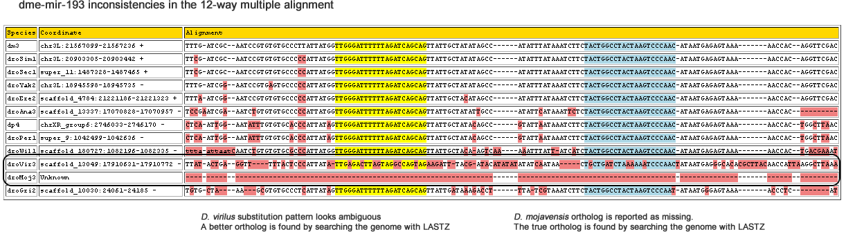 | dm3 | chr3L:21567099-21567236 + | T-TTGATC---GC-------------------AATCCGTGTGTGCCCTTATTATGGTTGGGATTTTTTAGATCAGCAGTTATTGCTATATAGCCAT--ATTTATAAATCTTCTACTGGCCTACTAAGTCCCAACATAATGAGAGTAAAAACCACAGGTT-CGAC------ |