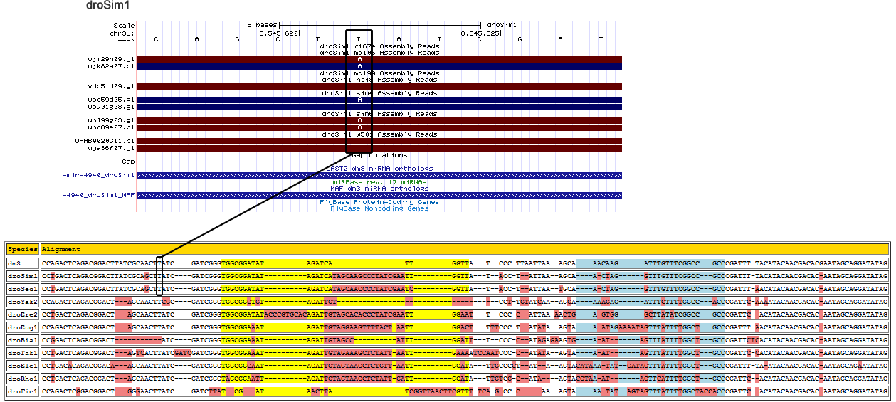 | droYak2 | chr3L:2783249-2783373 - | CCAG--------------------------------------------------------------------------------------------------------------------------------------------------ACTCAGACGGACT-------A---GCAACTTCGC----GATCGGGTGGCGGCTGT----------AGATTGT-------------------------------------------------CCT-TG---T-------------------------------------------------------------------AT--------C-----AAA----GG--------AAAAGAG------ATTTCTTTTGGCCAC---CCGATT-C---------------AAAATACAACGACACAATAG--------------------------------CAGGATATAG |
