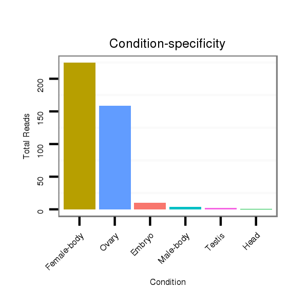 | CCGTATAC---------TGCCGGCTGCTTTCTTCCAACGGAATTTGCCAGTATCCGTCCTTTAGGTCTAGACTGCTTATGTACTTCGCCTCCTTTAGCTGGTCCAGGATGTAATTTATCATCGGCATCGGGTACGCATCCTTTACGGACCTTGCGTTTATCTGCCGGAAATCCACGCACAGTCTCCATT | Size | Hit Count | Total Norm | Total | M023 Head | M024 Male-body | M025 Embryo | M053 Female-body | O001 Testis | O002 Head | SRR553485 Ovary | SRR553486 Ovary | SRR553487 Ovary | SRR553488 Ovary | SRR618934 Ovary | V044 Embryo | SRR902008 Ovary | SRR902009 Testis | SRR1275487 Male larvae | SRR1275485 Male prepupae | SRR1275483 Male prepupae |