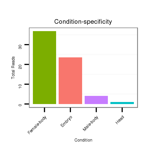 | GGCTAATGTGTGCTTGTCTACTCTTTCCTGTGACCTCATGTCGTAGCTTGCATATGACTGGGGATATGAACCCTTGAACCGTGTATGGCCCTCCAAATTTGGGTGCTAATTTTGCAGCAAATCCTTCTGCTGCGTTTGACAGGTGATGCTCCTTTGCCCATACCGTAGATCCAATCGCCGGTCTCCATTCGCACCG | Size | Hit Count | Total Norm | Total | M020 Head | M045 Female-body | V117 Male-body | V118 Embryo | V119 Head |