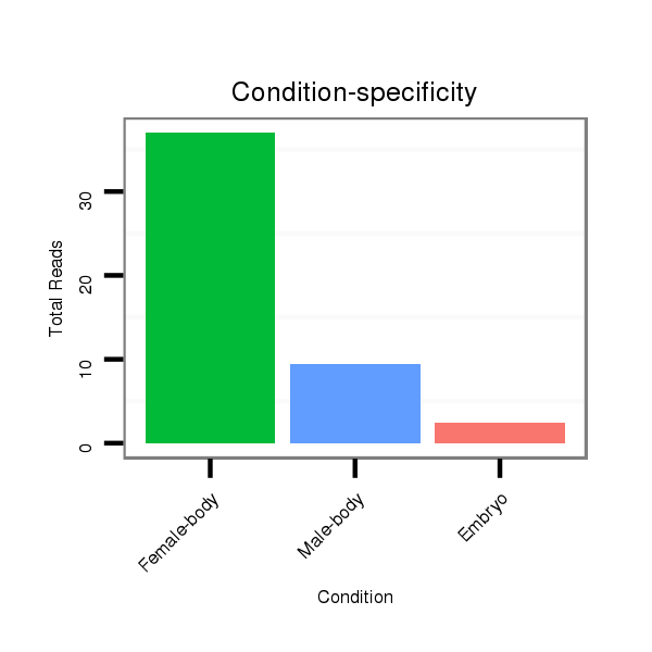 | GGAATACGACGTGATGGACACGGCCGACGATTGGCGATACGCGTTATATCCGTCTTTTCATCAGGAGCAGGAGGATATACGGCACTGGCTTGGAAAGGAGGTGGAACAGATGAAAAGGCAGGTTGGCCGGGTATGCTCATACCCGGAGACAACATATATAAGCATATATA-TTAT | Size | Hit Count | Total Norm | Total | M022 Male-body | M040 Female-body | M059 Embryo | M062 Head | V043 Embryo | V051 Head | V112 Male-body | SRR902010 Ovary | SRR902011 Testis | SRR902012 CNS imaginal disc |
