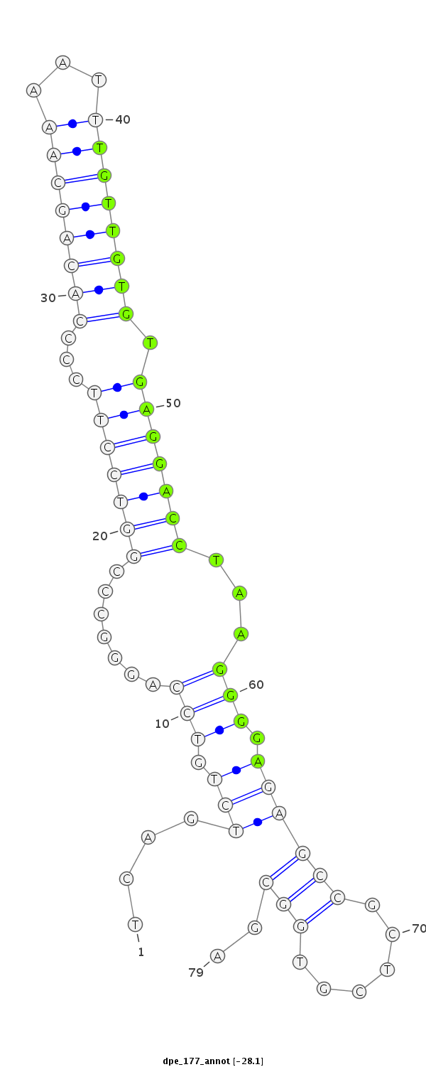 | droPer2 | scaffold_5802:1406-1554 + | dpe_177 | TATGTAAGGAAGTTCTCAGGCCGAGGTACAGCTTCTCAGTCTGTCCAGGGCCCGGTCCTTCCCCACAGCAAAATTTGTTGTGTGAGGACCTAAGGGGAGAGCCGCTCGTGGCGAAAGCGCGCCTGTGGGGTGGTTCGTGGGACGGTCGG |