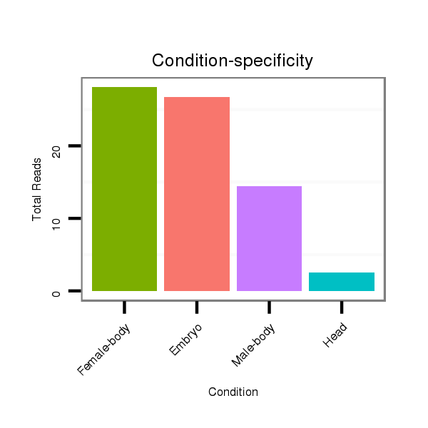 | TCGAGGGAAACATGGAGTATAACGAGACTCTGATAGCGCGTCTGCACAAGGTAAG-AAGCGTTT-----------------CTC----------------------------AGAATACT--T------ATC--GTC--ACAGATAGTCCCGTGAGGTA-----TTATAGCACCTAA-AAGCGTTTTCCTGCTAGCCCAAT----AAATGCTCTTGAAAATCGTTG-ATGTGTGCCAGACAAAACTTCTCGCAAC---AGCAAAGTGATCG---GAGTTCCATTCATTGATGACTCTGGTCCGTTTACGTTGTGAACACCATTGAT-AT---- | Size | Hit Count | Total Norm | Total | M021 Embryo | M042 Female-body | V042 Embryo | V050 Head | V057 Head | V111 Male-body |