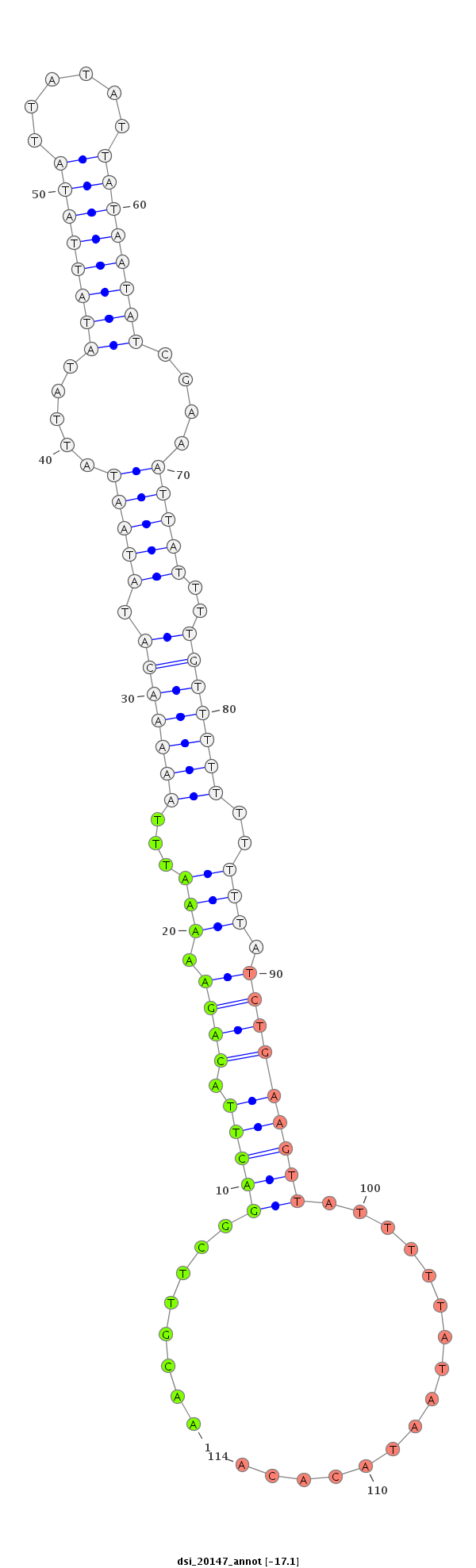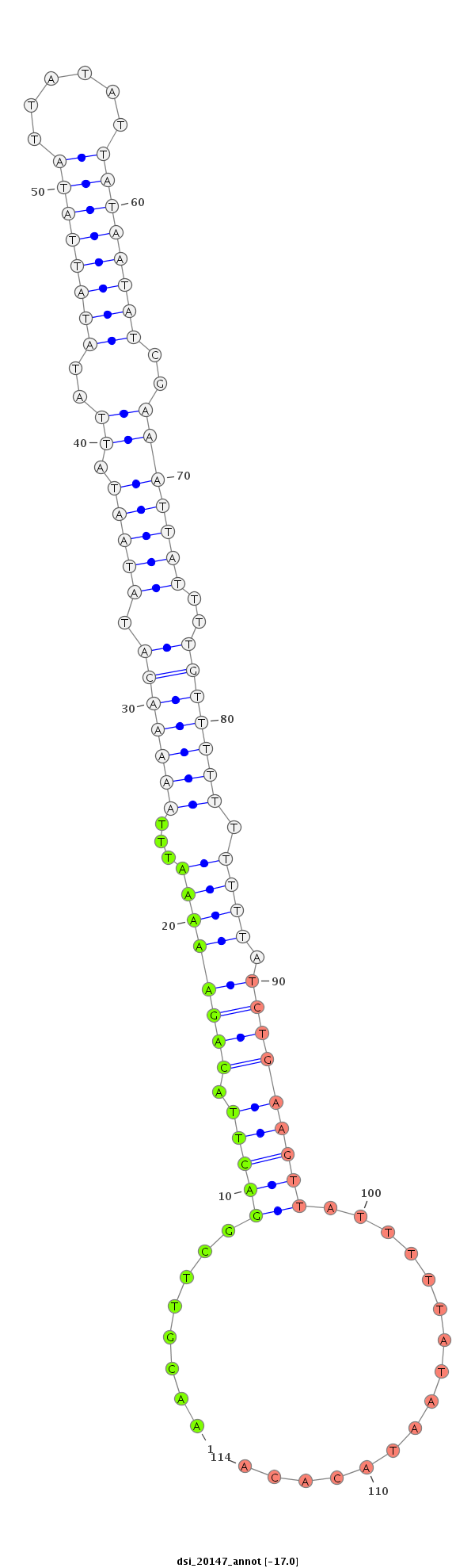 | ...............................................................................................TTGTCTATTATCTTATATTATA..................................................................................................................................... | 22 | 3 | 20 | 0.05 | 1 | 0 | 0 | 0 | 0 | 1 | 0 | 0 |