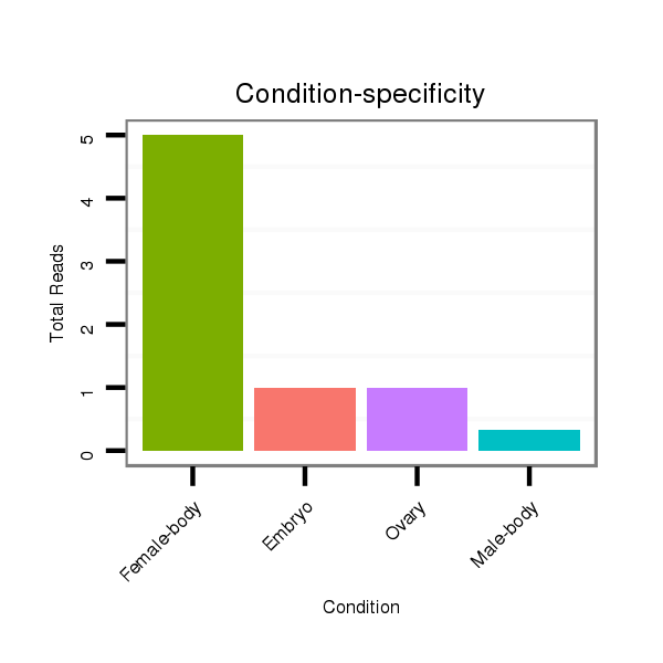 | AAAACCGCAACTTGCTTTCCGGCTTCCTGTTCGGCCACTCACATGAACAAGTTCGTGGATCAGATACTAAAGAGGATACTGAACGTGACTATACCCAGTACGGCCATGAGTATTAGCGAGGATTCTTGCCAGACAGCCGAAAGGGAACCCTGG---------------------------------------------------------------------------- | Size | Hit Count | Total Norm | Total | M026 Head | M043 Female-body | M056 Embryo | V046 Embryo | V052 Head | V058 Head | V120 Male-body | SRR1275488 Male larvae | SRR1275486 Male prepupae | SRR1275484 Male prepupae | GSM1528802 follicle cells |