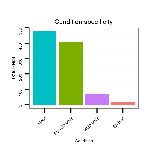 | CCAATATA---CATACATACCTAC----ATATACACACATATGTTTATGCA------------------------------TTCTTCGAG---G-------------GTT-AGCCCGC------------G----ATGA-------TGTAAGCTGGC-CTGTCCCTGGG-TAA--ACTCC-C--AAGGAT-----------------------CAGGTGG--AGATTGAAT------------------------CCCGATCCTTGGGATTCTGCTCTCGGGC----------AA-GGTCAGCAGTGCCCG--CGAAGGG----CCCAGCTGTTTGTTAACTCCT--------TTA | Size | Hit Count | Total Norm | Total | M054 Female-body | V113 Male-body | V114 Embryo | V115 Head |