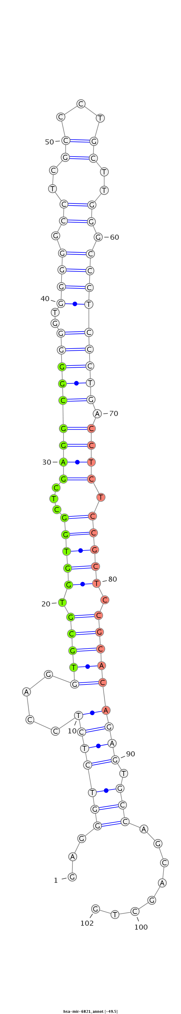 | hg38 | chr22:49962816-49962989 + | hsa-mir-6821 | CGAGGAGATCCTCCGAGGCCGCCTGCTCTTCCGGAGGAGGGTCTCTCCAGGTGCGTGGTGG-----------------------------------------CTCGAGGCGGGGGTGGGGGCCTCGCCCTGCT---TGGGCCCTCCCTGACC------TCTCCGCTCCGCACAGAGTGCCAGCAGCTGATCCGGTGGTGCCTGTCCCTGCGGCCCTCAGAGCGG |