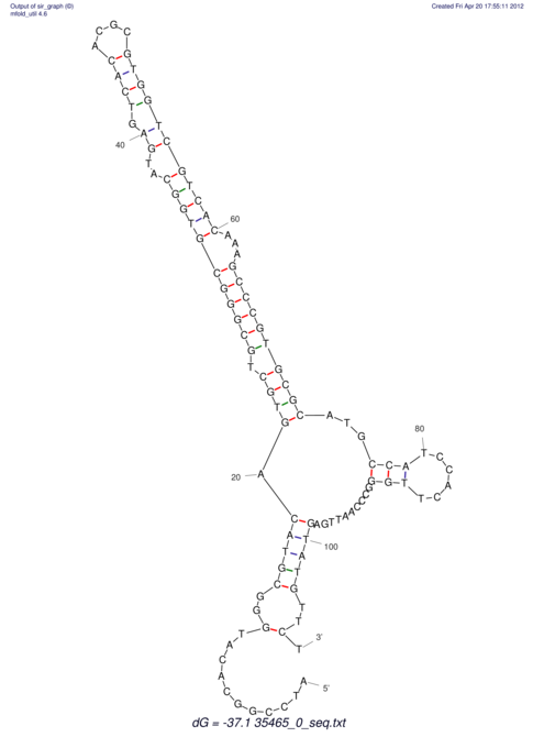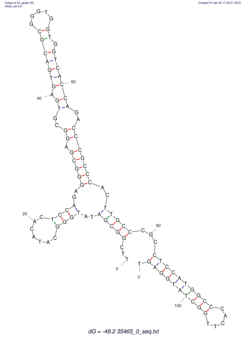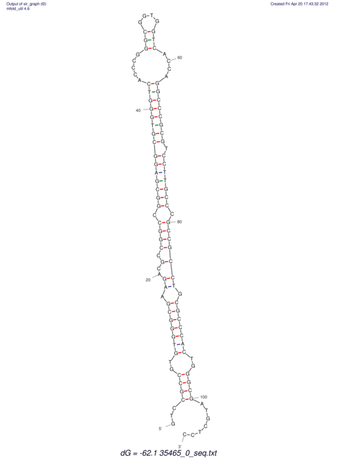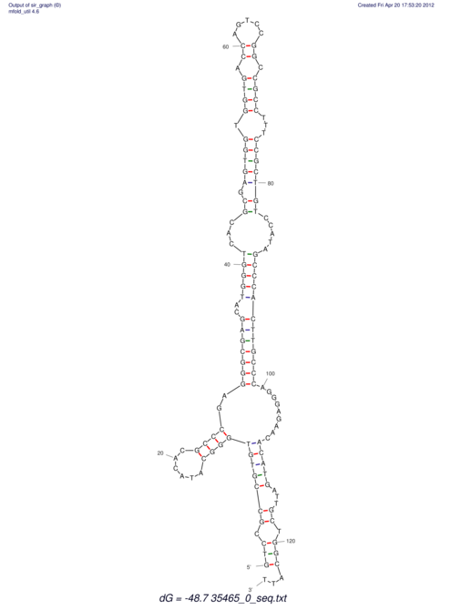 | Lastz ID | Coordinate | Normalized Identity % | Sequence | RNAfold | UNAfold | |||||