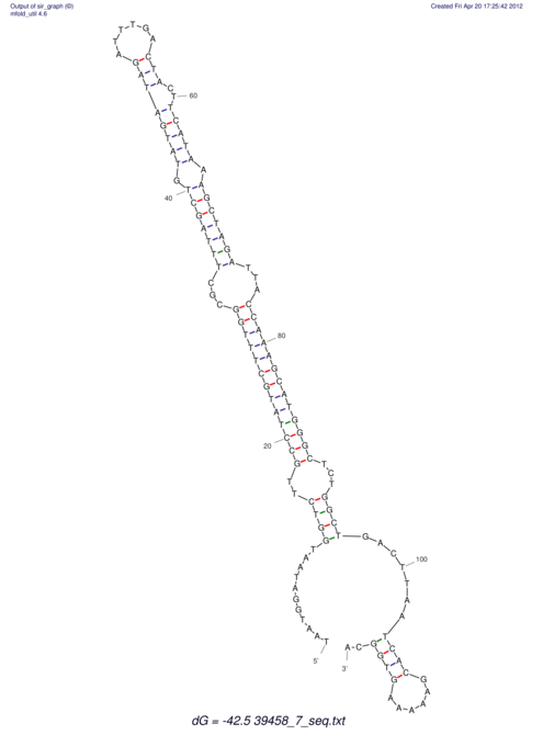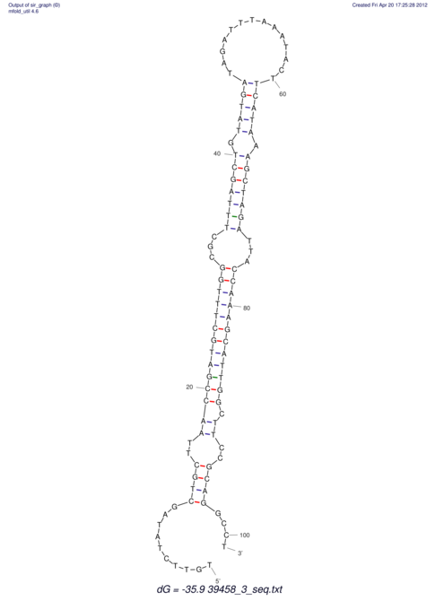 | ATGAGT---G--CC-TCAGA-GTG-------------------------------TAG--CTGACTTGCCATTGCTTTGGCGCTTTAGCTGTATGATAGATTTAAACTACTTCATAAAGCTAGATTACCAAAGCATTGGCTTGTGCAGATC-------------------AATCGTCAGAAACA---AA | Size | Hit Count | Total Norm | V113 Male body | V114 Embryo | V115 Head |