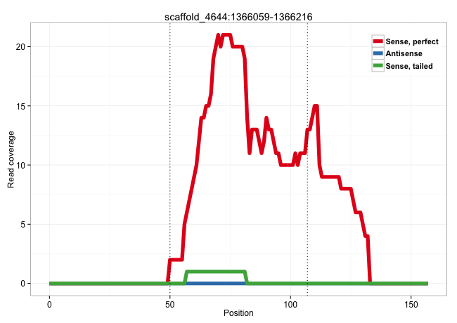 | GAGCCCCTTTGAGGTTATGCCCGCTAATTGTTTGCGTTTATCGTTCACAGGTCCGTAACTCTTTTCACGTTAACATGTCGGGAGGCTTAGATATTCTGTCCCTCAAGGAGGACGACATCACCAAGATGTTGGTGGCCACCACCCATCTGGGGTCCGA .................................................................................((((..(((.....)))..))))..................................................... .......................................................56.................................................107................................................ | Size | Perfect hit | Total Norm | Perfect Norm | V040 | V107 | V108 | V060 |