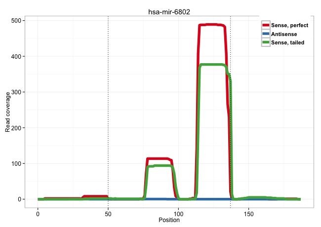 | GAACACGGAGAAGGGGCCCAATGCAGAGCAGCTGCGGCAGCTGCTGAAGGGTGAGGGTCCCCAGGCCGGCCTGAGGGCTAGGTGGGGGGCTTGAAGCCCCGAGATGCCTCACGTCTTCACCCCTCTCACCTAAGCAGAGCTGCCCAGCGAGCAGCAGGAGCAGTGGGAAGCCTTCGTATCGGGGCCC ............................................................................(((((((((((((..(((((....(((....)))....)))))..))))))))))).)).................................................... ........................................................................73..............................................................137................................................ | Size | Perfect hit | Total Norm | Perfect Norm | SRR387910(GSM843862) antibody for ip: Ago2. (ago2 cell line) | SRR189782 | SRR037940(GSM510478) 293cand5_rep2. (cell line) | SRR029127(GSM416756) A549. (cell line) | SRR037942(GSM510480) 293DroshaTN_cand5. (cell line) | SRR037941(GSM510479) 293DroshaTN. (cell line) | SRR037944(GSM510482) 293DcrTN_cand5. (cell line) | SRR037939(GSM510477) 293cand5_rep1. (cell line) | SRR342897(SRX096793) small RNA seq of Left atrial tissue. (heart) | SRR553572(SRX182778) source: Frontal Cortex. (Frontal Cortex) | SRR189783 | SRR342896(SRX096792) small RNA seq of Right atrial tissue. (heart) | SRR342899(SRX096795) small RNA seq of Left atrial tissue. (heart) | SRR330901(SRX091739) tissue: skin psoriatic uninvolveddisease stat. (skin) | SRR207113(GSM721075) IP against AGO 1 & 2. (ago1/2 cell line) | SRR330917(SRX091755) tissue: normal skindisease state: normal. (skin) | SRR330890(SRX091728) tissue: skin psoriatic uninvolveddisease stat. (skin) | DRR000561(DRX000319) Isolation of RNA following immunoprecipitatio. (ago2 cell line) | SRR342898(SRX096794) small RNA seq of Right atrial tissue. (heart) | DRR000559(DRX000317) "THP-1 whole cell RNA, no treatment". (cell line) | SRR330922(SRX091760) tissue: normal skindisease state: normal. (skin) | SRR207114(GSM721076) "IP against AGO 1 & 2, RRP40 knockdown". (ago1/2 RRP40 cell line) | SRR342894(SRX096790) small RNA seq of Right atrial tissue. (heart) | SRR060981(GSM569185) Human centroblast [09-001]. (cell line) | DRR000557(DRX000315) "THP-1 whole cell RNA, after 3 day treatment . (cell line) | SRR330867(SRX091705) tissue: skin psoriatic involveddisease state:. (skin) | SRR330902(SRX091740) tissue: skin psoriatic uninvolveddisease stat. (skin) | DRR000556(DRX000314) "THP-1 whole cell RNA, after 3 day treatment . (cell line) | SRR037943(GSM510481) 293DcrTN. (cell line) | SRR330908(SRX091746) tissue: normal skindisease state: normal. (skin) | SRR330919(SRX091757) tissue: normal skindisease state: normal. (skin) | DRR000558(DRX000316) "THP-1 whole cell RNA, after 3 day treatment . (cell line) | SRR330907(SRX091745) tissue: normal skindisease state: normal. (skin) | SRR342900(SRX096796) small RNA seq of Right atrial tissue. (heart) | SRR330889(SRX091727) tissue: skin psoriatic uninvolveddisease stat. (skin) | SRR330865(SRX091703) tissue: skin psoriatic involveddisease state:. (skin) | SRR330915(SRX091753) tissue: normal skindisease state: normal. (skin) | SRR330873(SRX091711) tissue: skin psoriatic involveddisease state:. (skin) | SRR330891(SRX091729) tissue: skin psoriatic uninvolveddisease stat. (skin) | SRR330899(SRX091737) tissue: skin psoriatic uninvolveddisease stat. (skin) | SRR330920(SRX091758) tissue: normal skindisease state: normal. (skin) | SRR037937(GSM510475) 293cand2. (cell line) | SRR330904(SRX091742) tissue: normal skindisease state: normal. (skin) | SRR060982(GSM569186) Human centrocyte [09-001]. (cell line) | SRR330894(SRX091732) tissue: skin psoriatic uninvolveddisease stat. (skin) | SRR033727(GSM497072) HIV-positive DL (HIV412). (B cell) | SRR039636(GSM518473) THP1_cyto_sRNAs. (cell line) | SRR330872(SRX091710) tissue: skin psoriatic involveddisease state:. (skin) | GSM1105748AGO1(GSM1105748) small RNA sequencing data. (ago1 hela) | SRR207116(GSM721078) Nuclear RNA. (cell line) | SRR107297(GSM677704) 18-30nt fraction of small RNA. (cell line) | DRR000555(DRX000313) "THP-1 whole cell RNA, no treatment". (cell line) | SRR330866(SRX091704) tissue: skin psoriatic involveddisease state:. (skin) | SRR330914(SRX091752) tissue: normal skindisease state: normal. (skin) | SRR330916(SRX091754) tissue: normal skindisease state: normal. (skin) | SRR330913(SRX091751) tissue: normal skindisease state: normal. (skin) | SRR330868(SRX091706) tissue: skin psoriatic involveddisease state:. (skin) | SRR553575(SRX182781) source: Kidney. (Kidney) | SRR037931(GSM510469) 293GFP. (cell line) | RoviraIPAgo2(Rovira) total RNA. (ago2 breast) | SRR330877(SRX091715) tissue: skin psoriatic involveddisease state:. (skin) | SRR330887(SRX091725) tissue: skin psoriatic uninvolveddisease stat. (skin) | SRR189784 | SRR330869(SRX091707) tissue: skin psoriatic involveddisease state:. (skin) | SRR060985(GSM569189) Human naive B cell [09-001]. (cell line) | SRR330905(SRX091743) tissue: normal skindisease state: normal. (skin) | SRR033730(GSM497075) Lymphoblastic (ALL411). (B cell) | SRR342901(SRX096797) small RNA seq of Left atrial tissue. (heart) | SRR342895(SRX096791) small RNA seq of Left atrial tissue. (heart) | SRR330885(SRX091723) tissue: skin psoriatic uninvolveddisease stat. (skin) | SRR330861(SRX091699) tissue: skin psoriatic involveddisease state:. (skin) | SRR039193(GSM494812) HL60 cell line is derived from acute promyelo. (cell line) | SRR039615(GSM531978) Severe Chronic Hepatitis B Liver Tissue. (liver) | TAX577746(Rovira) total RNA. (breast) | SRR330888(SRX091726) tissue: skin psoriatic uninvolveddisease stat. (skin) | SRR330886(SRX091724) tissue: skin psoriatic uninvolveddisease stat. (skin) | SRR033729(GSM497074) splenic MZL (Splenic414). (B cell) | SRR207115(GSM721077) XRN1&2 knockdown. (XRN1/XRN2 cell line) | SRR330859(SRX091697) tissue: skin psoriatic involveddisease state:. (skin) | SRR330878(SRX091716) tissue: skin psoriatic involveddisease state:. (skin) | SRR189786 | SRR191605(GSM715715) 76genomic small RNA (size selected RNA from t. (breast) | SRR330884(SRX091