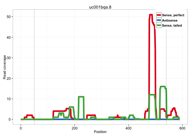 | AGGCCGTGTGCCTGAGTTATTTGCCAACCGTGGTGGCCGGCAAGGCCTCGGTAAGTGGCCTTGGTACCTCCAGCAGGGCAAATTGGCAGGCCACCCCCACAGTGAAGGCCAAAGGCAGGAAGGATTTGCTGTGGTCAGGCTTGCATCAGATGGGCTTGTGGTGTTGGTTAGGACTTTGGAGACAGACTGCTCTGGTAGTTTTGCCACCTACTGTCTATGGGACTCTGAACATAGTTTCTTCATCACTAAGTCTACCTACCTGTAAACCTACTTCATTAGGTTGCTGTGAAGTTAAATGAGTTAATGAGAAGAATATCAGGCAGATGGTAAGTTCCACGTAAATGATACCCGTAATGACTGTGGGAATCTGAGCAAGGCACTTGTATTCTCTTGATCTCAGTTTCCTTTTCTATAAAATAGGGATAAGAGTCCCTACTTAGCCTCTCAAGGGCTTTTATAATGGAGGAGAATTAAACTCGGGGCAGAGAGAAGCCATGTGTGTCTGTCTGTCACTGACCGTGGCTTTCCCTTTGCCTGCAGAACGACTCCTGGTCCCCAAGTGTGTGATGCTGAAATCCAGGGGAAGCCGG ...............................................................................................................................................................................................................................................................................................................................................................................................................................................................................................((((((((.(((((((((...(((.((.....)).))))))))))))..))))))))...................................................... ............................................................................................................................................................................................................................................................................................................................................................................................................................................................................................477............................................................540................................................ | Size | Perfect hit | Total Norm | Perfect Norm | SRR037937(GSM510475) 293cand2. (cell line) | SRR037938(GSM510476) 293Red. (cell line) | SRR189782 | SRR387909(GSM843861) specific-host: Homo sapienshost cell line: Su. (cell line) | SRR387910(GSM843862) antibody for ip: Ago2. (ago2 cell line) | SRR189786 | SRR033722(GSM497067) KMS12 cell line (KMS12). (B cell) | DRR001486(DRX001040) "Hela long cytoplasmic cell fraction, LNA(+)". (hela) | SRR037942(GSM510480) 293DroshaTN_cand5. (cell line) | SRR326280(GSM769510) total cell content of unperturbed cells was s. (cell line) | SRR189779(GSM714639) cell line: HEK293clip variant: PAR-CLIPenzyma. (cell line) | SRR037936(GSM510474) 293cand1. (cell line) | SRR207116(GSM721078) Nuclear RNA. (cell line) | SRR033724(GSM497069) L428 cell line (L428). (B cell) | SRR038858(GSM458541) MEL202. (cell line) | SRR037935(GSM510473) 293cand3. (cell line) | SRR189783 | SRR390723(GSM850202) total small RNA. (cell line) | SRR330865(SRX091703) tissue: skin psoriatic involveddisease state:. (skin) | SRR033717(GSM497062) Mentle Cell Lymphoma (MCL112). (B cell) | SRR330896(SRX091734) tissue: skin psoriatic uninvolveddisease stat. (skin) | SRR039623(GSM531986) HCV(+) HCC Tissue Sample. (liver) | SRR330890(SRX091728) tissue: skin psoriatic uninvolveddisease stat. (skin) | SRR189785 | SRR033714(GSM497059) Burkitt Lymphoma (BL134). (B cell) | SRR189787 | SRR342897(SRX096793) small RNA seq of Left atrial tissue. (heart) | SRR029131(GSM416760) MCF7. (cell line) | SRR553573(SRX182779) source: Cerebellum. (Cerebellum) | GSM450605(GSM450605) miRNA sequencing raw reads from post-mortem s. (brain) | SRR342899(SRX096795) small RNA seq of Left atrial tissue. (heart) | SRR326282(GSM769512) "Dicer mRNA was knocked down using siDicer, t. (cell line) | SRR330866(SRX091704) tissue: skin psoriatic involveddisease state:. (skin) | DRR000557(DRX000315) "THP-1 whole cell RNA, after 3 day treatment . (cell line) | SRR330901(SRX091739) tissue: skin psoriatic uninvolveddisease stat. (skin) | GSM359176(GSM359176) hela_chip_smrna_pure. (hela) | SRR330878(SRX091716) tissue: skin psoriatic involveddisease state:. (skin) | SRR330902(SRX091740) tissue: skin psoriatic uninvolveddisease stat. (skin) | SRR033727(GSM497072) HIV-positive DL (HIV412). (B cell) | SRR060168(GSM565978) 5-8F_nucleus. (cell line) | SRR037941(GSM510479) 293DroshaTN. (cell line) | SRR060169(GSM565979) 5-8F_cytoplasm. (cell line) | SRR191418(GSM715528) 40genomic small RNA (size selected RNA from t. (breast) | SRR189784 | SRR330886(SRX091724) tissue: skin psoriatic uninvolveddisease stat. (skin) | SRR039621(GSM531984) HBV(+) HCC Tissue Sample 2. (liver) | SRR060985(GSM569189) Human naive B cell [09-001]. (cell line) | SRR029054(GSM402329) MCF7_smallRNAseq. (cell line) | SRR191551(GSM715661) 32genomic small RNA (size selected RNA from t. (breast) | SRR207115(GSM721077) XRN1&2 knockdown. (XRN1/XRN2 cell line) | SRR191393(GSM715503) 22genomic small RNA (size selected RNA from t. (breast) | SRR342901(SRX096797) small RNA seq of Left atrial tissue. (heart) | SRR191590(GSM715700) 48genomic small RNA (size selected RNA from t. (breast) | SRR342900(SRX096796) small RNA seq of Right atrial tissue. (heart) | SRR189780(GSM714640) cell line: HEK293clip variant: PAR-CLIPenzyma. (cell line) | SRR330897(SRX091735) tissue: skin psoriatic uninvolveddisease stat. (skin) | SRR015359(GSM380324) Germinal Center B cell (GC136). (B cell) | SRR553576(SRX182782) source: Testis. (testes) | SRR040037(GSM532922) G243T. (cervix) | SRR038860(GSM458543) MM426. (cell line) | SRR029130(GSM416759) DLD2. (cell line) | SRR039192(GSM494811) K562 cell line is derived from a CML patient . (cell line) | SRR189781(GSM714641) cell line: HEK293clip variant: PAR-CLIPenzyma. (cell line) | SRR039190(GSM494809) PBMCs were isolated by ficoll gradient from t. (blood) | TAX577453(Rovira) total RNA. (breast) | DRR000561(DRX000319) Isolation of RNA following immunoprecipitatio. (ago2 cell line) | SRR029125(GSM416754) U2OS. (cell line) | GSM1105753INPUT(GSM1105753) small RNA sequencing data. (hela) | SRR060982(GSM569186) Human centrocyte [09-001]. (cell line) | SRR326279(GSM769509) cytoplasmic fraction was isolated using PARIS. (cell line) |