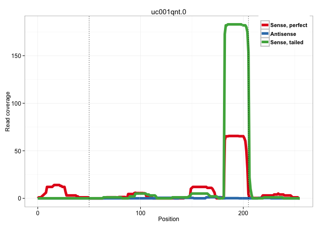 | CCCCCTTCAGAAGTGGGAGGACAGCGCCCACAAGCCACAGAGCCTAGACAGTGAGTTTCTCCCGCGGCTGGAGACGAGGAGGCTGGGGGAGGGCCGGGGGAGCGCGGGAGGCGCTCCCAGAGGGGACCACGAGAGGCGGAGGGCGCGGGATGCGGGGCGGGGCCTGGGGTTGCCGCCCGAGGCTCACCGGCCCGCGTCCCCGCAGCTGATGACCCCGCGACGCTGTACGCCGTGGTGGAGAACGTGCCCCCGTTG ................................................................................................................................................((((((((((((.((((((((.((((....)))).)))))..))).)))))))))).)).................................................... ................................................................................................................................................145.........................................................205................................................ | Size | Perfect hit | Total Norm | Perfect Norm | SRR387910(GSM843862) antibody for ip: Ago2. (ago2 cell line) | SRR039623(GSM531986) HCV(+) HCC Tissue Sample. (liver) | SRR330919(SRX091757) tissue: normal skindisease state: normal. (skin) | SRR039622(GSM531985) HCV(+) Adjacent Tissue Sample. (liver) | SRR326279(GSM769509) cytoplasmic fraction was isolated using PARIS. (cell line) | SRR039193(GSM494812) HL60 cell line is derived from acute promyelo. (cell line) | SRR033729(GSM497074) splenic MZL (Splenic414). (B cell) | TAX577738(Rovira) total RNA. (breast) | SRR039619(GSM531982) HBV(+) HCC Tissue Sample 1. (liver) | SRR330893(SRX091731) tissue: skin psoriatic uninvolveddisease stat. (skin) | SRR330912(SRX091750) tissue: normal skindisease state: normal. (skin) | SRR189783 | SRR330921(SRX091759) tissue: normal skindisease state: normal. (skin) | SRR330915(SRX091753) tissue: normal skindisease state: normal. (skin) | SRR330881(SRX091719) tissue: skin psoriatic uninvolveddisease stat. (skin) | TAX577746(Rovira) total RNA. (breast) | SRR330906(SRX091744) tissue: normal skindisease state: normal. (skin) | SRR314796(SRX084354) "Total RNA, fractionated (15-30nt)". (cell line) | GSM956925Ago2PAZ(GSM956925) "cell line: HEK293 cell linepassages: 15-20ip. (ago2 cell line) | SRR107296(GSM677703) 18-30nt fraction of small RNA. (cell line) | SRR330889(SRX091727) tissue: skin psoriatic uninvolveddisease stat. (skin) | SRR330902(SRX091740) tissue: skin psoriatic uninvolveddisease stat. (skin) | SRR330890(SRX091728) tissue: skin psoriatic uninvolveddisease stat. (skin) | SRR029127(GSM416756) A549. (cell line) | SRR094131(GSM651907) small RNA(18-35nt)small RNA deep sequencing o. (uterus) | SRR330914(SRX091752) tissue: normal skindisease state: normal. (skin) | SRR039625(GSM531988) HBV(-) HCV(-) HCC Tissue Sample. (liver) | SRR342896(SRX096792) small RNA seq of Right atrial tissue. (heart) | TAX577740(Rovira) total RNA. (breast) | SRR330859(SRX091697) tissue: skin psoriatic involveddisease state:. (skin) | SRR191596(GSM715706) 73genomic small RNA (size selected RNA from t. (breast) | SRR330870(SRX091708) tissue: skin psoriatic involveddisease state:. (skin) | SRR330908(SRX091746) tissue: normal skindisease state: normal. (skin) | SRR342897(SRX096793) small RNA seq of Left atrial tissue. (heart) | RoviraIPAgo2(Rovira) total RNA. (ago2 breast) | GSM1105750AGO3(GSM1105750) small RNA sequencing data. (ago3 hela) | GSM956925Ago2(GSM956925) "cell line: HEK293 cell linepassages: 15-20ip. (ago2 cell line) | TAX577744(Rovira) total RNA. (breast) | SRR039616(GSM531979) HBV(+) Distal Tissue Sample 1. (liver) | SRR038863(GSM458546) MM603. (cell line) | SRR330922(SRX091760) tissue: normal skindisease state: normal. (skin) | SRR330896(SRX091734) tissue: skin psoriatic uninvolveddisease stat. (skin) | SRR039618(GSM531981) HBV(+) Side Tissue Sample 1. (liver) | SRR330905(SRX091743) tissue: normal skindisease state: normal. (skin) | SRR029124(GSM416753) HeLa. (hela) | SRR094129(GSM651905) small RNA(18-35nt)small RNA deep sequencing o. (uterus) | SRR330903(SRX091741) tissue: skin psoriatic uninvolveddisease stat. (skin) | SRR342895(SRX096791) small RNA seq of Left atrial tissue. (heart) | SRR330873(SRX091711) tissue: skin psoriatic involveddisease state:. (skin) | SRR330883(SRX091721) tissue: skin psoriatic uninvolveddisease stat. (skin) | SRR207116(GSM721078) Nuclear RNA. (cell line) | GSM1105753INPUT(GSM1105753) small RNA sequencing data. (hela) | SRR330879(SRX091717) tissue: skin psoriatic involveddisease state:. (skin) | SRR330900(SRX091738) tissue: skin psoriatic uninvolveddisease stat. (skin) | SRR330864(SRX091702) tissue: skin psoriatic involveddisease state:. (skin) | SRR330866(SRX091704) tissue: skin psoriatic involveddisease state:. (skin) | SRR342898(SRX096794) small RNA seq of Right atrial tissue. (heart) | GSM532876(GSM532876) G547T. (cervix) | SRR330878(SRX091716) tissue: skin psoriatic involveddisease state:. (skin) | SRR039620(GSM531983) HBV(+) Adjacent Tissue Sample 2. (liver) | SRR330888(SRX091726) tissue: skin psoriatic uninvolveddisease stat. (skin) | SRR330916(SRX091754) tissue: normal skindisease state: normal. (skin) | TAX577745(Rovira) total RNA. (breast) | SRR330913(SRX091751) tissue: normal skindisease state: normal. (skin) | SRR191603(GSM715713) 71genomic small RNA (size selected RNA from t. (breast) | SRR039617(GSM531980) HBV(+) Adjacent Tissue Sample 1. (liver) | SRR330892(SRX091730) tissue: skin psoriatic uninvolveddisease stat. (skin) | SRR330868(SRX091706) tissue: skin psoriatic involveddisease state:. (skin) | SRR342899(SRX096795) small RNA seq of Left atrial tissue. (heart) | SRR207111(GSM721073) Whole cell RNA. (cell line) | SRR444049(SRX128897) Sample 9cDNABarcode: AF-PP-334: ACG CTC TTC C. (skin) | SRR330875(SRX091713) tissue: skin psoriatic involveddisease state:. (skin) | SRR038857(GSM458540) D20. (cell line) | SRR191592(GSM715702) 59genomic small RNA (size selected RNA from t. (breast) | SRR040028(GSM532913) G026N. (cervix) | SRR363675(GSM830252) cell type: human foreskin fibroblasts (HFF)tr. (fibroblast) | SRR330877(SRX091715) tissue: skin psoriatic involveddisease state:. (skin) | SRR189786 | SRR040032(GSM532917) G603N. (cerv