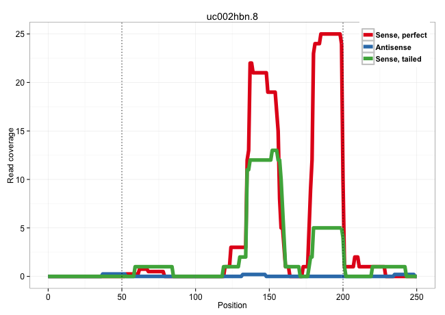 | GCTGCGGCAGATGGGCGAAATGGGTGTCATGTGTTTGATATCATCTATGCAGAAATCATTAGAGTTGGCTGCAGCTGCTTGGTCTTTTTCTGTAAACAGCCATCTTGCTGTCCTCAGATGCTGGACAGTGTTAGGTCTGGGAAGGTGGGCAGAGGCATGATGCTTGCCCTTTTCATTGTGCTACTTCTTATCCCTCCCAGACAAAATGAAAATCAAATGCCGTTTCCAGAAGGCCTATCGGAGGGCTTTG ........................................................................................................................................((((((.((((((.((.((((..(((...........)))..)))).)).)))).)).)))))).................................................. ..................................................................................................................................131..................................................................200................................................ | Size | Perfect hit | Total Norm | Perfect Norm | SRR189782 | SRR037943(GSM510481) 293DcrTN. (cell line) | SRR207113(GSM721075) IP against AGO 1 & 2. (ago1/2 cell line) | SRR189787 | SRR033727(GSM497072) HIV-positive DL (HIV412). (B cell) | SRR189780(GSM714640) cell line: HEK293clip variant: PAR-CLIPenzyma. (cell line) | SRR343335 | SRR037938(GSM510476) 293Red. (cell line) | SRR038852(GSM458535) QF1160MB. (cell line) | SRR038856(GSM458539) D11. (cell line) | SRR553572(SRX182778) source: Frontal Cortex. (Frontal Cortex) | SRR330893(SRX091731) tissue: skin psoriatic uninvolveddisease stat. (skin) | SRR387910(GSM843862) antibody for ip: Ago2. (ago2 cell line) | SRR363675(GSM830252) cell type: human foreskin fibroblasts (HFF)tr. (fibroblast) | SRR033716(GSM497061) Mentle Cell Lymphoma (MCL114). (B cell) | SRR330857(SRX091695) tissue: skin psoriatic involveddisease state:. (skin) | SRR553574(SRX182780) source: Heart. (Heart) | SRR330866(SRX091704) tissue: skin psoriatic involveddisease state:. (skin) | DRR000557(DRX000315) "THP-1 whole cell RNA, after 3 day treatment . (cell line) | SRR039612(GSM531975) Human Normal Liver Tissue Sample 2. (liver) | SRR033722(GSM497067) KMS12 cell line (KMS12). (B cell) | SRR039614(GSM531977) HBV-infected Liver Tissue. (liver) | SRR342900(SRX096796) small RNA seq of Right atrial tissue. (heart) | SRR107296(GSM677703) 18-30nt fraction of small RNA. (cell line) | SRR033711(GSM497056) GCB DLBCL (GCB110). (B cell) | SRR207112(GSM721074) RRP40 knockdown. (RRP40 cell line) | GSM450608(GSM450608) miRNA sequencing raw reads from post-mortem s. (brain) | SRR038861(GSM458544) MM466. (cell line) | SRR039625(GSM531988) HBV(-) HCV(-) HCC Tissue Sample. (liver) | TAX577741(Rovira) total RNA. (breast) | SRR342897(SRX096793) small RNA seq of Left atrial tissue. (heart) | SRR207116(GSM721078) Nuclear RNA. (cell line) | SRR060169(GSM565979) 5-8F_cytoplasm. (cell line) | SRR039616(GSM531979) HBV(+) Distal Tissue Sample 1. (liver) | SRR330923(SRX091761) tissue: normal skindisease state: normal. (skin) | SRR189781(GSM714641) cell line: HEK293clip variant: PAR-CLIPenzyma. (cell line) | SRR189784 | SRR330880(SRX091718) tissue: skin psoriatic involveddisease state:. (skin) | GSM450607(GSM450607) miRNA sequencing raw reads from post-mortem s. (brain) | SRR330861(SRX091699) tissue: skin psoriatic involveddisease state:. (skin) | GSM450599(GSM450599) miRNA sequencing raw reads from post-mortem s. (brain) | SRR060982(GSM569186) Human centrocyte [09-001]. (cell line) | SRR207117(GSM721079) Whole cell RNA. (cell line) | SRR330904(SRX091742) tissue: normal skindisease state: normal. (skin) | SRR330905(SRX091743) tissue: normal skindisease state: normal. (skin) | SRR330902(SRX091740) tissue: skin psoriatic uninvolveddisease stat. (skin) | SRR107297(GSM677704) 18-30nt fraction of small RNA. (cell line) | SRR330898(SRX091736) tissue: skin psoriatic uninvolveddisease stat. (skin) |