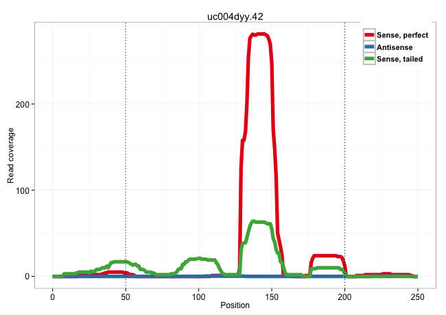 | ATCTCAGCTACTCAAGAGGCTGAGGCAGAGAATTGCTTGAACTTGGGAGGCAGAGGTTGCAGTGAGCCAAGATCATGCCACTGCACTCCAGCCTGGGGGACAGAGCGAGACTCCATCTCAAAAAAAAAAACGGATTGGGAAAGGAGGTTGAAGAAGGAGAAAAGTTCGACTTCAGTCTTCCACTTCCTATTTCCACCCAGTTCCAGCGCCAGGGGCTTCAGCAGACCCAGCAGCAGCAACAGACAGCAGC ...................................................................................................................................((..(((((((((((((.(((((..(((...........)))..))))).))))))).)))))).)).................................................... ............................................................................................................................125........................................................................200................................................ | Size | Perfect hit | Total Norm | Perfect Norm | SRR387910(GSM843862) antibody for ip: Ago2. (ago2 cell line) | SRR189780(GSM714640) cell line: HEK293clip variant: PAR-CLIPenzyma. (cell line) | SRR189779(GSM714639) cell line: HEK293clip variant: PAR-CLIPenzyma. (cell line) | SRR033729(GSM497074) splenic MZL (Splenic414). (B cell) | SRR039625(GSM531988) HBV(-) HCV(-) HCC Tissue Sample. (liver) | SRR553572(SRX182778) source: Frontal Cortex. (Frontal Cortex) | SRR189782 | SRR207115(GSM721077) XRN1&2 knockdown. (XRN1/XRN2 cell line) | GSM450600(GSM450600) miRNA sequencing raw reads from post-mortem s. (brain) | SRR207113(GSM721075) IP against AGO 1 & 2. (ago1/2 cell line) | GSM450602(GSM450602) miRNA sequencing raw reads from post-mortem s. (brain) | SRR033722(GSM497067) KMS12 cell line (KMS12). (B cell) | GSM450604(GSM450604) miRNA sequencing raw reads from post-mortem s. (brain) | SRR207112(GSM721074) RRP40 knockdown. (RRP40 cell line) | SRR029054(GSM402329) MCF7_smallRNAseq. (cell line) | SRR038861(GSM458544) MM466. (cell line) | GSM450610(GSM450610) miRNA sequencing raw reads from post-mortem s. (brain) | GSM450601(GSM450601) miRNA sequencing raw reads from post-mortem s. (brain) | SRR189786 | SRR189784 | SRR207114(GSM721076) "IP against AGO 1 & 2, RRP40 knockdown". (ago1/2 RRP40 cell line) | SRR326279(GSM769509) cytoplasmic fraction was isolated using PARIS. (cell line) | SRR207116(GSM721078) Nuclear RNA. (cell line) | GSM450605(GSM450605) miRNA sequencing raw reads from post-mortem s. (brain) | SRR060984(GSM569188) Human plasma cell [09-001]. (cell line) | RoviraIPAgo2(Rovira) total RNA. (ago2 breast) | DRR000557(DRX000315) "THP-1 whole cell RNA, after 3 day treatment . (cell line) | GSM450603(GSM450603) miRNA sequencing raw reads from post-mortem s. (brain) | GSM450609(GSM450609) miRNA sequencing raw reads from post-mortem s. (brain) | SRR033724(GSM497069) L428 cell line (L428). (B cell) | SRR107297(GSM677704) 18-30nt fraction of small RNA. (cell line) | DRR000558(DRX000316) "THP-1 whole cell RNA, after 3 day treatment . (cell line) | TAX577740(Rovira) total RNA. (breast) | TAX577745(Rovira) total RNA. (breast) | SRR330902(SRX091740) tissue: skin psoriatic uninvolveddisease stat. (skin) | SRR033719(GSM497064) 6hr Activated B cell line (ABC158). (B cell) | DRR000556(DRX000314) "THP-1 whole cell RNA, after 3 day treatment . (cell line) | SRR029127(GSM416756) A549. (cell line) | SRR033718(GSM497063) Multiple Myeloma (U266). (B cell) | SRR060983(GSM569187) Human pre-germinal center B cell [09-001]. (cell line) | SRR094131(GSM651907) small RNA(18-35nt)small RNA deep sequencing o. (uterus) | TAX577453(Rovira) total RNA. (breast) | SRR553573(SRX182779) source: Cerebellum. (Cerebellum) | SRR033715(GSM497060) Mantle Cell Lymphoma (Mino122). (B cell) | SRR038862(GSM458545) MM472. (cell line) | DRR000555(DRX000313) "THP-1 whole cell RNA, no treatment". (cell line) | SRR326280(GSM769510) total cell content of unperturbed cells was s. (cell line) | SRR033720(GSM497065) EBV activated B cell line (EBV159). (B cell) | SRR330913(SRX091751) tissue: normal skindisease state: normal. (skin) | SRR033716(GSM497061) Mentle Cell Lymphoma (MCL114). (B cell) | SRR060981(GSM569185) Human centroblast [09-001]. (cell line) | SRR094130(GSM651906) small RNA(18-35nt)small RNA deep sequencing o. (uterus) | SRR553576(SRX182782) source: Testis. (testes) | SRR207111(GSM721073) Whole cell RNA. (cell line) | SRR189781(GSM714641) cell line: HEK293clip variant: PAR-CLIPenzyma. (cell line) | GSM956925Ago2(GSM956925) "cell line: HEK293 cell linepassages: 15-20ip. (ago2 cell line) | SRR330867(SRX091705) tissue: skin psoriatic involveddisease state:. (skin) | SRR330889(SRX091727) tissue: skin psoriatic uninvolveddisease stat. (skin) | SRR039636(GSM518473) THP1_cyto_sRNAs. (cell line) | SRR330921(SRX091759) tissue: normal skindisease state: normal. (skin) | SRR094132(GSM651908) small RNA(18-35nt)small RNA deep sequencing o. (uterus) | SRR033717(GSM497062) Mentle Cell Lymphoma (MCL112). (B cell) | SRR326282(GSM769512) "Dicer mRNA was knocked down using siDicer, t. (cell line) | SRR038863(GSM458546) MM603. (cell line) | GSM450599(GSM450599) miRNA sequencing raw reads from post-mortem s. (brain) | SRR330890(SRX091728) tissue: skin psoriatic uninvolveddisease stat. (skin) | SRR033728(GSM497073) MALT (MALT413). (B cell) | SRR330873(SRX091711) tissue: skin psoriatic involveddisease state:. (skin) | SRR363673(GSM830250) cell type: human foreskin fibroblasts (HFF)tr. (fibroblast) | SRR330919(SRX091757) tissue: normal skindisease state: normal. (skin) | SRR038856(GSM458539) D11. (cell line) | SRR037935(GSM510473) 293cand3. (cell line) | GSM956925Paz8D5(GSM956925) "cell line: HEK293 cell linepassages: 15-20ip. (cell line) | SRR037944(GSM510482) 293DcrTN_cand5. (cell line) | SRR189778(GSM714638) cell line: HEK293clip variant: PAR-CLIPenzyma. (cell line) | GSM450607(GSM450607) miRNA sequencing raw reads from post-mortem s. (brain) | DRR000559(DRX000317) "THP-1 whole cell RNA, no treatment". (cell line) | SRR039623(GSM531986) HCV(+) HCC Tissue Sample. (liver) | GSM450598(GSM450598) miRNA sequencing raw reads from post-mortem s. (brain) | SRR342894(SRX096790) small RNA seq of Right atrial tissue. (he
