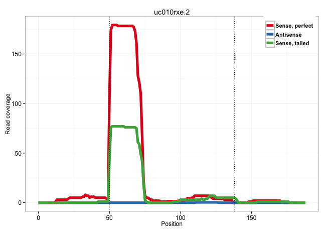 | AACACCACATACCAGCTCCGGGTCAGCCGCATGGACGATTTTGTGCTCAGGTCTGCAGGGTAGAGTGAGGGGACCACGGGGGCTGGTTCTTCCCCAGGCTCCGGGGGTGACTGGTGGGGGCTCTTCTCTGCCCTGCAGGACTGGGGAGCAGTTCAGCTTCAATACCACAGCAGCACAGCCCCAGGTAA ....................................................(((((((((((((.(((((..((.(((((.((((.......)))).))))).((....))....))..)))))))))))))))))).................................................. ..................................................51.....................................................................................138................................................ | Size | Perfect hit | Total Norm | Perfect Norm | SRR326280(GSM769510) total cell content of unperturbed cells was s. (cell line) | SRR326279(GSM769509) cytoplasmic fraction was isolated using PARIS. (cell line) | SRR029054(GSM402329) MCF7_smallRNAseq. (cell line) | SRR326282(GSM769512) "Dicer mRNA was knocked down using siDicer, t. (cell line) | SRR207113(GSM721075) IP against AGO 1 & 2. (ago1/2 cell line) | SRR342899(SRX096795) small RNA seq of Left atrial tissue. (heart) | SRR207115(GSM721077) XRN1&2 knockdown. (XRN1/XRN2 cell line) | RoviraIPAgo2(Rovira) total RNA. (ago2 breast) | SRR039622(GSM531985) HCV(+) Adjacent Tissue Sample. (liver) | SRR326281(GSM769511) "Dicer mRNA was knocked down using siDicer, c. (cell line) | SRR553572(SRX182778) source: Frontal Cortex. (Frontal Cortex) | SRR029131(GSM416760) MCF7. (cell line) | SRR342894(SRX096790) small RNA seq of Right atrial tissue. (heart) | SRR040012(GSM532897) G648N. (cervix) | SRR342898(SRX096794) small RNA seq of Right atrial tissue. (heart) | SRR330902(SRX091740) tissue: skin psoriatic uninvolveddisease stat. (skin) | SRR330905(SRX091743) tissue: normal skindisease state: normal. (skin) | SRR342901(SRX096797) small RNA seq of Left atrial tissue. (heart) | SRR342900(SRX096796) small RNA seq of Right atrial tissue. (heart) | SRR039190(GSM494809) PBMCs were isolated by ficoll gradient from t. (blood) | DRR000557(DRX000315) "THP-1 whole cell RNA, after 3 day treatment . (cell line) | SRR033722(GSM497067) KMS12 cell line (KMS12). (B cell) | SRR330878(SRX091716) tissue: skin psoriatic involveddisease state:. (skin) | SRR033727(GSM497072) HIV-positive DL (HIV412). (B cell) | SRR060169(GSM565979) 5-8F_cytoplasm. (cell line) | SRR189784 | SRR330896(SRX091734) tissue: skin psoriatic uninvolveddisease stat. (skin) | TAX577738(Rovira) total RNA. (breast) | SRR039192(GSM494811) K562 cell line is derived from a CML patient . (cell line) | SRR553573(SRX182779) source: Cerebellum. (Cerebellum) | SRR189779(GSM714639) cell line: HEK293clip variant: PAR-CLIPenzyma. (cell line) | SRR033726(GSM497071) Mututated CLL (CLLM633). (B cell) | SRR387910(GSM843862) antibody for ip: Ago2. (ago2 cell line) | GSM450600(GSM450600) miRNA sequencing raw reads from post-mortem s. (brain) | SRR189786 | SRR038859(GSM458542) MM386. (cell line) | TAX577742(Rovira) total RNA. (breast) | SRR330881(SRX091719) tissue: skin psoriatic uninvolveddisease stat. (skin) | DRR001486(DRX001040) "Hela long cytoplasmic cell fraction, LNA(+)". (hela) | DRR000562(DRX000320) Isolation of RNA following immunoprecipitatio. (ago3 cell line) | SRR107296(GSM677703) 18-30nt fraction of small RNA. (cell line) | SRR330920(SRX091758) tissue: normal skindisease state: normal. (skin) | SRR330921(SRX091759) tissue: normal skindisease state: normal. (skin) | SRR330916(SRX091754) tissue: normal skindisease state: normal. (skin) | GSM532885(GSM532885) G850N. (cervix) | GSM450607(GSM450607) miRNA sequencing raw reads from post-mortem s. (brain) | SRR038863(GSM458546) MM603. (cell line) | TAX577745(Rovira) total RNA. (breast) | SRR039623(GSM531986) HCV(+) HCC Tissue Sample. (liver) | SRR191613(GSM715723) 66genomic small RNA (size selected RNA from t. (breast) | DRR001489(DRX001043) "Hela short nuclear cell fraction, control". (hela) | SRR033716(GSM497061) Mentle Cell Lymphoma (MCL114). (B cell) | SRR040022(GSM532907) G575N. (cervix) | SRR094130(GSM651906) small RNA(18-35nt)small RNA deep sequencing o. (uterus) | SRR191594(GSM715704) 70genomic small RNA (size selected RNA from t. (breast) | SRR191499(GSM715609) 6genomic small RNA (size selected RNA from to. (breast) | SRR060983(GSM569187) Human pre-germinal center B cell [09-001]. (cell line) | GSM450608(GSM450608) miRNA sequencing raw reads from post-mortem s. (brain) | TAX577590(Rovira) total RNA. (breast) | SRR189787 | SRR342897(SRX096793) small RNA seq of Left atrial tissue. (heart) | SRR207110(GSM721072) Nuclear RNA. (cell line) | GSM450609(GSM450609) miRNA sequencing raw reads from post-mortem s. (brain) | SRR040014(GSM532899) G623N. (cervix) | DRR000561(DRX000319) Isolation of RNA following immunoprecipitatio. (ago2 cell line) | GSM450605(GSM450605) miRNA sequencing raw reads from post-mortem s. (brain) | DRR000558(DRX000316) "THP-1 whole cell RNA, after 3 day treatment . (cell line) | SRR330886(SRX091724) tissue: skin psoriatic uninvolveddisease stat. (skin) |