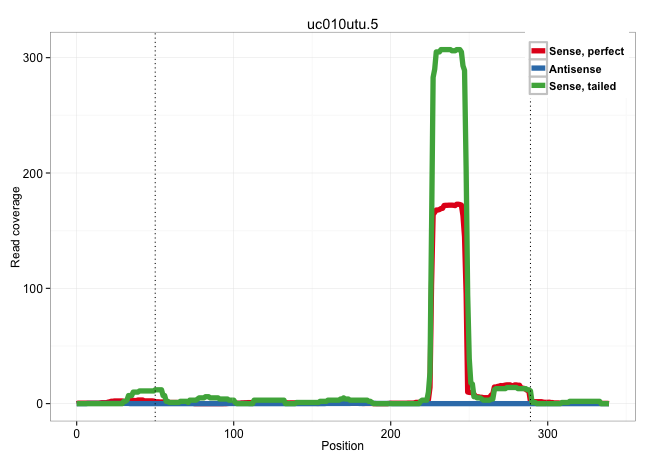 | AACATCAGCTCTGTCAGCTCCTTGCTGCTCTTCAACACCACCGAGAACCTGTATGGCCAGAGGGCAGGGCCGAGGGGTGTGGGCGGGAGGCCCGGCCTGGCTTAGTGGGGACCCAGGGCATCAGACACAGGTACAGCACATAGGCCAGGAGCCAGGGGGTGACTGGGGTGGCTCGGCTCGGGAGGCCTGGGACCCCACAGTGCACGCTGTGCCCCTGATGATGTGGGAGAGGAACATGGGCTCAGGACAGCGGGTGTCAGCTTGCCTGACCCCCATGTCGCCTCTGTAGGTAGAAGAAGTATGTCTTCCTGGACCCCCTGGCTGGTGCTGTAACAAAGA ...................................................................................................................................................................................................................................(((((.(((((((.(((((..(((........)))..)))))..)))))))..)))))...................................................... ..............................................................................................................................................................................................................................223...............................................................289................................................ | Size | Perfect hit | Total Norm | Perfect Norm | SRR387910(GSM843862) antibody for ip: Ago2. (ago2 cell line) | SRR387909(GSM843861) specific-host: Homo sapienshost cell line: Su. (cell line) | SRR553572(SRX182778) source: Frontal Cortex. (Frontal Cortex) | SRR039625(GSM531988) HBV(-) HCV(-) HCC Tissue Sample. (liver) | SRR207116(GSM721078) Nuclear RNA. (cell line) | SRR326279(GSM769509) cytoplasmic fraction was isolated using PARIS. (cell line) | SRR326280(GSM769510) total cell content of unperturbed cells was s. (cell line) | SRR094132(GSM651908) small RNA(18-35nt)small RNA deep sequencing o. (uterus) | SRR015363(GSM380328) Germinal Center B cell (GC40). (B cell) | SRR553575(SRX182781) source: Kidney. (Kidney) | SRR039615(GSM531978) Severe Chronic Hepatitis B Liver Tissue. (liver) | SRR094130(GSM651906) small RNA(18-35nt)small RNA deep sequencing o. (uterus) | SRR015360(GSM380325) Plasma B cells (PC137). (B cell) | SRR094131(GSM651907) small RNA(18-35nt)small RNA deep sequencing o. (uterus) | SRR326282(GSM769512) "Dicer mRNA was knocked down using siDicer, t. (cell line) | SRR207115(GSM721077) XRN1&2 knockdown. (XRN1/XRN2 cell line) | GSM1105748AGO1(GSM1105748) small RNA sequencing data. (ago1 hela) | SRR553574(SRX182780) source: Heart. (Heart) | SRR553573(SRX182779) source: Cerebellum. (Cerebellum) | GSM1105750AGO3(GSM1105750) small RNA sequencing data. (ago3 hela) | SRR330923(SRX091761) tissue: normal skindisease state: normal. (skin) | DRR000557(DRX000315) "THP-1 whole cell RNA, after 3 day treatment . (cell line) | GSM450603(GSM450603) miRNA sequencing raw reads from post-mortem s. (brain) | SRR033719(GSM497064) 6hr Activated B cell line (ABC158). (B cell) | SRR033720(GSM497065) EBV activated B cell line (EBV159). (B cell) | GSM450608(GSM450608) miRNA sequencing raw reads from post-mortem s. (brain) | SRR039619(GSM531982) HBV(+) HCC Tissue Sample 1. (liver) | SRR326281(GSM769511) "Dicer mRNA was knocked down using siDicer, c. (cell line) | RoviraIPAgo2(Rovira) total RNA. (ago2 breast) | GSM450602(GSM450602) miRNA sequencing raw reads from post-mortem s. (brain) | SRR015358(GSM380323) NaÌøve B Cell (Naive39). (B cell) | SRR039190(GSM494809) PBMCs were isolated by ficoll gradient from t. (blood) | SRR033717(GSM497062) Mentle Cell Lymphoma (MCL112). (B cell) | DRR000556(DRX000314) "THP-1 whole cell RNA, after 3 day treatment . (cell line) | SRR330891(SRX091729) tissue: skin psoriatic uninvolveddisease stat. (skin) | SRR033716(GSM497061) Mentle Cell Lymphoma (MCL114). (B cell) | SRR039621(GSM531984) HBV(+) HCC Tissue Sample 2. (liver) | SRR330877(SRX091715) tissue: skin psoriatic involveddisease state:. (skin) | SRR189780(GSM714640) cell line: HEK293clip variant: PAR-CLIPenzyma. (cell line) | SRR038863(GSM458546) MM603. (cell line) | SRR029054(GSM402329) MCF7_smallRNAseq. (cell line) | SRR330885(SRX091723) tissue: skin psoriatic uninvolveddisease stat. (skin) | GSM450609(GSM450609) miRNA sequencing raw reads from post-mortem s. (brain) | SRR330887(SRX091725) tissue: skin psoriatic uninvolveddisease stat. (skin) | SRR037942(GSM510480) 293DroshaTN_cand5. (cell line) | SRR039191(GSM494810) PBMCs were isolated by ficoll gradient from t. (blood) | SRR207113(GSM721075) IP against AGO 1 & 2. (ago1/2 cell line) | SRR060985(GSM569189) Human naive B cell [09-001]. (cell line) | SRR060986(GSM569190) Human memory B cell [09-001]. (cell line) | SRR314796(SRX084354) "Total RNA, fractionated (15-30nt)". (cell line) | SRR342896(SRX096792) small RNA seq of Right atrial tissue. (heart) | SRR330915(SRX091753) tissue: normal skindisease state: normal. (skin) | GSM450606(GSM450606) miRNA sequencing raw reads from post-mortem s. (brain) | DRR000559(DRX000317) "THP-1 whole cell RNA, no treatment". (cell line) | SRR189784 | SRR033728(GSM497073) MALT (MALT413). (B cell) | GSM450605(GSM450605) miRNA sequencing raw reads from post-mortem s. (brain) | SRR039612(GSM531975) Human Normal Liver Tissue Sample 2. (liver) | SRR094129(GSM651905) small RNA(18-35nt)small RNA deep sequencing o. (uterus) | DRR001486(DRX001040) "Hela long cytoplasmic cell fraction, LNA(+)". (hela) | SRR039622(GSM531985) HCV(+) Adjacent Tissue Sample. (liver) | SRR033714(GSM497059) Burkitt Lymphoma (BL134). (B cell) | SRR033722(GSM497067) KMS12 cell line (KMS12). (B cell) | SRR330903(SRX091741) tissue: skin psoriatic uninvolveddisease stat. (skin) | SRR038855(GSM458538) D10. (cell line) | SRR330906(SRX091744) tissue: normal skindisease state: normal. (skin) | GSM450599(GSM450599) miRNA sequencing raw reads from post-mortem s. (brain) | SRR060981(GSM569185) Human centroblast [09-001]. (cell line) | SRR191596(GSM715706) 73genomic small RNA (size selected RNA from t. (breast) | SRR033712(GSM497057) Burkitt Lymphoma (BL510). (B cell) | GSM1105749AGO2(GSM1105749) small RNA sequencing data. (ago2 hela) | SRR207114(GSM721076) "IP against AGO 1 & 2, RRP40 knockdown". (ago1/2 RRP40 cell line) | DRR001483(DRX001037) "Hela long cytoplasmic cell fra