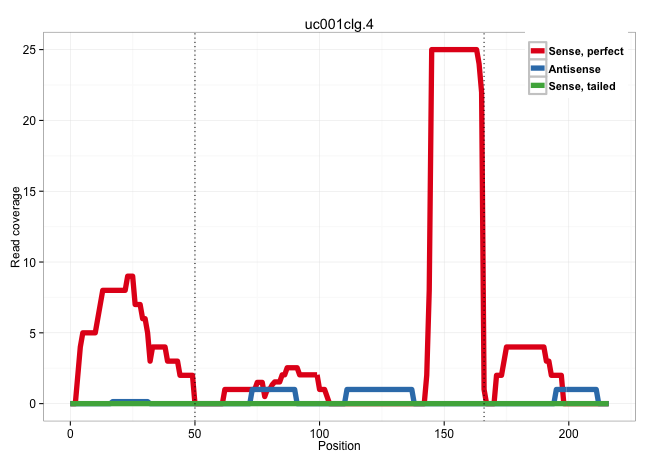 | CCCAATGAGTACTGGGGCTGGGGTGGCGAGGATGATGACATCTTCAACCGGTGAGTAAGCACGCGGTGGGGAATAGGCTGGGTGGGGGGGGGAGGGGGGGTGCAGACTGGGTGGGGTTCTTTGCCCTTCCTGGAGCCTGTTCCAGTCTGTCCGTCCCCATCCTCAGGATCTCCCTGACTGGGATGAAGATCTCACGCCCAGACATCCGAATCGGCC ..................................................................................(((((((((((.((.....((((((((((..(((((((...........)))))))..)))))))))))).))))).))))))................................................... .................................................................................82..................................................................................166................................................ | Size | Perfect hit | Total Norm | Perfect Norm | SRR189782 | SRR314796(SRX084354) "Total RNA, fractionated (15-30nt)". (cell line) | SRR189779(GSM714639) cell line: HEK293clip variant: PAR-CLIPenzyma. (cell line) | SRR326279(GSM769509) cytoplasmic fraction was isolated using PARIS. (cell line) | SRR326282(GSM769512) "Dicer mRNA was knocked down using siDicer, t. (cell line) | SRR553572(SRX182778) source: Frontal Cortex. (Frontal Cortex) | SRR342895(SRX096791) small RNA seq of Left atrial tissue. (heart) | SRR553573(SRX182779) source: Cerebellum. (Cerebellum) | SRR326280(GSM769510) total cell content of unperturbed cells was s. (cell line) | SRR342899(SRX096795) small RNA seq of Left atrial tissue. (heart) | SRR037942(GSM510480) 293DroshaTN_cand5. (cell line) | SRR189784 | SRR342894(SRX096790) small RNA seq of Right atrial tissue. (heart) | RoviraIPAgo2(Rovira) total RNA. (ago2 breast) | SRR330865(SRX091703) tissue: skin psoriatic involveddisease state:. (skin) | SRR039620(GSM531983) HBV(+) Adjacent Tissue Sample 2. (liver) | GSM532880(GSM532880) G659T. (cervix) | SRR330884(SRX091722) tissue: skin psoriatic uninvolveddisease stat. (skin) | SRR029126(GSM416755) 143B. (cell line) | SRR207115(GSM721077) XRN1&2 knockdown. (XRN1/XRN2 cell line) | SRR330870(SRX091708) tissue: skin psoriatic involveddisease state:. (skin) | SRR330893(SRX091731) tissue: skin psoriatic uninvolveddisease stat. (skin) | SRR330866(SRX091704) tissue: skin psoriatic involveddisease state:. (skin) | SRR326281(GSM769511) "Dicer mRNA was knocked down using siDicer, c. (cell line) | SRR040015(GSM532900) G623T. (cervix) | DRR001489(DRX001043) "Hela short nuclear cell fraction, control". (hela) | SRR330872(SRX091710) tissue: skin psoriatic involveddisease state:. (skin) | GSM532876(GSM532876) G547T. (cervix) | SRR330914(SRX091752) tissue: normal skindisease state: normal. (skin) | SRR039625(GSM531988) HBV(-) HCV(-) HCC Tissue Sample. (liver) | SRR040019(GSM532904) G701T. (cervix) | SRR342901(SRX096797) small RNA seq of Left atrial tissue. (heart) | SRR330885(SRX091723) tissue: skin psoriatic uninvolveddisease stat. (skin) | GSM532874(GSM532874) G699T. (cervix) | SRR037937(GSM510475) 293cand2. (cell line) | SRR330897(SRX091735) tissue: skin psoriatic uninvolveddisease stat. (skin) | SRR033715(GSM497060) Mantle Cell Lymphoma (Mino122). (B cell) | SRR033713(GSM497058) Burkitt Lymphoma (BL115). (B cell) | SRR342900(SRX096796) small RNA seq of Right atrial tissue. (heart) | SRR330902(SRX091740) tissue: skin psoriatic uninvolveddisease stat. (skin) | SRR029132(GSM416761) MB-MDA231. (cell line) | SRR342897(SRX096793) small RNA seq of Left atrial tissue. (heart) | SRR207116(GSM721078) Nuclear RNA. (cell line) | SRR342898(SRX096794) small RNA seq of Right atrial tissue. (heart) | SRR033723(GSM497068) L1236 cell line (L1236). (B cell) | SRR037944(GSM510482) 293DcrTN_cand5. (cell line) | SRR342896(SRX096792) small RNA seq of Right atrial tissue. (heart) | SRR330859(SRX091697) tissue: skin psoriatic involveddisease state:. (skin) | GSM956925Ago2PAZ(GSM956925) "cell line: HEK293 cell linepassages: 15-20ip. (ago2 cell line) | SRR040037(GSM532922) G243T. (cervix) | GSM450601(GSM450601) miRNA sequencing raw reads from post-mortem s. (brain) | SRR039613(GSM531976) Human Normal Liver Tissue Sample 3. (liver) | SRR191605(GSM715715) 76genomic small RNA (size selected RNA from t. (breast) | SRR330921(SRX091759) tissue: normal skindisease state: normal. (skin) | SRR330905(SRX091743) tissue: normal skindisease state: normal. (skin) | SRR040040(GSM532925) G612N. (cervix) | SRR029054(GSM402329) MCF7_smallRNAseq. (cell line) | SRR037936(GSM510474) 293cand1. (cell line) | TAX577580(Rovira) total RNA. (breast) | SRR191598(GSM715708) 79genomic small RNA (size selected RNA from t. (breast) | SRR207110(GSM721072) Nuclear RNA. (cell line) | SRR037935(GSM510473) 293cand3. (cell line) | SRR033722(GSM497067) KMS12 cell line (KMS12). (B cell) | SRR330881(SRX091719) tissue: skin psoriatic uninvolveddisease stat. (skin) | SRR330888(SRX091726) tissue: skin psoriatic uninvolveddisease stat. (skin) | SRR330913(SRX091751) tissue: normal skindisease state: normal. (skin) | SRR330906(SRX091744) tissue: normal skindisease state: normal. (skin) | SRR330907(SRX091745) tissue: normal skindisease state: normal. (skin) | SRR189787 | SRR039190(GSM494809) PBMCs were isolated by ficoll gradient from t. (blood) | SRR330882(SRX091720) tissue: skin psoriatic uninvolveddisease stat. (skin) | SRR444046(SRX128894) Sample 7cDNABarcode: AF-PP-342: ACG CTC TTC C. (skin) | DRR000557(DRX000315) "THP-1 whole cell RNA, after 3 day treatment . (cell line) | SRR040011(GSM532896) G529T. (cervix) | SRR444059(SRX128907) Sample 17cDNABarcode: AF-PP-339: ACG CTC TTC . (skin) | SRR040016(GSM532901) G645N. (cervix) | SRR330922(SRX091760) tissue: normal skindisease state: normal. (skin) | SRR039618(GSM531981) HBV(+) Side Tissue Sample 1. (liver) | SRR191454(GSM715564) 180genomic small RNA (size selected RNA from . (breast) | SRR330890(SRX091728) tissue: skin psoriatic uninvolveddisease stat. (skin) | SRR094131(GSM651907) small RNA(18-35nt)small RNA deep sequencing o. (uterus) | GSM1105753INPUT(GSM1105753) small RNA sequencing data. (hela) | SRR330864(SRX091702) tissue: skin psoriatic involveddisease state:. (skin) | DRR000558(DRX000316) "THP-1 whole cell RN