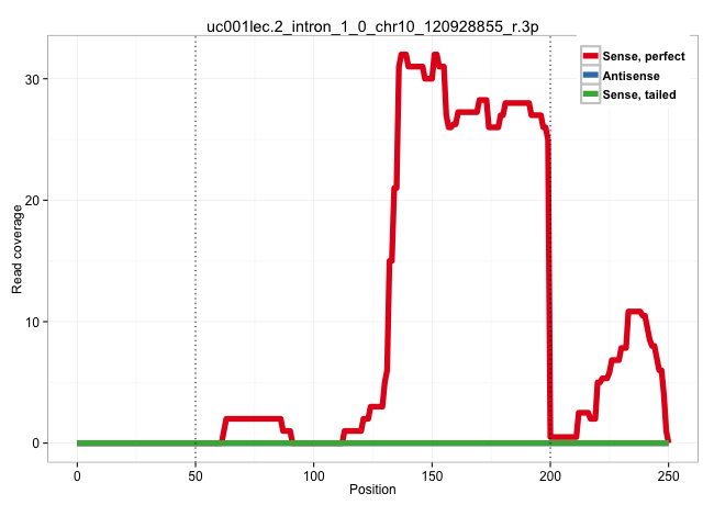 | GTACTGCCTTTGTTAAAGCATCTGTCATCAGTAAGAGATGATAAGTTTTTTGCACAACAGTGAAAACCCCACCTTTAAGCATATGATTACGCTTAATAAATATTTTATTAAAAGGAGAATTAAAGACCTAAAAGGGAAGAAGTTAGACTGTTCTAGTTCTGGTACTGTTGAGGCACTGATGAGGATAAATGATCATGCAGAGGTCTCTTCATAATTGACCCCAATGGAGTCATCAAGCATTTGAGCGTCA ...........................................................................(((((.((....)).))))).....((((((......((.....((((..(((..((..((((..((.....)).))))..))..)))....))))....))....))))))............................................................... ...........................................................................76.................................................................................................................191......................................................... | Size | Perfect hit | Total Norm | Perfect Norm | DRR001486(DRX001040) "Hela long cytoplasmic cell fraction, LNA(+)". (hela) | SRR553572(SRX182778) source: Frontal Cortex. (Frontal Cortex) | DRR001485(DRX001039) "Hela long total cell fraction, LNA(+)". (hela) | SRR342901(SRX096797) small RNA seq of Left atrial tissue. (heart) | SRR207119(GSM721081) XRN1&2 knockdown. (XRN1/XRN2 cell line) | SRR189782 | SRR330904(SRX091742) tissue: normal skindisease state: normal. (skin) | SRR189779(GSM714639) cell line: HEK293clip variant: PAR-CLIPenzyma. (cell line) | SRR207115(GSM721077) XRN1&2 knockdown. (XRN1/XRN2 cell line) | GSM1105750AGO3(GSM1105750) small RNA sequencing data. (ago3 hela) | SRR039623(GSM531986) HCV(+) HCC Tissue Sample. (liver) | SRR342899(SRX096795) small RNA seq of Left atrial tissue. (heart) | SRR330867(SRX091705) tissue: skin psoriatic involveddisease state:. (skin) | SRR189784 | GSM359197(GSM359197) hepg2_depl_cip_tap. (cell line) | SRR107297(GSM677704) 18-30nt fraction of small RNA. (cell line) | SRR342894(SRX096790) small RNA seq of Right atrial tissue. (heart) | SRR191590(GSM715700) 48genomic small RNA (size selected RNA from t. (breast) | DRR000557(DRX000315) "THP-1 whole cell RNA, after 3 day treatment . (cell line) | DRR000556(DRX000314) "THP-1 whole cell RNA, after 3 day treatment . (cell line) | SRR330922(SRX091760) tissue: normal skindisease state: normal. (skin) | SRR553573(SRX182779) source: Cerebellum. (Cerebellum) | SRR033713(GSM497058) Burkitt Lymphoma (BL115). (B cell) | SRR189786 | SRR039622(GSM531985) HCV(+) Adjacent Tissue Sample. (liver) | SRR330878(SRX091716) tissue: skin psoriatic involveddisease state:. (skin) | GSM359196(GSM359196) m3m7G_ip. (cell line) | SRR189781(GSM714641) cell line: HEK293clip variant: PAR-CLIPenzyma. (cell line) | SRR343335 | SRR342895(SRX096791) small RNA seq of Left atrial tissue. (heart) | SRR553576(SRX182782) source: Testis. (testes) |