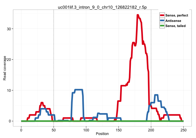 | GCCTCCAGGGTGGGCGCCTTTCGCCGTGGACGCCGACCGTCCGGGACGAGGTAAGGGGGGCCCCGGGGGAGGGCTGGGGCCGCCGCCGCCCCCGCCTCACCTGCGGCCGCGGGCTGGGGGCGCCGCGCCCGCGCCTCACTGCGCCACTCAGGGAGGAGGAGGAGGAGGAGGAAGAGGGCGAAGGACGCGGAGCCGGCATCCGAGGACATCTTTGGTCCGTGCCCCCGGCCTCGTGTCCCCCCTCGGCGCC .........................................................................................................................................................................((......(((.....)))....))........................................................ .....................................................................................................................................................150...............................................200................................................ | Size | Perfect hit | Total Norm | Perfect Norm | SRR207110(GSM721072) Nuclear RNA. (cell line) | SRR326281(GSM769511) "Dicer mRNA was knocked down using siDicer, c. (cell line) | SRR326279(GSM769509) cytoplasmic fraction was isolated using PARIS. (cell line) | SRR189779(GSM714639) cell line: HEK293clip variant: PAR-CLIPenzyma. (cell line) | GSM956925Ago2D5(GSM956925) "cell line: HEK293 cell linepassages: 15-20ip. (ago2 cell line) | GSM956925Ago2PAZ(GSM956925) "cell line: HEK293 cell linepassages: 15-20ip. (ago2 cell line) | RoviraIPAgo2(Rovira) total RNA. (ago2 breast) | SRR207115(GSM721077) XRN1&2 knockdown. (XRN1/XRN2 cell line) | GSM532871(GSM532871) G652N. (cervix) | DRR000558(DRX000316) "THP-1 whole cell RNA, after 3 day treatment . (cell line) | GSM956925Ago2(GSM956925) "cell line: HEK293 cell linepassages: 15-20ip. (ago2 cell line) | SRR330904(SRX091742) tissue: normal skindisease state: normal. (skin) | SRR444061(SRX128909) Sample 19cDNABarcode: AF-PP-341: ACG CTC TTC . (skin) | DRR001488(DRX001042) "Hela short nuclear cell fraction, LNA(+)". (hela) | SRR330912(SRX091750) tissue: normal skindisease state: normal. (skin) | GSM532876(GSM532876) G547T. (cervix) | SRR060168(GSM565978) 5-8F_nucleus. (cell line) | TAX577589(Rovira) total RNA. (breast) | SRR330896(SRX091734) tissue: skin psoriatic uninvolveddisease stat. (skin) | SRR330902(SRX091740) tissue: skin psoriatic uninvolveddisease stat. (skin) | SRR040034(GSM532919) G001N. (cervix) | SRR330872(SRX091710) tissue: skin psoriatic involveddisease state:. (skin) | SRR029054(GSM402329) MCF7_smallRNAseq. (cell line) | SRR039615(GSM531978) Severe Chronic Hepatitis B Liver Tissue. (liver) | SRR189787 | DRR000556(DRX000314) "THP-1 whole cell RNA, after 3 day treatment . (cell line) | SRR094131(GSM651907) small RNA(18-35nt)small RNA deep sequencing o. (uterus) | SRR444049(SRX128897) Sample 9cDNABarcode: AF-PP-334: ACG CTC TTC C. (skin) | TAX577740(Rovira) total RNA. (breast) | GSM956925PazD5(GSM956925) "cell line: HEK293 cell linepassages: 15-20ip. (cell line) | SRR033727(GSM497072) HIV-positive DL (HIV412). (B cell) | GSM956925F181A(GSM956925) "cell line: HEK293 cell linepassages: 15-20ip. (cell line) | SRR330901(SRX091739) tissue: skin psoriatic uninvolveddisease stat. (skin) | TAX577744(Rovira) total RNA. (breast) | SRR330915(SRX091753) tissue: normal skindisease state: normal. (skin) | SRR330869(SRX091707) tissue: skin psoriatic involveddisease state:. (skin) | TAX577738(Rovira) total RNA. (breast) | TAX577745(Rovira) total RNA. (breast) | SRR033729(GSM497074) splenic MZL (Splenic414). (B cell) | SRR060981(GSM569185) Human centroblast [09-001]. (cell line) | TAX577743(Rovira) total RNA. (breast) | SRR029125(GSM416754) U2OS. (cell line) | SRR553573(SRX182779) source: Cerebellum. (Cerebellum) | GSM339995(GSM339995) hues6NP. (cell line) | GSM956925Paz8D5(GSM956925) "cell line: HEK293 cell linepassages: 15-20ip. (cell line) | GSM450601(GSM450601) miRNA sequencing raw reads from post-mortem s. (brain) | SRR330878(SRX091716) tissue: skin psoriatic involveddisease state:. (skin) | SRR330895(SRX091733) tissue: skin psoriatic uninvolveddisease stat. (skin) | SRR033712(GSM497057) Burkitt Lymphoma (BL510). (B cell) | SRR189784 | SRR039191(GSM494810) PBMCs were isolated by ficoll gradient from t. (blood) | SRR191552(GSM715662) 42genomic small RNA (size selected RNA from t. (breast) | DRR000555(DRX000313) "THP-1 whole cell RNA, no treatment". (cell line) | SRR444042(SRX128890) Sample 3cDNABarcode: AF-PP-335: ACG CTC TTC C. (skin) | SRR015363(GSM380328) Germinal Center B cell (GC40). (B cell) | TAX577746(Rovira) total RNA. (breast) | SRR330888(SRX091726) tissue: skin psoriatic uninvolveddisease stat. (skin) | SRR330913(SRX091751) tissue: normal skindisease state: normal. (skin) | SRR553572(SRX182778) source: Frontal Cortex. (Frontal Cortex) | SRR039190(GSM494809) PBMCs were isolated by ficoll gradient from t. (blood) | SRR207113(GSM721075) IP against AGO 1 & 2. (ago1/2 cell line) | SRR444046(SRX128894) Sample 7cDNABarcode: AF-PP-342: ACG CTC TTC C. (skin) | DRR000557(DRX000315) "THP-1 whole cell RNA, after 3 day treatment . (cell line) | SRR040011(GSM532896) G529T. (cervix) | SRR330863(SRX091701) tissue: skin psoriatic involveddisease state:. (skin) | SRR330922(SRX091760) tissue: normal skindisease state: normal. (skin) | SRR039618(GSM531981) HBV(+) Side Tissue Sample 1. (liver) | SRR060984(GSM569188) Human plasma cell [09-001]. (cell line) | SRR191606(GSM715716) 84genomic small RNA (size selected RNA from t. (breast) | SRR189782 | SRR330911(SRX091749) tissue: normal skindisease state: normal. (skin) | SRR039617(GSM531980) HBV(+) Adjacent Tissue Sample 1. (liver) | SRR039612(GSM531975) Human Normal Liver Tissue Sample 2. (liver) | TAX577739(Rovira) total RNA. (breast) | TAX577741(Rovira) total RNA. (breast) | SRR040039(GSM532924) G531T. (cervix) | SRR040022(GSM532907) G575N. (cervix) | SRR191594(GSM715704) 70genomic small RNA (size selected RNA from t. (breast) | SRR207114(GSM721076) "IP against AGO 1 & 2, RRP40 knockdown". (ago1/2 RRP40 cell line) | SRR330861(SRX091699) tissue: skin psoriatic involveddisease state:. (skin) | SRR038859(GSM458542) MM386. (cell line) | SRR039193(GSM494812) HL60 cell line is