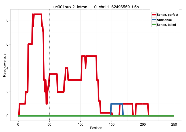 | AGAAAACATATTGCATACCACCCAGACAGACTGCTATAACAATCTAGCTGGTAAGAACGGGGCTAAAGGGTGGCTAGAGAGCATTAAGACAGGAACATGAACATCTGTGAACATTGGGGGAAAAAACGCTGACTTTTTTTTTTTTTTACTGTCATCCATTTATTCTGCCATGAATTGGAATAACCTGTCAATCTGTGCGGCTGTAATTAAGTTGCCATAGAGCAGGGCTTCTCAGACTTCACCTGGAGAG ..........................................................................................................(((.(((.((..((((((((..........))))))))..)).))))))............................................................................................... ........................................................................................89.................................................................156............................................................................................ | Size | Perfect hit | Total Norm | Perfect Norm | SRR207115(GSM721077) XRN1&2 knockdown. (XRN1/XRN2 cell line) | SRR189775(GSM714635) cell line: HEK293clip variant: CLIPenzymatic . (cell line) | SRR189776(GSM714636) cell line: HEK293clip variant: CLIPenzymatic . (cell line) | SRR189780(GSM714640) cell line: HEK293clip variant: PAR-CLIPenzyma. (cell line) | SRR033712(GSM497057) Burkitt Lymphoma (BL510). (B cell) | SRR189782 | SRR189779(GSM714639) cell line: HEK293clip variant: PAR-CLIPenzyma. (cell line) | SRR330863(SRX091701) tissue: skin psoriatic involveddisease state:. (skin) | SRR324841(SRX087285) "Total RNA, no rRNA depletion". (cell line) | SRR189778(GSM714638) cell line: HEK293clip variant: PAR-CLIPenzyma. (cell line) | SRR039623(GSM531986) HCV(+) HCC Tissue Sample. (liver) | SRR189777(GSM714637) cell line: HEK293clip variant: PAR-CLIPenzyma. (cell line) | SRR189781(GSM714641) cell line: HEK293clip variant: PAR-CLIPenzyma. (cell line) | RoviraIPAgo2(Rovira) total RNA. (ago2 breast) | SRR189784 | SRR033722(GSM497067) KMS12 cell line (KMS12). (B cell) | SRR553572(SRX182778) source: Frontal Cortex. (Frontal Cortex) | SRR342894(SRX096790) small RNA seq of Right atrial tissue. (heart) | SRR330906(SRX091744) tissue: normal skindisease state: normal. (skin) | SRR342901(SRX096797) small RNA seq of Left atrial tissue. (heart) | DRR000558(DRX000316) "THP-1 whole cell RNA, after 3 day treatment . (cell line) | SRR330896(SRX091734) tissue: skin psoriatic uninvolveddisease stat. (skin) | SRR330861(SRX091699) tissue: skin psoriatic involveddisease state:. (skin) | SRR330868(SRX091706) tissue: skin psoriatic involveddisease state:. (skin) | SRR553576(SRX182782) source: Testis. (testes) | SRR207116(GSM721078) Nuclear RNA. (cell line) | SRR060981(GSM569185) Human centroblast [09-001]. (cell line) | SRR330902(SRX091740) tissue: skin psoriatic uninvolveddisease stat. (skin) | SRR342897(SRX096793) small RNA seq of Left atrial tissue. (heart) |