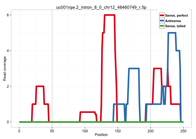 | GACTCTGTGATTTTACTGAAAGTGAAAGATTCCCAGACTCCAACTCCCAGGTAAACTTTGGAAAAAGCTTGTTCTTTATTAATTAATTAATATATCTTTTTGAGACGGAGTCTCGCTCTGTTGCCCAGGCTGGAGTGTAGTGGCGCGATCTTGGTTCACTGCAACCTCCACCTCCCTGGTTCAAGCAATTCTTCTGCCTCAGCCTCCCGAGTAGCTAGGATTACAGGCGCCCGCCACCACGCCCAGCTAA ...................................................................................................((((((((..(((.((((((...((....)).))))))....))).)).))))))................................................................................................ ........................................................................................89.................................................................156............................................................................................ | Size | Perfect hit | Total Norm | Perfect Norm | SRR189780(GSM714640) cell line: HEK293clip variant: PAR-CLIPenzyma. (cell line) | SRR189779(GSM714639) cell line: HEK293clip variant: PAR-CLIPenzyma. (cell line) | SRR033725(GSM497070) Unmutated CLL (CLLU626). (B cell) | SRR033726(GSM497071) Mututated CLL (CLLM633). (B cell) | DRR000556(DRX000314) "THP-1 whole cell RNA, after 3 day treatment . (cell line) | SRR553573(SRX182779) source: Cerebellum. (Cerebellum) | DRR000558(DRX000316) "THP-1 whole cell RNA, after 3 day treatment . (cell line) | SRR189782 | DRR000555(DRX000313) "THP-1 whole cell RNA, no treatment". (cell line) | SRR039614(GSM531977) HBV-infected Liver Tissue. (liver) | SRR342894(SRX096790) small RNA seq of Right atrial tissue. (heart) | SRR033717(GSM497062) Mentle Cell Lymphoma (MCL112). (B cell) | SRR039622(GSM531985) HCV(+) Adjacent Tissue Sample. (liver) | SRR039623(GSM531986) HCV(+) HCC Tissue Sample. (liver) | SRR330889(SRX091727) tissue: skin psoriatic uninvolveddisease stat. (skin) | SRR037936(GSM510474) 293cand1. (cell line) | SRR326279(GSM769509) cytoplasmic fraction was isolated using PARIS. (cell line) | SRR390723(GSM850202) total small RNA. (cell line) | SRR037941(GSM510479) 293DroshaTN. (cell line) | GSM956925Ago2(GSM956925) "cell line: HEK293 cell linepassages: 15-20ip. (ago2 cell line) | SRR330902(SRX091740) tissue: skin psoriatic uninvolveddisease stat. (skin) | GSM450599(GSM450599) miRNA sequencing raw reads from post-mortem s. (brain) | GSM956925Ago2PAZ(GSM956925) "cell line: HEK293 cell linepassages: 15-20ip. (ago2 cell line) | SRR330878(SRX091716) tissue: skin psoriatic involveddisease state:. (skin) | GSM956925Paz8D5(GSM956925) "cell line: HEK293 cell linepassages: 15-20ip. (cell line) | SRR060981(GSM569185) Human centroblast [09-001]. (cell line) | SRR342899(SRX096795) small RNA seq of Left atrial tissue. (heart) | SRR330872(SRX091710) tissue: skin psoriatic involveddisease state:. (skin) | SRR390724(GSM850203) small rna immunoprecipitated. (cell line) | SRR039621(GSM531984) HBV(+) HCC Tissue Sample 2. (liver) | SRR330905(SRX091743) tissue: normal skindisease state: normal. (skin) | SRR039620(GSM531983) HBV(+) Adjacent Tissue Sample 2. (liver) | SRR040019(GSM532904) G701T. (cervix) | SRR553572(SRX182778) source: Frontal Cortex. (Frontal Cortex) | GSM450601(GSM450601) miRNA sequencing raw reads from post-mortem s. (brain) | DRR000557(DRX000315) "THP-1 whole cell RNA, after 3 day treatment . (cell line) | SRR330863(SRX091701) tissue: skin psoriatic involveddisease state:. (skin) | SRR330890(SRX091728) tissue: skin psoriatic uninvolveddisease stat. (skin) | SRR330864(SRX091702) tissue: skin psoriatic involveddisease state:. (skin) | GSM532874(GSM532874) G699T. (cervix) | SRR207118(GSM721080) RRP40 knockdown. (RRP40 cell line) | GSM416733(GSM416733) HEK293. (cell line) | SRR033716(GSM497061) Mentle Cell Lymphoma (MCL114). (B cell) | SRR330897(SRX091735) tissue: skin psoriatic uninvolveddisease stat. (skin) | SRR037931(GSM510469) 293GFP. (cell line) | SRR060982(GSM569186) Human centrocyte [09-001]. (cell line) | SRR095854(SRX039177) "miRNA were isolated from FirstChoice Human B. (brain) | TAX577741(Rovira) total RNA. (breast) | SRR037932(GSM510470) 293cand4_rep1. (cell line) | GSM956925F181A(GSM956925) "cell line: HEK293 cell linepassages: 15-20ip. (cell line) | SRR330919(SRX091757) tissue: normal skindisease state: normal. (skin) | SRR330901(SRX091739) tissue: skin psoriatic uninvolveddisease stat. (skin) | DRR000559(DRX000317) "THP-1 whole cell RNA, no treatment". (cell line) | SRR207115(GSM721077) XRN1&2 knockdown. (XRN1/XRN2 cell line) | SRR342900(SRX096796) small RNA seq of Right atrial tissue. (heart) | SRR330870(SRX091708) tissue: skin psoriatic involveddisease state:. (skin) | GSM1105750AGO3(GSM1105750) small RNA sequencing data. (ago3 hela) | SRR107296(GSM677703) 18-30nt fraction of small RNA. (cell line) | SRR060168(GSM565978) 5-8F_nucleus. (cell line) | GSM450602(GSM450602) miRNA sequencing raw reads from post-mortem s. (brain) | TAX577738(Rovira) total RNA. (breast) | SRR033714(GSM497059) Burkitt Lymphoma (BL134). (B cell) | SRR207116(GSM721078) Nuclear RNA. (cell line) | SRR342897(SRX096793) small RNA seq of Left atrial tissue. (heart) | GSM450605(GSM450605) miRNA sequencing raw reads from post-mortem s. (brain) | SRR040020(GSM532905) G699N_2. (cervix) | SRR326280(GSM769510) total cell content of unperturbed cells was s. (cell line) | SRR330866(SRX091704) tissue: skin psoriatic involveddisease state:. (skin) | SRR039624(GSM531987) HBV(-) HCV(-) Adjacent Tissue Sample. (liver) |