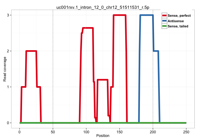 | CTCTCCAGCAGTGAAACTCCATGATGAAACCCTAACGTATCTCAATCAAGGTTAGATGCTTCCTCATTCATTAGTACTATTGCAGACCTACTGTATTTATGATTTTTTTGTTTGTTTGTTTGTTTTGAGACGGCGTCACCCAGGCTGGAGTGTAGTGGCGCCATCTTGGCTCACTGCAAGCTCTGCCTCCCGGGTTCACACCATTCTCCTGCCTCAGCCTCCTGAGTAGCTGGGACCACAGGCACCCGCC ...................................................................((.((((.((....((((((..((..................))..))))))..)).))))))........................................................................................................................ ...............................................................64.................................................................131..................................................................................................................... | Size | Perfect hit | Total Norm | Perfect Norm | SRR189780(GSM714640) cell line: HEK293clip variant: PAR-CLIPenzyma. (cell line) | SRR189779(GSM714639) cell line: HEK293clip variant: PAR-CLIPenzyma. (cell line) | SRR314796(SRX084354) "Total RNA, fractionated (15-30nt)". (cell line) | SRR189781(GSM714641) cell line: HEK293clip variant: PAR-CLIPenzyma. (cell line) | GSM1105748AGO1(GSM1105748) small RNA sequencing data. (ago1 hela) | SRR553572(SRX182778) source: Frontal Cortex. (Frontal Cortex) | DRR000556(DRX000314) "THP-1 whole cell RNA, after 3 day treatment . (cell line) | SRR553573(SRX182779) source: Cerebellum. (Cerebellum) | SRR095854(SRX039177) "miRNA were isolated from FirstChoice Human B. (brain) | DRR000555(DRX000313) "THP-1 whole cell RNA, no treatment". (cell line) | DRR000558(DRX000316) "THP-1 whole cell RNA, after 3 day treatment . (cell line) | SRR189782 | SRR390723(GSM850202) total small RNA. (cell line) | SRR207115(GSM721077) XRN1&2 knockdown. (XRN1/XRN2 cell line) | SRR039623(GSM531986) HCV(+) HCC Tissue Sample. (liver) | SRR033712(GSM497057) Burkitt Lymphoma (BL510). (B cell) | SRR033719(GSM497064) 6hr Activated B cell line (ABC158). (B cell) | SRR330865(SRX091703) tissue: skin psoriatic involveddisease state:. (skin) | SRR390724(GSM850203) small rna immunoprecipitated. (cell line) | SRR330905(SRX091743) tissue: normal skindisease state: normal. (skin) | SRR033718(GSM497063) Multiple Myeloma (U266). (B cell) | SRR015359(GSM380324) Germinal Center B cell (GC136). (B cell) | SRR039614(GSM531977) HBV-infected Liver Tissue. (liver) | SRR015363(GSM380328) Germinal Center B cell (GC40). (B cell) | SRR039620(GSM531983) HBV(+) Adjacent Tissue Sample 2. (liver) | SRR189787 | GSM450601(GSM450601) miRNA sequencing raw reads from post-mortem s. (brain) | DRR000557(DRX000315) "THP-1 whole cell RNA, after 3 day treatment . (cell line) | SRR326279(GSM769509) cytoplasmic fraction was isolated using PARIS. (cell line) | SRR060984(GSM569188) Human plasma cell [09-001]. (cell line) | SRR033716(GSM497061) Mentle Cell Lymphoma (MCL114). (B cell) | SRR015364(GSM380329) Plasma B cells (PC44). (B cell) | SRR039192(GSM494811) K562 cell line is derived from a CML patient . (cell line) | SRR387910(GSM843862) antibody for ip: Ago2. (ago2 cell line) | TAX577739(Rovira) total RNA. (breast) | SRR330884(SRX091722) tissue: skin psoriatic uninvolveddisease stat. (skin) | GSM450610(GSM450610) miRNA sequencing raw reads from post-mortem s. (brain) | SRR033720(GSM497065) EBV activated B cell line (EBV159). (B cell) | DRR000559(DRX000317) "THP-1 whole cell RNA, no treatment". (cell line) | GSM1105750AGO3(GSM1105750) small RNA sequencing data. (ago3 hela) | SRR189786 | SRR330902(SRX091740) tissue: skin psoriatic uninvolveddisease stat. (skin) | SRR107296(GSM677703) 18-30nt fraction of small RNA. (cell line) | SRR039622(GSM531985) HCV(+) Adjacent Tissue Sample. (liver) | GSM450599(GSM450599) miRNA sequencing raw reads from post-mortem s. (brain) | SRR033714(GSM497059) Burkitt Lymphoma (BL134). (B cell) | GSM450605(GSM450605) miRNA sequencing raw reads from post-mortem s. (brain) | SRR326280(GSM769510) total cell content of unperturbed cells was s. (cell line) | SRR037944(GSM510482) 293DcrTN_cand5. (cell line) | SRR330904(SRX091742) tissue: normal skindisease state: normal. (skin) |
