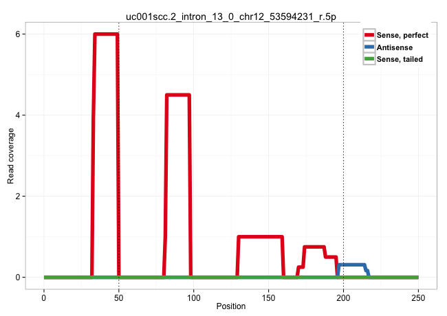 | TCTGGTCTGTTTCCTGTTTGGCTCTTCTACCACTACGGCTTGGGATCTCGGTAAATAGAACTGGGTGCAGACTTTAGTGCTTTCAGGCTCAGTCCCCAAATCCTTTAGTAGGCCATTTTGCCCACCTTGGCCACATGAAGTCTGCACACAGGAAGGACAGATCTTCTCTGAGGCCCCTATTTTTTTTTTTTTTAAGACAGATTCTTGCTTTGTCACCCAGGCTGGTGTGCAGTGGTGTGATCTCGGCTCA ..............................................................................((.((((((.((.((((.....((((...(((((((((...(((......)))...)))..))))))....)))).)))).)).....))))))))............................................................................ .............................................................................78........................................................................................................................200................................................ | Size | Perfect hit | Total Norm | Perfect Norm | SRR189784 | SRR189782 | SRR189785 | SRR189783 | SRR343335 | SRR189786 | SRR343334 | SRR189787 | SRR343337 | SRR343336 | SRR189781(GSM714641) cell line: HEK293clip variant: PAR-CLIPenzyma. (cell line) | SRR553573(SRX182779) source: Cerebellum. (Cerebellum) | SRR189775(GSM714635) cell line: HEK293clip variant: CLIPenzymatic . (cell line) | SRR189780(GSM714640) cell line: HEK293clip variant: PAR-CLIPenzyma. (cell line) | SRR189776(GSM714636) cell line: HEK293clip variant: CLIPenzymatic . (cell line) | TAX577739(Rovira) total RNA. (breast) | TAX577741(Rovira) total RNA. (breast) | SRR189779(GSM714639) cell line: HEK293clip variant: PAR-CLIPenzyma. (cell line) | TAX577738(Rovira) total RNA. (breast) | SRR189778(GSM714638) cell line: HEK293clip variant: PAR-CLIPenzyma. (cell line) | SRR553572(SRX182778) source: Frontal Cortex. (Frontal Cortex) | SRR553575(SRX182781) source: Kidney. (Kidney) | SRR207112(GSM721074) RRP40 knockdown. (RRP40 cell line) | TAX577740(Rovira) total RNA. (breast) | SRR387910(GSM843862) antibody for ip: Ago2. (ago2 cell line) | SRR553576(SRX182782) source: Testis. (testes) | SRR033728(GSM497073) MALT (MALT413). (B cell) | TAX577745(Rovira) total RNA. (breast) | TAX577743(Rovira) total RNA. (breast) | SRR094129(GSM651905) small RNA(18-35nt)small RNA deep sequencing o. (uterus) | SRR107297(GSM677704) 18-30nt fraction of small RNA. (cell line) | SRR033722(GSM497067) KMS12 cell line (KMS12). (B cell) | SRR094130(GSM651906) small RNA(18-35nt)small RNA deep sequencing o. (uterus) | SRR207111(GSM721073) Whole cell RNA. (cell line) | DRR000556(DRX000314) "THP-1 whole cell RNA, after 3 day treatment . (cell line) | SRR039618(GSM531981) HBV(+) Side Tissue Sample 1. (liver) | SRR094131(GSM651907) small RNA(18-35nt)small RNA deep sequencing o. (uterus) | TAX577590(Rovira) total RNA. (breast) | SRR038859(GSM458542) MM386. (cell line) | TAX577742(Rovira) total RNA. (breast) | SRR015448(SRR015448) cytoplasmic small RNAs. (breast) | SRR107296(GSM677703) 18-30nt fraction of small RNA. (cell line) | SRR060169(GSM565979) 5-8F_cytoplasm. (cell line) | SRR326282(GSM769512) "Dicer mRNA was knocked down using siDicer, t. (cell line) | SRR033729(GSM497074) splenic MZL (Splenic414). (B cell) | SRR553574(SRX182780) source: Heart. (Heart) | SRR039621(GSM531984) HBV(+) HCC Tissue Sample 2. (liver) | SRR330921(SRX091759) tissue: normal skindisease state: normal. (skin) | SRR040018(GSM532903) G701N. (cervix) | SRR330905(SRX091743) tissue: normal skindisease state: normal. (skin) | SRR033718(GSM497063) Multiple Myeloma (U266). (B cell) | TAX577580(Rovira) total RNA. (breast) | SRR330908(SRX091746) tissue: normal skindisease state: normal. (skin) | DRR000562(DRX000320) Isolation of RNA following immunoprecipitatio. (ago3 cell line) | SRR039620(GSM531983) HBV(+) Adjacent Tissue Sample 2. (liver) | SRR039625(GSM531988) HBV(-) HCV(-) HCC Tissue Sample. (liver) | SRR330906(SRX091744) tissue: normal skindisease state: normal. (skin) | SRR444056(SRX128904) Sample 28cDNABarcode: AF-PP-333: ACG CTC TTC . (skin) | GSM450601(GSM450601) miRNA sequencing raw reads from post-mortem s. (brain) | SRR040028(GSM532913) G026N. (cervix) | SRR207118(GSM721080) RRP40 knockdown. (RRP40 cell line) | SRR037937(GSM510475) 293cand2. (cell line) | SRR330904(SRX091742) tissue: normal skindisease state: normal. (skin) | SRR039617(GSM531980) HBV(+) Adjacent Tissue Sample 1. (liver) | SRR191631(GSM715741) 75genomic small RNA (size selected RNA from t. (breast) | SRR033726(GSM497071) Mututated CLL (CLLM633). (B cell) | SRR039612(GSM531975) Human Normal Liver Tissue Sample 2. (liver) | SRR040007(GSM532892) G601T. (cervix) | SRR094132(GSM651908) small RNA(18-35nt)small RNA deep sequencing o. (uterus) | SRR038861(GSM458544) MM466. (cell line) | SRR330871(SRX091709) tissue: skin psoriatic involveddisease state:. (skin) | SRR029126(GSM416755) 143B. (cell line) | SRR207115(GSM721077) XRN1&2 knockdown. (XRN1/XRN2 cell line) | SRR038860(GSM458543) MM426. (cell line) | SRR038857(GSM458540) D20. (cell line) | SRR060168(GSM565978) 5-8F_nucleus. (cell line) | TAX577744(Rovira) total RNA. (breast) | TAX577589(Rovira) total RNA. (breast) | SRR039622(GSM531985) HCV(+) Adjacent Tissue Sample. (liver) | SRR033730(GSM497075) Lymphoblastic (ALL411). (B cell) | SRR342895(SRX096791) small RNA seq of Left atrial tissue. (heart) | SRR207116(GSM721078) Nuclear RNA. (cell line) | TAX577453(Rovira) total RNA. (breast) | SRR033723(GSM497068) L1236 cell line (L1236). (B cell) | SRR040035(GSM532920) G001T. (cervix) | DRR000560(DRX000318) Isolation of RNA following immunoprecipitatio. (ago1 cell line) | SRR326281(GSM769511) "Dicer mRNA was knocked down using siDicer, c. (cell line) | SRR033711(GSM497056) GCB DLBCL (GCB110). (B cell) | SRR189777(GSM714637) cell line: HEK293clip variant: PAR-CLIPenzyma. (cell line) | SRR040015(GSM532900) G623T. (cervix) | SRR342896(SRX096792) small RNA seq of Right atrial tissue. (heart) | SRR037942(GSM510480) 293DroshaTN_cand5. (cell line) | SRR039192(GSM494811) K562 cell line is derived from a CML patient . (cell line) | SRR029131(GSM416760) MCF7. (cell line) | SRR330876(SRX091714) tissue: skin psoriatic involveddisease state:. (skin) | SR