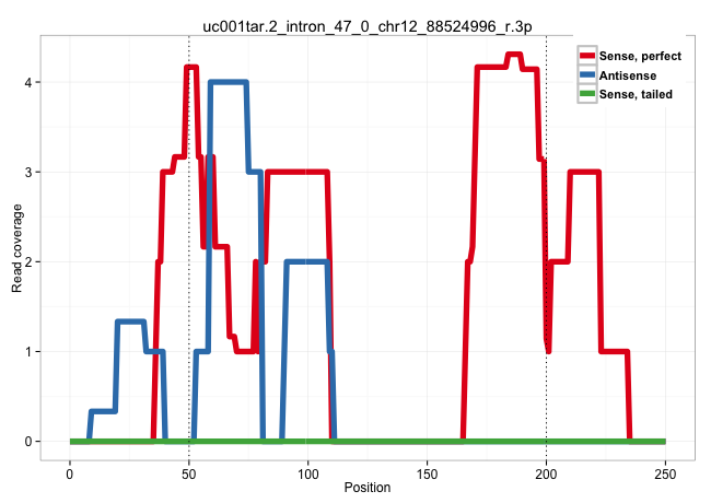 | TGGTAATGCATGCCAGTAATTCCAGCTACTCGGTAGGCTGAGGTGGGAGAATTGCTTGAACCGGGAGGCAGAGGTTGCAGTGAGCCGAGATCGCACCACTGTACTCCAGCCTAGGCGACAAAGACTTTGTCTCAAAAAAAAAAAAAATTACTGCTGAATTTTATCTTCTTCTTATTTATTTTTTTTTTTTACTATTTTAGTTGGCTCTTCGAAATGAGGAGGCAGAAAATGAAAACAGCAAATTAAGAAG ......................................................................................((((((((....(((.....))).....))))...........))))..(((((((((((((.......(((..........)))......)))))))))))))............................................................ ....................................................................................85.................................................................................................................200................................................ | Size | Perfect hit | Total Norm | Perfect Norm | SRR189780(GSM714640) cell line: HEK293clip variant: PAR-CLIPenzyma. (cell line) | SRR189779(GSM714639) cell line: HEK293clip variant: PAR-CLIPenzyma. (cell line) | SRR189775(GSM714635) cell line: HEK293clip variant: CLIPenzymatic . (cell line) | SRR189776(GSM714636) cell line: HEK293clip variant: CLIPenzymatic . (cell line) | SRR189785 | SRR189777(GSM714637) cell line: HEK293clip variant: PAR-CLIPenzyma. (cell line) | SRR189778(GSM714638) cell line: HEK293clip variant: PAR-CLIPenzyma. (cell line) | SRR189781(GSM714641) cell line: HEK293clip variant: PAR-CLIPenzyma. (cell line) | DRR000556(DRX000314) "THP-1 whole cell RNA, after 3 day treatment . (cell line) | SRR037942(GSM510480) 293DroshaTN_cand5. (cell line) | DRR000555(DRX000313) "THP-1 whole cell RNA, no treatment". (cell line) | GSM450601(GSM450601) miRNA sequencing raw reads from post-mortem s. (brain) | DRR000557(DRX000315) "THP-1 whole cell RNA, after 3 day treatment . (cell line) | GSM532874(GSM532874) G699T. (cervix) | SRR330904(SRX091742) tissue: normal skindisease state: normal. (skin) | GSM956925Ago2D5(GSM956925) "cell line: HEK293 cell linepassages: 15-20ip. (ago2 cell line) | GSM450598(GSM450598) miRNA sequencing raw reads from post-mortem s. (brain) | SRR330923(SRX091761) tissue: normal skindisease state: normal. (skin) | RoviraIPAgo2(Rovira) total RNA. (ago2 breast) | SRR040042(GSM532927) G428N. (cervix) | SRR330865(SRX091703) tissue: skin psoriatic involveddisease state:. (skin) | SRR189784 | SRR330914(SRX091752) tissue: normal skindisease state: normal. (skin) | SRR039190(GSM494809) PBMCs were isolated by ficoll gradient from t. (blood) | DRR000558(DRX000316) "THP-1 whole cell RNA, after 3 day treatment . (cell line) | GSM416733(GSM416733) HEK293. (cell line) | SRR037937(GSM510475) 293cand2. (cell line) | SRR037931(GSM510469) 293GFP. (cell line) | SRR330917(SRX091755) tissue: normal skindisease state: normal. (skin) | SRR040025(GSM532910) G613T. (cervix) | GSM1105749AGO2(GSM1105749) small RNA sequencing data. (ago2 hela) | GSM956925F181A(GSM956925) "cell line: HEK293 cell linepassages: 15-20ip. (cell line) | SRR342900(SRX096796) small RNA seq of Right atrial tissue. (heart) | SRR553576(SRX182782) source: Testis. (testes) | SRR330877(SRX091715) tissue: skin psoriatic involveddisease state:. (skin) | GSM956925Ago2(GSM956925) "cell line: HEK293 cell linepassages: 15-20ip. (ago2 cell line) | SRR324841(SRX087285) "Total RNA, no rRNA depletion". (cell line) | SRR330902(SRX091740) tissue: skin psoriatic uninvolveddisease stat. (skin) | SRR060168(GSM565978) 5-8F_nucleus. (cell line) | SRR039622(GSM531985) HCV(+) Adjacent Tissue Sample. (liver) | SRR326282(GSM769512) "Dicer mRNA was knocked down using siDicer, t. (cell line) | SRR342897(SRX096793) small RNA seq of Left atrial tissue. (heart) | GSM956925Ago2PAZ(GSM956925) "cell line: HEK293 cell linepassages: 15-20ip. (ago2 cell line) | SRR330866(SRX091704) tissue: skin psoriatic involveddisease state:. (skin) | GSM956925Paz8D5(GSM956925) "cell line: HEK293 cell linepassages: 15-20ip. (cell line) | SRR342896(SRX096792) small RNA seq of Right atrial tissue. (heart) | SRR330886(SRX091724) tissue: skin psoriatic uninvolveddisease stat. (skin) | SRR060981(GSM569185) Human centroblast [09-001]. (cell line) | SRR326281(GSM769511) "Dicer mRNA was knocked down using siDicer, c. (cell line) | SRR330908(SRX091746) tissue: normal skindisease state: normal. (skin) |