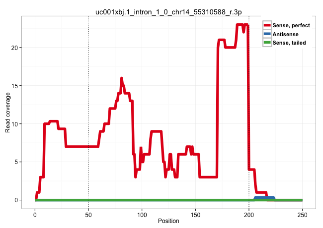 | TCCGGGAGGATCCAAAGACTCGGGAAGAGTTCCTGACTCTCATTAGGAGCTGAGCTTCATTCAGTGTGTGTGCGTTGGTTGCCGATCGTACTGCCAGTAGCATTGTCTGTCTGTCCGGTCTTGTTTGTACATTCCATTTTCAATTGTTACAGATGTGAACTTTATTCCTTGTCACTAATTATATTTAAAATTATTTCTAGGAAGTCAAATAAATATAATAAAGGGTTGAGCCCTCTACTTTCTTCTTGCC .................................................................(((.(((((((((...)))).))))))))..(((((((((..((..(((.(((......))).)))...))....)))).))))).................................................................................................... .................................................................66..........................................................................................158.......................................................................................... | Size | Perfect hit | Total Norm | Perfect Norm | SRR189785 | SRR039623(GSM531986) HCV(+) HCC Tissue Sample. (liver) | DRR001485(DRX001039) "Hela long total cell fraction, LNA(+)". (hela) | SRR207110(GSM721072) Nuclear RNA. (cell line) | SRR189776(GSM714636) cell line: HEK293clip variant: CLIPenzymatic . (cell line) | SRR033727(GSM497072) HIV-positive DL (HIV412). (B cell) | SRR189782 | SRR189781(GSM714641) cell line: HEK293clip variant: PAR-CLIPenzyma. (cell line) | DRR001488(DRX001042) "Hela short nuclear cell fraction, LNA(+)". (hela) | SRR189775(GSM714635) cell line: HEK293clip variant: CLIPenzymatic . (cell line) | SRR553573(SRX182779) source: Cerebellum. (Cerebellum) | SRR330899(SRX091737) tissue: skin psoriatic uninvolveddisease stat. (skin) | SRR039613(GSM531976) Human Normal Liver Tissue Sample 3. (liver) | SRR039622(GSM531985) HCV(+) Adjacent Tissue Sample. (liver) | SRR189777(GSM714637) cell line: HEK293clip variant: PAR-CLIPenzyma. (cell line) | SRR029125(GSM416754) U2OS. (cell line) | SRR330872(SRX091710) tissue: skin psoriatic involveddisease state:. (skin) | SRR189784 | SRR330892(SRX091730) tissue: skin psoriatic uninvolveddisease stat. (skin) | GSM450601(GSM450601) miRNA sequencing raw reads from post-mortem s. (brain) | SRR330898(SRX091736) tissue: skin psoriatic uninvolveddisease stat. (skin) | SRR330903(SRX091741) tissue: skin psoriatic uninvolveddisease stat. (skin) | SRR191408(GSM715518) 88genomic small RNA (size selected RNA from t. (breast) | SRR191610(GSM715720) 195genomic small RNA (size selected RNA from . (breast) | SRR330884(SRX091722) tissue: skin psoriatic uninvolveddisease stat. (skin) | SRR330861(SRX091699) tissue: skin psoriatic involveddisease state:. (skin) | SRR033715(GSM497060) Mantle Cell Lymphoma (Mino122). (B cell) | SRR207115(GSM721077) XRN1&2 knockdown. (XRN1/XRN2 cell line) | SRR330868(SRX091706) tissue: skin psoriatic involveddisease state:. (skin) | SRR060169(GSM565979) 5-8F_cytoplasm. (cell line) | SRR342895(SRX096791) small RNA seq of Left atrial tissue. (heart) | SRR040024(GSM532909) G613N. (cervix) | SRR033711(GSM497056) GCB DLBCL (GCB110). (B cell) | SRR039611(GSM531974) Human Normal Liver Tissue Sample 1. (liver) | SRR039621(GSM531984) HBV(+) HCC Tissue Sample 2. (liver) | SRR039618(GSM531981) HBV(+) Side Tissue Sample 1. (liver) | SRR342901(SRX096797) small RNA seq of Left atrial tissue. (heart) |