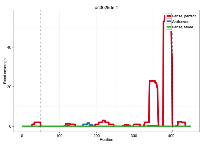 | TGCTCCGAGGCCTGTGTGCCAACACCGTGCTGCGCTTTCTGGACTTAAAGGTGAGATACCTGCACTCTTGAGTGTCCGAGTGTGCCACCCAAGGGCAAGAGGAGAGGTGGAAGATGCCAGGTCTCGGGGGCCTGGGGTCTGGGCAGGTGGCTGGAAGCTGTCTGTGAGTCCCCAGGCCGCTCTCTGATGGCCTCCTGTGTGTGACCATCTCCAGAGCAAGAGTTCACATTGGCAAACAAGCCGGCCCTTGGAAGCCCCCTGAAGACAGGGAGCCCAGGAGCTGAGGAAGGCTGCAGGGTGCACCCCAGGCTTGTCCCCTGGCTGACCAAGGCCCTTGGGGCATGGGCGGGAATTCAGAGCCAGTCAGGGCACGCGAGTGACTACCGGCCTGTTTCTCTCCTAGGGCAACAACCTTCGGGCTGCAGGGGCCGAGGCTCTGGGAAAACTCCTCCA ......................................................................................................................................................................................................................................................................................................................................................((((.(((((..(((.(((.((.((..(((....))).)))).)))))).))))).))))................................................... ................................................................................................................................................................................................................................................................................................................................................337...............................................................403................................................ | Size | Perfect hit | Total Norm | Perfect Norm | SRR387910(GSM843862) antibody for ip: Ago2. (ago2 cell line) | SRR207113(GSM721075) IP against AGO 1 & 2. (ago1/2 cell line) | SRR189782 | SRR207114(GSM721076) "IP against AGO 1 & 2, RRP40 knockdown". (ago1/2 RRP40 cell line) | SRR326279(GSM769509) cytoplasmic fraction was isolated using PARIS. (cell line) | SRR189786 | GSM1105749AGO2(GSM1105749) small RNA sequencing data. (ago2 hela) | SRR326280(GSM769510) total cell content of unperturbed cells was s. (cell line) | RoviraIPAgo2(Rovira) total RNA. (ago2 breast) | SRR189784 | GSM1105748AGO1(GSM1105748) small RNA sequencing data. (ago1 hela) | SRR189783 | DRR000558(DRX000316) "THP-1 whole cell RNA, after 3 day treatment . (cell line) | SRR037941(GSM510479) 293DroshaTN. (cell line) | SRR326282(GSM769512) "Dicer mRNA was knocked down using siDicer, t. (cell line) | SRR207111(GSM721073) Whole cell RNA. (cell line) | SRR189787 | GSM1105753INPUT(GSM1105753) small RNA sequencing data. (hela) | TAX577740(Rovira) total RNA. (breast) | SRR040039(GSM532924) G531T. (cervix) | SRR207115(GSM721077) XRN1&2 knockdown. (XRN1/XRN2 cell line) | GSM1105750AGO3(GSM1105750) small RNA sequencing data. (ago3 hela) | SRR326281(GSM769511) "Dicer mRNA was knocked down using siDicer, c. (cell line) | SRR330911(SRX091749) tissue: normal skindisease state: normal. (skin) | SRR330877(SRX091715) tissue: skin psoriatic involveddisease state:. (skin) | SRR029054(GSM402329) MCF7_smallRNAseq. (cell line) | DRR000561(DRX000319) Isolation of RNA following immunoprecipitatio. (ago2 cell line) | SRR330914(SRX091752) tissue: normal skindisease state: normal. (skin) | SRR094130(GSM651906) small RNA(18-35nt)small RNA deep sequencing o. (uterus) | SRR553575(SRX182781) source: Kidney. (Kidney) | GSM450601(GSM450601) miRNA sequencing raw reads from post-mortem s. (brain) | DRR000557(DRX000315) "THP-1 whole cell RNA, after 3 day treatment . (cell line) | SRR553573(SRX182779) source: Cerebellum. (Cerebellum) | SRR033724(GSM497069) L428 cell line (L428). (B cell) | GSM416733(GSM416733) HEK293. (cell line) | GSM956925PAZD5 | SRR037931(GSM510469) 293GFP. (cell line) | SRR039612(GSM531975) Human Normal Liver Tissue Sample 2. (liver) | SRR095854(SRX039177) "miRNA were isolated from FirstChoice Human B. (brain) | GSM956925F181A(GSM956925) "cell line: HEK293 cell linepassages: 15-20ip. (cell line) | SRR330874(SRX091712) tissue: skin psoriatic involveddisease state:. (skin) | SRR191595(GSM715705) 72genomic small RNA (size selected RNA from t. (breast) | SRR037940(GSM510478) 293cand5_rep2. (cell line) | SRR553576(SRX182782) source: Testis. (testes) | SRR037934(GSM510472) 293cand4_rep3. (cell line) | GSM450602(GSM450602) miRNA sequencing raw reads from post-mortem s. (brain) | SRR039622(GSM531985) HCV(+) Adjacent Tissue Sample. (liver) | SRR033730(GSM497075) Lymphoblastic (ALL411). (B cell) | SRR342898(SRX096794) small RNA seq of Right atrial tissue. (heart) | SRR040035(GSM532920) G001T. (cervix) | SRR387909(GSM843861) specific-host: Homo sapienshost cell line: Su. (cell line) | SRR330902(SRX091740) tissue: skin psoriatic uninvolveddisease stat. (skin) | SRR330888(SRX091726) tissue: skin psoriatic uninvolveddisease stat. (skin) | SRR553572(SRX182778) source: Frontal Cortex. (Frontal Cortex) | SRR094131(GSM651907) small RNA(18-35nt)small RNA deep sequencing o. (uterus) | SRR342897(SRX096793) small RNA seq of Left atrial tissue. (heart) | SRR342899(SRX096795) small RNA seq of Left atrial tissue. (heart) | SRR107297(GSM677704) 18-30nt fraction of small RNA. (cell line) | SRR107296(GSM677703) 18-30nt fraction of small RNA. (cell line) | SRR330889(SRX091727) tissue: skin psoriatic uninvolveddisease stat. (skin) | SRR330900(SRX091738) tissue: skin psoriatic uninvolveddisease stat. (skin) | SRR330906(SRX091744) tissue: normal skindisease state: normal. (skin) | SRR330901(SRX091739) tissue: skin psoriatic uninvolveddisease stat. (skin) | SRR330895(SRX091733) tissue: skin psoriatic uninvolveddisease stat. (skin) |