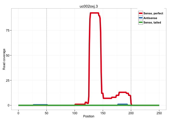 | GGCAGAAATCAGACCTGACTCACTTCTGGGTCCCCAGCATTGCCCTACACAGAGCCTGGTGCTAAAGTGAAGTGAAGTTATATAAATATTTACACAGTGATCTGAACTCAGGGGTAACAACAGGTCTTTGGGGTGAGAAAGGGGAGTCCATGAAGCCAAGCGATGTCTGCCTGACAGGGCCCGTCTCTTCCCACCCTCAGTCTTCTTGCAGAACAAAGCTCGCCGAGAGGACTTCTGTCCTCGGAAGCTG ................................................................................................................................(((((((.((((((((.((((.....((...))..((((.....)))))))))).))).))).))))).))................................................... .........................................................................................................................122...........................................................................200................................................  | Size | Perfect hit | Total Norm | Perfect Norm | SRR387910(GSM843862) antibody for ip: Ago2. (ago2 cell line)  | SRR387909(GSM843861) specific-host: Homo sapienshost cell line: Su. (cell line)  | DRR001486(DRX001040) "Hela long cytoplasmic cell fraction, LNA(+)". (hela)  | SRR038863(GSM458546) MM603. (cell line)  | DRR000558(DRX000316) "THP-1 whole cell RNA, after 3 day treatment . (cell line)  | DRR000556(DRX000314) "THP-1 whole cell RNA, after 3 day treatment . (cell line)  | SRR189782 | RoviraIPAgo2(Rovira) total RNA. (ago2 breast)  | SRR207115(GSM721077) XRN1&2 knockdown. (XRN1/XRN2 cell line)  | SRR189786 | SRR033729(GSM497074) splenic MZL (Splenic414). (B cell)  | SRR189784 | DRR000557(DRX000315) "THP-1 whole cell RNA, after 3 day treatment . (cell line)  | SRR029054(GSM402329) MCF7_smallRNAseq. (cell line)  | SRR033717(GSM497062) Mentle Cell Lymphoma (MCL112). (B cell)  | SRR037937(GSM510475) 293cand2. (cell line)  | SRR033727(GSM497072) HIV-positive DL (HIV412). (B cell)  | TAX577739(Rovira) total RNA. (breast)  | SRR038857(GSM458540) D20. (cell line)  | SRR189787 | SRR029125(GSM416754) U2OS. (cell line)  | SRR191409(GSM715519) 19genomic small RNA (size selected RNA from t. (breast)  | DRR001488(DRX001042) "Hela short nuclear cell fraction, LNA(+)". (hela)  | SRR330880(SRX091718) tissue: skin psoriatic involveddisease state:. (skin)  | SRR029124(GSM416753) HeLa. (hela)  | SRR107297(GSM677704) 18-30nt fraction of small RNA. (cell line)  | SRR330906(SRX091744) tissue: normal skindisease state: normal. (skin)  | SRR330907(SRX091745) tissue: normal skindisease state: normal. (skin)  | SRR191592(GSM715702) 59genomic small RNA (size selected RNA from t. (breast)  | SRR207113(GSM721075) IP against AGO 1 & 2. (ago1/2 cell line)  | SRR207112(GSM721074) RRP40 knockdown. (RRP40 cell line)  | SRR444059(SRX128907) Sample 17cDNABarcode: AF-PP-339: ACG CTC TTC . (skin)  | SRR330863(SRX091701) tissue: skin psoriatic involveddisease state:. (skin)  | SRR342901(SRX096797) small RNA seq of Left atrial tissue. (heart)  | SRR553573(SRX182779) source: Cerebellum. (Cerebellum)  | SRR040008(GSM532893) G727N. (cervix)  | SRR363675(GSM830252) cell type: human foreskin fibroblasts (HFF)tr. (fibroblast)  | SRR095854(SRX039177) "miRNA were isolated from FirstChoice Human B. (brain)  | SRR039636(GSM518473) THP1_cyto_sRNAs. (cell line)  | SRR189779(GSM714639) cell line: HEK293clip variant: PAR-CLIPenzyma. (cell line)  | SRR207114(GSM721076) "IP against AGO 1 & 2, RRP40 knockdown". (ago1/2 RRP40 cell line)  | SRR191597(GSM715707) 75genomic small RNA (size selected RNA from t. (breast)  | SRR033715(GSM497060) Mantle Cell Lymphoma (Mino122). (B cell)  | SRR029126(GSM416755) 143B. (cell line)  | SRR029130(GSM416759) DLD2. (cell line)  | GSM450600(GSM450600) miRNA sequencing raw reads from post-mortem s. (brain)  | SRR342895(SRX096791) small RNA seq of Left atrial tissue. (heart)  | SRR342897(SRX096793) small RNA seq of Left atrial tissue. (heart)  | SRR207116(GSM721078) Nuclear RNA. (cell line)  | GSM450605(GSM450605) miRNA sequencing raw reads from post-mortem s. (brain)  | SRR038862(GSM458545) MM472. (cell line)  | SRR330878(SRX091716) tissue: skin psoriatic involveddisease state:. (skin)  | SRR039623(GSM531986) HCV(+) HCC Tissue Sample. (liver)  | SRR326281(GSM769511) "Dicer mRNA was knocked down using siDicer, c. (cell line)  | TAX577743(Rovira) total RNA. (breast)  | SRR330879(SRX091717) tissue: skin psoriatic involveddisease state:. (skin)  | SRR207111(GSM721073) Whole cell RNA. (cell line)  | SRR039190(GSM494809) PBMCs were isolated by ficoll gradient from t. (blood)  | SRR326279(GSM769509) cytoplasmic fraction was isolated using PARIS. (cell line)  | SRR189785 | SRR038860(GSM458543) MM426. (cell line)  | SRR326282(GSM769512) "Dicer mRNA was knocked down using siDicer, t. (cell line)  | GSM450599(GSM450599) miRNA sequencing raw reads from post-mortem s. (brain)  | SRR033730(GSM497075) Lymphoblastic (ALL411). (B cell)  | SRR029131(GSM416760) MCF7. (cell line)  | SRR191572(GSM715682) 66genomic small RNA (size selected RNA from t. (breast)  | SRR326280(GSM769510) total cell content of unperturbed cells was s. (cell line)  | SRR039637(GSM518474) THP1_total_sRNAs. (cell line)  | TAX577741(Rovira) total RNA. (breast)  |