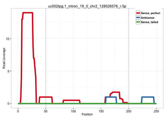 | TGAACCGAAAAACCATAGACTACAATCCATCTGTAATTAAGTATTTGGAGGTAAGCCTGATTTATGTGCTTCAGATGACCAAACTTTGGTTATTTATTTATTTATTTATTTATTTATTTATTTATTTATTTATTTTGAGATGGAGTTTCTTTCTTGTTGCCCAGGCCAGAGTGCAGTGGTGTGGTTTTGGCTCACTGCAACCTCTGCCTCCCGGGTTCAAGTGATTCTCCTGCCTCAGCTTCCCAAGTAG ...................................................................................................................................................(((..((((.....))))..))).((((((((.((.......))))))))))................................................... ............................................................................................................................................141........................................................200................................................ | Size | Perfect hit | Total Norm | Perfect Norm | SRR189777(GSM714637) cell line: HEK293clip variant: PAR-CLIPenzyma. (cell line) | SRR189780(GSM714640) cell line: HEK293clip variant: PAR-CLIPenzyma. (cell line) | SRR189779(GSM714639) cell line: HEK293clip variant: PAR-CLIPenzyma. (cell line) | SRR189775(GSM714635) cell line: HEK293clip variant: CLIPenzymatic . (cell line) | SRR189778(GSM714638) cell line: HEK293clip variant: PAR-CLIPenzyma. (cell line) | SRR189776(GSM714636) cell line: HEK293clip variant: CLIPenzymatic . (cell line) | SRR343334 | SRR314796(SRX084354) "Total RNA, fractionated (15-30nt)". (cell line) | SRR343335 | SRR189781(GSM714641) cell line: HEK293clip variant: PAR-CLIPenzyma. (cell line) | SRR039623(GSM531986) HCV(+) HCC Tissue Sample. (liver) | DRR000555(DRX000313) "THP-1 whole cell RNA, no treatment". (cell line) | SRR553573(SRX182779) source: Cerebellum. (Cerebellum) | GSM1105750AGO3(GSM1105750) small RNA sequencing data. (ago3 hela) | SRR387910(GSM843862) antibody for ip: Ago2. (ago2 cell line) | DRR000559(DRX000317) "THP-1 whole cell RNA, no treatment". (cell line) | SRR039622(GSM531985) HCV(+) Adjacent Tissue Sample. (liver) | RoviraIPAgo2(Rovira) total RNA. (ago2 breast) | SRR330873(SRX091711) tissue: skin psoriatic involveddisease state:. (skin) | SRR033722(GSM497067) KMS12 cell line (KMS12). (B cell) | SRR330914(SRX091752) tissue: normal skindisease state: normal. (skin) | SRR040010(GSM532895) G529N. (cervix) | DRR000556(DRX000314) "THP-1 whole cell RNA, after 3 day treatment . (cell line) | SRR326279(GSM769509) cytoplasmic fraction was isolated using PARIS. (cell line) | SRR094131(GSM651907) small RNA(18-35nt)small RNA deep sequencing o. (uterus) | DRR000558(DRX000316) "THP-1 whole cell RNA, after 3 day treatment . (cell line) | SRR191611(GSM715721) 57genomic small RNA (size selected RNA from t. (breast) | GSM956925PazD5(GSM956925) "cell line: HEK293 cell linepassages: 15-20ip. (cell line) | SRR189785 | SRR038855(GSM458538) D10. (cell line) | SRR040031(GSM532916) G013T. (cervix) | SRR039612(GSM531975) Human Normal Liver Tissue Sample 2. (liver) | SRR330861(SRX091699) tissue: skin psoriatic involveddisease state:. (skin) | GSM956925AGO2Paz8(GSM956925) "cell line: HEK293 cell linepassages: 15-20ip. (ago2 cell line) | SRR060986(GSM569190) Human memory B cell [09-001]. (cell line) | GSM956925Ago2PAZ(GSM956925) "cell line: HEK293 cell linepassages: 15-20ip. (ago2 cell line) | SRR330866(SRX091704) tissue: skin psoriatic involveddisease state:. (skin) | TAX577745(Rovira) total RNA. (breast) | SRR343337 | SRR326281(GSM769511) "Dicer mRNA was knocked down using siDicer, c. (cell line) | SRR033711(GSM497056) GCB DLBCL (GCB110). (B cell) | GSM532878(GSM532878) G691T. (cervix) |