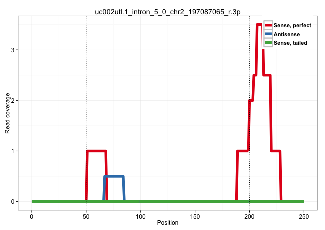 | TTTCTAATTTTATAACAAATTTCTGAATTATTTCACTGGTTTGGTTTAATTACTGGACTTGGACTAAGAACATTCCAGAAATCACTGCCTATGTAGTGGCTCTTATTCTTCTCTTTAATTCTTAGTTTCTTTCCTTATGACTCTGGGTTTTTGCTAATAGCCATGCCTACATATTTGTTTCTGTCTGTTTGTCATCTTAGTCTATGTGACCTGAGTGACCTAGAATACCTTGATGAAGAGTTCCATCAGA .......................................................(((.(((((...(((((...(((......)))..((((((((((((.(((...........((..(((((..((.........))..)))))..))...))).)))))...)))))))..)))))..)))))...)))......................................................... ..................................................51...................................................................................................................................................200................................................ | Size | Perfect hit | Total Norm | Perfect Norm | SRR207114(GSM721076) "IP against AGO 1 & 2, RRP40 knockdown". (ago1/2 RRP40 cell line) | SRR207113(GSM721075) IP against AGO 1 & 2. (ago1/2 cell line) | TAX577744(Rovira) total RNA. (breast) | SRR039190(GSM494809) PBMCs were isolated by ficoll gradient from t. (blood) | SRR207116(GSM721078) Nuclear RNA. (cell line) | DRR000557(DRX000315) "THP-1 whole cell RNA, after 3 day treatment . (cell line) | SRR037939(GSM510477) 293cand5_rep1. (cell line) | SRR326280(GSM769510) total cell content of unperturbed cells was s. (cell line) | SRR189781(GSM714641) cell line: HEK293clip variant: PAR-CLIPenzyma. (cell line) | SRR342894(SRX096790) small RNA seq of Right atrial tissue. (heart) | RoviraIPAgo2(Rovira) total RNA. (ago2 breast) | SRR039616(GSM531979) HBV(+) Distal Tissue Sample 1. (liver) | TAX577588(Rovira) total RNA. (breast) | SRR189787 | GSM532875(GSM532875) G547N. (cervix) | SRR191452(GSM715562) 178genomic small RNA (size selected RNA from . (breast) | SRR189782 | TAX577740(Rovira) total RNA. (breast) | SRR037937(GSM510475) 293cand2. (cell line) | SRR330904(SRX091742) tissue: normal skindisease state: normal. (skin) | SRR191629(GSM715739) 5genomic small RNA (size selected RNA from to. (breast) | SRR189785 | SRR039192(GSM494811) K562 cell line is derived from a CML patient . (cell line) | SRR191433(GSM715543) 170genomic small RNA (size selected RNA from . (breast) | SRR189779(GSM714639) cell line: HEK293clip variant: PAR-CLIPenzyma. (cell line) | TAX577590(Rovira) total RNA. (breast) | SRR037938(GSM510476) 293Red. (cell line) | SRR033715(GSM497060) Mantle Cell Lymphoma (Mino122). (B cell) | SRR033713(GSM497058) Burkitt Lymphoma (BL115). (B cell) | SRR553576(SRX182782) source: Testis. (testes) | TAX577579(Rovira) total RNA. (breast) | SRR039613(GSM531976) Human Normal Liver Tissue Sample 3. (liver) | SRR039622(GSM531985) HCV(+) Adjacent Tissue Sample. (liver) | SRR033714(GSM497059) Burkitt Lymphoma (BL134). (B cell) | TAX577738(Rovira) total RNA. (breast) | TAX577453(Rovira) total RNA. (breast) | SRR038862(GSM458545) MM472. (cell line) | SRR037944(GSM510482) 293DcrTN_cand5. (cell line) | SRR342896(SRX096792) small RNA seq of Right atrial tissue. (heart) | TAX577745(Rovira) total RNA. (breast) | SRR039623(GSM531986) HCV(+) HCC Tissue Sample. (liver) | SRR553574(SRX182780) source: Heart. (Heart) | SRR039611(GSM531974) Human Normal Liver Tissue Sample 1. (liver) | SRR330866(SRX091704) tissue: skin psoriatic involveddisease state:. (skin) | SRR342901(SRX096797) small RNA seq of Left atrial tissue. (heart) |