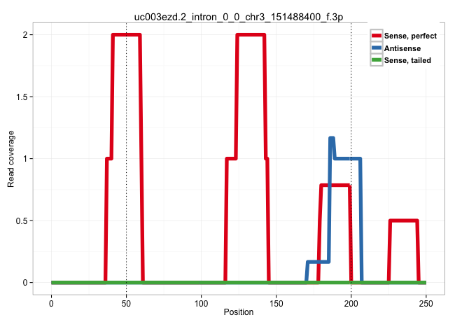 | AAATGTACGAATGGATGAAAAAGCTGACAATGCACATGTAAAAGGAACACTGGGAAGAATTCATGTTCTATAATTAAGATAAAATATTAGAAATATTTTCTCTAGAGTATATCAGTGAGGAACAAGGTGTACTAGTAGGTTTTCTCTTGAAAAAAAACACTCATCAATTCATTTGGCTGCCTTTTTTTTTTTAATTTCAGCTTTGTTTAATTATGACTTTCTGTCAAGATGAACAGCTGATAGACTTAAT .......................................................................................................................(((.(((((......((...(((((....)))))...)).....((((.....))))..))))).)))............................................................... .......................................................................................................................120.............................................................................200................................................ | Size | Perfect hit | Total Norm | Perfect Norm | SRR189776(GSM714636) cell line: HEK293clip variant: CLIPenzymatic . (cell line) | SRR189775(GSM714635) cell line: HEK293clip variant: CLIPenzymatic . (cell line) | SRR189778(GSM714638) cell line: HEK293clip variant: PAR-CLIPenzyma. (cell line) | SRR189777(GSM714637) cell line: HEK293clip variant: PAR-CLIPenzyma. (cell line) | SRR189779(GSM714639) cell line: HEK293clip variant: PAR-CLIPenzyma. (cell line) | SRR039623(GSM531986) HCV(+) HCC Tissue Sample. (liver) | SRR039622(GSM531985) HCV(+) Adjacent Tissue Sample. (liver) | SRR189781(GSM714641) cell line: HEK293clip variant: PAR-CLIPenzyma. (cell line) | SRR189780(GSM714640) cell line: HEK293clip variant: PAR-CLIPenzyma. (cell line) | SRR330912(SRX091750) tissue: normal skindisease state: normal. (skin) | SRR330908(SRX091746) tissue: normal skindisease state: normal. (skin) | SRR039620(GSM531983) HBV(+) Adjacent Tissue Sample 2. (liver) | GSM450604(GSM450604) miRNA sequencing raw reads from post-mortem s. (brain) | SRR040036(GSM532921) G243N. (cervix) | SRR330896(SRX091734) tissue: skin psoriatic uninvolveddisease stat. (skin) | SRR330870(SRX091708) tissue: skin psoriatic involveddisease state:. (skin) | SRR040012(GSM532897) G648N. (cervix) | SRR039624(GSM531987) HBV(-) HCV(-) Adjacent Tissue Sample. (liver) | SRR037937(GSM510475) 293cand2. (cell line) |