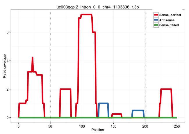 | CAGGAAGAACGTGTCAGAGACAGTGGACAGGGAAGCGTTTCTCACCCCTTAACTCACAGCAGCCCCACCGGGCGGACACAACCATCAACCCAGCCGCAGGTGTAGAAACTGAGGCACACAGACGCGATGTGGCTGCCCGTCTGGTAACTAGCAGCCGGGATTGGAGCCTGGGTCCAAGCTGCCTGTTCTTTCTTTCCTAGGCCGTGCGCCGTTTCTCCTGGAATAACTGGAGGTGATTTCATGGAACCTG .............................................................((((....))))((((.((.(((......((((((((.((((.....(((.......)))))))..))))))))((((.(((........))).))))..)))....)).))))........................................................................... ............................................................61...................................................................................................................178...................................................................... | Size | Perfect hit | Total Norm | Perfect Norm | SRR039619(GSM531982) HBV(+) HCC Tissue Sample 1. (liver) | SRR039616(GSM531979) HBV(+) Distal Tissue Sample 1. (liver) | SRR037937(GSM510475) 293cand2. (cell line) | SRR039617(GSM531980) HBV(+) Adjacent Tissue Sample 1. (liver) | SRR207116(GSM721078) Nuclear RNA. (cell line) | SRR039618(GSM531981) HBV(+) Side Tissue Sample 1. (liver) | SRR060984(GSM569188) Human plasma cell [09-001]. (cell line) | TAX577740(Rovira) total RNA. (breast) | TAX577453(Rovira) total RNA. (breast) | SRR039623(GSM531986) HCV(+) HCC Tissue Sample. (liver) | SRR189784 | TAX577580(Rovira) total RNA. (breast) | SRR189782 | SRR039622(GSM531985) HCV(+) Adjacent Tissue Sample. (liver) | SRR444061(SRX128909) Sample 19cDNABarcode: AF-PP-341: ACG CTC TTC . (skin) | SRR343334 | SRR330872(SRX091710) tissue: skin psoriatic involveddisease state:. (skin) | SRR029054(GSM402329) MCF7_smallRNAseq. (cell line) | SRR037936(GSM510474) 293cand1. (cell line) | SRR015359(GSM380324) Germinal Center B cell (GC136). (B cell) | SRR060983(GSM569187) Human pre-germinal center B cell [09-001]. (cell line) | SRR553572(SRX182778) source: Frontal Cortex. (Frontal Cortex) | SRR189787 | SRR191468(GSM715578) 116genomic small RNA (size selected RNA from . (breast) | GSM450609(GSM450609) miRNA sequencing raw reads from post-mortem s. (brain) | SRR191493(GSM715603) 155genomic small RNA (size selected RNA from . (breast) | DRR000558(DRX000316) "THP-1 whole cell RNA, after 3 day treatment . (cell line) | GSM416733(GSM416733) HEK293. (cell line) | SRR037876(GSM522374) fibroblasts_cell_culture. (fibroblast) | SRR015364(GSM380329) Plasma B cells (PC44). (B cell) | SRR037931(GSM510469) 293GFP. (cell line) | SRR033727(GSM497072) HIV-positive DL (HIV412). (B cell) | SRR189779(GSM714639) cell line: HEK293clip variant: PAR-CLIPenzyma. (cell line) | SRR330919(SRX091757) tissue: normal skindisease state: normal. (skin) | SRR191547(GSM715657) 155genomic small RNA (size selected RNA from . (breast) | SRR037940(GSM510478) 293cand5_rep2. (cell line) | SRR330902(SRX091740) tissue: skin psoriatic uninvolveddisease stat. (skin) | GSM532879(GSM532879) G659N. (cervix) | GSM450599(GSM450599) miRNA sequencing raw reads from post-mortem s. (brain) | GSM532886(GSM532886) G850T. (cervix) | GSM450597(GSM450597) miRNA sequencing raw reads from post-mortem s. (brain) | SRR040035(GSM532920) G001T. (cervix) | SRR387909(GSM843861) specific-host: Homo sapienshost cell line: Su. (cell line) | TAX577743(Rovira) total RNA. (breast) | SRR191479(GSM715589) 31genomic small RNA (size selected RNA from t. (breast) | SRR039620(GSM531983) HBV(+) Adjacent Tissue Sample 2. (liver) | SRR330923(SRX091761) tissue: normal skindisease state: normal. (skin) | SRR189785 | SRR330863(SRX091701) tissue: skin psoriatic involveddisease state:. (skin) | SRR330920(SRX091758) tissue: normal skindisease state: normal. (skin) |