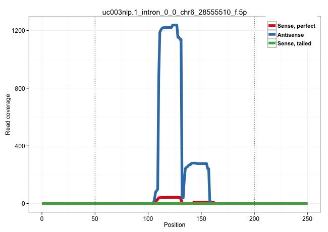 | GGGCCACTTTCACCTTTCCCTTTCACCCTAAATCAGACTTAAAAAGAAATGTAAGAGTTAGTCCATTGTTTCCATTTTACGGATTAGAAAACCAAGACCACCGAGAATGAGCCTCAGTTGTTTAGTCACGGAGCACAGAGCCGTGACTAAACAACTGTGGGAAACTGGTCCCAGAAATCTAACAAAATCTGGACGGCTGATCAGCGCCTAGCGAATCACTGGAGTGGAGTAACCAGAACATTCTTTTCAA ...............................................................................................................((.(((((((((((((((((.........))))))))))))))))).)).......................................................................................... .......................................................................................................104.............................................................168................................................................................ | Size | Perfect hit | Total Norm | Perfect Norm | SRR326280(GSM769510) total cell content of unperturbed cells was s. (cell line) | SRR326279(GSM769509) cytoplasmic fraction was isolated using PARIS. (cell line) | SRR326282(GSM769512) "Dicer mRNA was knocked down using siDicer, t. (cell line) | SRR326281(GSM769511) "Dicer mRNA was knocked down using siDicer, c. (cell line) | SRR189782 | SRR314796(SRX084354) "Total RNA, fractionated (15-30nt)". (cell line) | GSM450604(GSM450604) miRNA sequencing raw reads from post-mortem s. (brain) | GSM450610(GSM450610) miRNA sequencing raw reads from post-mortem s. (brain) | GSM450609(GSM450609) miRNA sequencing raw reads from post-mortem s. (brain) | GSM450602(GSM450602) miRNA sequencing raw reads from post-mortem s. (brain) | SRR095854(SRX039177) "miRNA were isolated from FirstChoice Human B. (brain) | GSM450600(GSM450600) miRNA sequencing raw reads from post-mortem s. (brain) | RoviraIPAgo2(Rovira) total RNA. (ago2 breast) | GSM450606(GSM450606) miRNA sequencing raw reads from post-mortem s. (brain) | SRR189784 | GSM450601(GSM450601) miRNA sequencing raw reads from post-mortem s. (brain) | GSM450605(GSM450605) miRNA sequencing raw reads from post-mortem s. (brain) | SRR189786 | SRR039625(GSM531988) HBV(-) HCV(-) HCC Tissue Sample. (liver) | SRR553573(SRX182779) source: Cerebellum. (Cerebellum) | SRR553572(SRX182778) source: Frontal Cortex. (Frontal Cortex) | SRR189787 | GSM450608(GSM450608) miRNA sequencing raw reads from post-mortem s. (brain) | SRR207113(GSM721075) IP against AGO 1 & 2. (ago1/2 cell line) | SRR037942(GSM510480) 293DroshaTN_cand5. (cell line) | GSM450603(GSM450603) miRNA sequencing raw reads from post-mortem s. (brain) | SRR037940(GSM510478) 293cand5_rep2. (cell line) | SRR207114(GSM721076) "IP against AGO 1 & 2, RRP40 knockdown". (ago1/2 RRP40 cell line) | SRR189783 | GSM450598(GSM450598) miRNA sequencing raw reads from post-mortem s. (brain) | SRR037939(GSM510477) 293cand5_rep1. (cell line) | GSM450599(GSM450599) miRNA sequencing raw reads from post-mortem s. (brain) | SRR029054(GSM402329) MCF7_smallRNAseq. (cell line) | GSM450607(GSM450607) miRNA sequencing raw reads from post-mortem s. (brain) | SRR037937(GSM510475) 293cand2. (cell line) | SRR037941(GSM510479) 293DroshaTN. (cell line) | GSM1105750AGO3(GSM1105750) small RNA sequencing data. (ago3 hela) | SRR033722(GSM497067) KMS12 cell line (KMS12). (B cell) | SRR189785 | GSM339994(GSM339994) hues6. (cell line) | SRR207115(GSM721077) XRN1&2 knockdown. (XRN1/XRN2 cell line) | SRR037933(GSM510471) 293cand4_rep2. (cell line) | SRR037932(GSM510470) 293cand4_rep1. (cell line) | GSM339996(GSM339996) hues6Neuron. (cell line) | GSM450597(GSM450597) miRNA sequencing raw reads from post-mortem s. (brain) | SRR033719(GSM497064) 6hr Activated B cell line (ABC158). (B cell) | SRR207112(GSM721074) RRP40 knockdown. (RRP40 cell line) | SRR037943(GSM510481) 293DcrTN. (cell line) | GSM416733(GSM416733) HEK293. (cell line) | SRR037931(GSM510469) 293GFP. (cell line) | SRR033720(GSM497065) EBV activated B cell line (EBV159). (B cell) | SRR363673(GSM830250) cell type: human foreskin fibroblasts (HFF)tr. (fibroblast) | SRR029131(GSM416760) MCF7. (cell line) | SRR029125(GSM416754) U2OS. (cell line) | SRR039621(GSM531984) HBV(+) HCC Tissue Sample 2. (liver) | SRR107297(GSM677704) 18-30nt fraction of small RNA. (cell line) | SRR207111(GSM721073) Whole cell RNA. (cell line) | GSM1105753INPUT(GSM1105753) small RNA sequencing data. (hela) | SRR029128(GSM416757) H520. (cell line) | SRR039612(GSM531975) Human Normal Liver Tissue Sample 2. (liver) | SRR029126(GSM416755) 143B. (cell line) | SRR107296(GSM677703) 18-30nt fraction of small RNA. (cell line) | SRR060168(GSM565978) 5-8F_nucleus. (cell line) | SRR037934(GSM510472) 293cand4_rep3. (cell line) | SRR038863(GSM458546) MM603. (cell line) | SRR342895(SRX096791) small RNA seq of Left atrial tissue. (heart) | SRR207116(GSM721078) Nuclear RNA. (cell line) | SRR039619(GSM531982) HBV(+) HCC Tissue Sample 1. (liver) | SRR330920(SRX091758) tissue: normal skindisease state: normal. (skin) | SRR037944(GSM510482) 293DcrTN_cand5. (cell line) | GSM1105748AGO1(GSM1105748) small RNA sequencing data. (ago1 hela) | SRR037936(GSM510474) 293cand1. (cell line) | SRR015359(GSM380324) Germinal Center B cell (GC136). (B cell) | SRR330881(SRX091719) tissue: skin psoriatic uninvolveddisease stat. (skin) | SRR039615(GSM531978) Severe Chronic Hepatitis B Liver Tissue. (liver) | SRR553575(SRX182781) source: Kidney. (Kidney) | SRR191599(GSM715709) 89genomic small RNA (size selected RNA from t. (breast) | SRR033717(GSM497062) Mentle Cell Lymphoma (MCL112). (B cell) | SRR342901(SRX096797) small RNA seq of Left atrial tissue. (heart) | SRR039192(GSM494811) K562 cell line is derived from a CML patient . (cell line) | SRR363675(GSM830252) cell type: human foreskin fibroblasts (HFF)tr. (fibroblast) | SRR029127(GSM416756) A549. (cell line) | TAX577590(Rovira) total RNA. (breast) | SRR553576(SRX182782) source: Testis. (testes) | TAX577579(Rovira) total RNA. (breast) | SRR039613(GSM531976) Human Normal Liver Tissue Sample 3. (liver) | SRR060169(GSM565979) 5-8F_cytoplasm. (cell line) | SRR330915(SRX091753) tissue: normal skindisease state: normal. (skin)