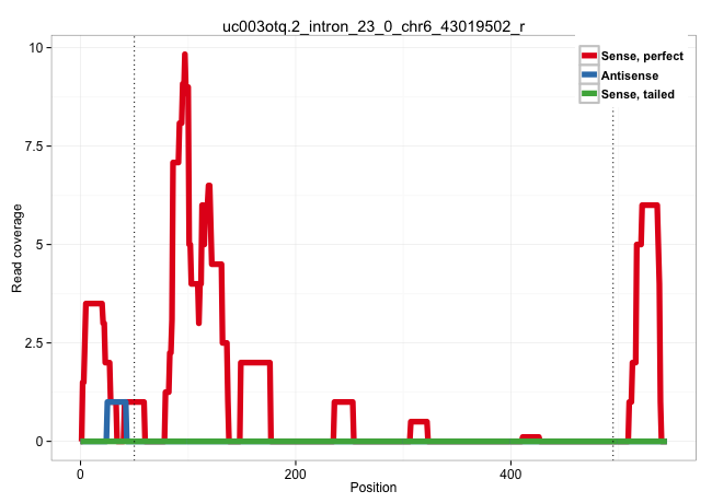 | TCGCTGGAGTGCAGGCCGGATGATACAAGCCCTGTCCTCCCATGACGCTGGTGAGGGGCAGTGTGGGGAGGAAGGGAAAGCAGGAGAAGGGCTGGGTCGGCTCAGGGACTCACAGGACACTGTGGCAGGAGCCTCTGATCTCATCAGTACGTAAATGATTCTGTTGCCCTTCTCTTAGAGTTGGAAGAAAAGGAGGTGGGCATGGGAGTGAGGGTGGGGGTTATCTGCCAAAAGAGGAAAGACTATCTTCAAGAACCTCATATTAATTAGTTGCTTTTTATGCAAAGGAAGAATTTAGAGTTTAGACTATTGTAGATCGTGTTTATGTGCGTGTGTGTGTGTATGTGTATAAGTTAGCAAATTTTAGCTTTTGAAGCAAATCAGTTCTTTCTCATTGTGTGGTGGCAAAAGGATTGGATTGAAAGAGTAGAGGGTCTAAGATTTCTAGGAAGGGTGAGATTAGGGAGAAGTTACCAACTGGGGTGTGGGTTACAGGGACCCGGACTCAGATCCTTCTGTCACTGAGCCAACAAGAAGCCATTGAG ..........................................................................................((.((((((((((......((((((....))))))...))))).(((((...))))).........))))).))............................................................................................................................................................................................................................................................................................................................................................................................. .................................................................................82................................................................................164........................................................................................................................................................................................................................................................................................................................................................................................... | Size | Perfect hit | Total Norm | Perfect Norm | SRR326281(GSM769511) "Dicer mRNA was knocked down using siDicer, c. (cell line) | SRR326279(GSM769509) cytoplasmic fraction was isolated using PARIS. (cell line) | RoviraIPAgo2(Rovira) total RNA. (ago2 breast) | SRR189782 | SRR553572(SRX182778) source: Frontal Cortex. (Frontal Cortex) | SRR039192(GSM494811) K562 cell line is derived from a CML patient . (cell line) | SRR189779(GSM714639) cell line: HEK293clip variant: PAR-CLIPenzyma. (cell line) | SRR189780(GSM714640) cell line: HEK293clip variant: PAR-CLIPenzyma. (cell line) | SRR033715(GSM497060) Mantle Cell Lymphoma (Mino122). (B cell) | SRR039623(GSM531986) HCV(+) HCC Tissue Sample. (liver) | SRR207113(GSM721075) IP against AGO 1 & 2. (ago1/2 cell line) | SRR037937(GSM510475) 293cand2. (cell line) | SRR342899(SRX096795) small RNA seq of Left atrial tissue. (heart) | SRR191451(GSM715561) 177genomic small RNA (size selected RNA from . (breast) | SRR189784 | GSM450606(GSM450606) miRNA sequencing raw reads from post-mortem s. (brain) | SRR330905(SRX091743) tissue: normal skindisease state: normal. (skin) | SRR029054(GSM402329) MCF7_smallRNAseq. (cell line) | SRR107297(GSM677704) 18-30nt fraction of small RNA. (cell line) | SRR040019(GSM532904) G701T. (cervix) | SRR342894(SRX096790) small RNA seq of Right atrial tissue. (heart) | SRR330906(SRX091744) tissue: normal skindisease state: normal. (skin) | SRR039190(GSM494809) PBMCs were isolated by ficoll gradient from t. (blood) | SRR330863(SRX091701) tissue: skin psoriatic involveddisease state:. (skin) | GSM532880(GSM532880) G659T. (cervix) | SRR033710(GSM497055) GCB DLBCL (GCB385). (B cell) | SRR094131(GSM651907) small RNA(18-35nt)small RNA deep sequencing o. (uterus) | TAX577740(Rovira) total RNA. (breast) | SRR191593(GSM715703) 62genomic small RNA (size selected RNA from t. (breast) | SRR330911(SRX091749) tissue: normal skindisease state: normal. (skin) | SRR330904(SRX091742) tissue: normal skindisease state: normal. (skin) | SRR039617(GSM531980) HBV(+) Adjacent Tissue Sample 1. (liver) | SRR040008(GSM532893) G727N. (cervix) | SRR033727(GSM497072) HIV-positive DL (HIV412). (B cell) | SRR330896(SRX091734) tissue: skin psoriatic uninvolveddisease stat. (skin) | GSM450610(GSM450610) miRNA sequencing raw reads from post-mortem s. (brain) | SRR330919(SRX091757) tissue: normal skindisease state: normal. (skin) | SRR330901(SRX091739) tissue: skin psoriatic uninvolveddisease stat. (skin) | SRR040017(GSM532902) G645T. (cervix) | SRR207115(GSM721077) XRN1&2 knockdown. (XRN1/XRN2 cell line) | TAX577589(Rovira) total RNA. (breast) | SRR033728(GSM497073) MALT (MALT413). (B cell) | TAX577738(Rovira) total RNA. (breast) | GSM450605(GSM450605) miRNA sequencing raw reads from post-mortem s. (brain) | SRR330916(SRX091754) tissue: normal skindisease state: normal. (skin) | SRR330886(SRX091724) tissue: skin psoriatic uninvolveddisease stat. (skin) | SRR189781(GSM714641) cell line: HEK293clip variant: PAR-CLIPenzyma. (cell line) | SRR038852(GSM458535) QF1160MB. (cell line) | SRR015362(GSM380327) NaÌøve B Cell (Naive138). (B cell) | SRR390724(GSM850203) small rna immunoprecipitated. (cell line) | SRR444042(SRX128890) Sample 3cDNABarcode: AF-PP-335: ACG CTC TTC C. (skin) | SRR207112(GSM721074) RRP40 knockdown. (RRP40 cell line) | SRR330898(SRX091736) tissue: skin psoriatic uninvolveddisease stat. (skin) | SRR060982(GSM569186) Human centrocyte [09-001]. (cell line) | SRR033726(GSM497071) Mututated CLL (CLLM633). (B cell) | SRR330861(SRX091699) tissue: skin psoriatic involveddisease state:. (skin) | TAX577742(Rovira) total RNA. (breast) | SRR039635(GSM518472) THP1_nuc_sRNAs. (cell line) | SRR342900(SRX096796) small RNA seq of Right atrial tissue. (heart) | SRR553576(SRX182782) source: Testis. (testes) | SRR330877(SRX091715) tissue: skin psoriatic involveddisease state:. (skin) | GSM450599(GSM450599) miRNA sequencing raw reads from post-mortem s. (brain) | SRR387909(GSM843861) specific-host: Homo sapienshost cell line: Su. (cell line) | SRR330895(SRX091733) tissue: skin psoriatic uninvolveddisease stat. (skin) | SRR060981(GSM569185) Human centroblast [09-001]. (cell line) | GSM450603(GSM450603) miRNA sequencing raw reads from post-mortem s. (brain) | SRR330874(SRX091712) tissue: skin psoriatic involveddisease state:. (skin) |