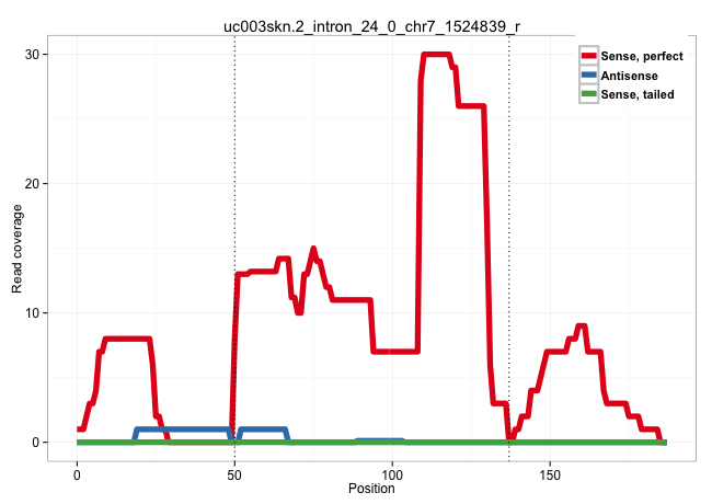 | TGCCTCTGTTCGACAGCGTCAGGAGCACCACAGCCCTGGCCCTGCAGCAGGTGAGGGCGCTGACCGGGGCCGCGGCAGGGAAAGATGAGAGGGCCGCAGCCCTGCCCTGTTGCCGCTCAGACCACCCTCCCCTCCAGGCAATCCACATGGAGACTGATCCCCAGACCATCAGCGCCTACCTGATCTA ....................................................(((((...((....((((.(((((((((.........(((((....))))).))))))))).))))....))))))).......................................................... ..................................................51....................................................................................137................................................ | Size | Perfect hit | Total Norm | Perfect Norm | SRR387910(GSM843862) antibody for ip: Ago2. (ago2 cell line) | DRR001485(DRX001039) "Hela long total cell fraction, LNA(+)". (hela) | SRR314796(SRX084354) "Total RNA, fractionated (15-30nt)". (cell line) | SRR029126(GSM416755) 143B. (cell line) | SRR189786 | SRR039622(GSM531985) HCV(+) Adjacent Tissue Sample. (liver) | SRR342901(SRX096797) small RNA seq of Left atrial tissue. (heart) | SRR189782 | SRR189779(GSM714639) cell line: HEK293clip variant: PAR-CLIPenzyma. (cell line) | DRR001486(DRX001040) "Hela long cytoplasmic cell fraction, LNA(+)". (hela) | SRR207115(GSM721077) XRN1&2 knockdown. (XRN1/XRN2 cell line) | SRR330902(SRX091740) tissue: skin psoriatic uninvolveddisease stat. (skin) | SRR342895(SRX096791) small RNA seq of Left atrial tissue. (heart) | SRR553573(SRX182779) source: Cerebellum. (Cerebellum) | SRR342899(SRX096795) small RNA seq of Left atrial tissue. (heart) | SRR207113(GSM721075) IP against AGO 1 & 2. (ago1/2 cell line) | SRR326279(GSM769509) cytoplasmic fraction was isolated using PARIS. (cell line) | SRR039623(GSM531986) HCV(+) HCC Tissue Sample. (liver) | SRR189784 | SRR107297(GSM677704) 18-30nt fraction of small RNA. (cell line) | SRR342894(SRX096790) small RNA seq of Right atrial tissue. (heart) | SRR094130(GSM651906) small RNA(18-35nt)small RNA deep sequencing o. (uterus) | SRR040029(GSM532914) G026T. (cervix) | SRR189783 | DRR000556(DRX000314) "THP-1 whole cell RNA, after 3 day treatment . (cell line) | DRR000558(DRX000316) "THP-1 whole cell RNA, after 3 day treatment . (cell line) | SRR040036(GSM532921) G243N. (cervix) | SRR343333(GSM796036) KSHV (HHV8). (cell line) | SRR189785 | SRR029128(GSM416757) H520. (cell line) | SRR330887(SRX091725) tissue: skin psoriatic uninvolveddisease stat. (skin) | SRR330884(SRX091722) tissue: skin psoriatic uninvolveddisease stat. (skin) | GSM450603(GSM450603) miRNA sequencing raw reads from post-mortem s. (brain) | SRR390723(GSM850202) total small RNA. (cell line) | SRR038860(GSM458543) MM426. (cell line) | SRR029132(GSM416761) MB-MDA231. (cell line) | SRR191632(GSM715742) 78genomic small RNA (size selected RNA from t. (breast) | SRR330916(SRX091754) tissue: normal skindisease state: normal. (skin) | SRR040027(GSM532912) G220T. (cervix) | SRR343334 |