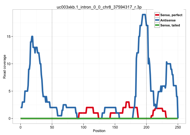 | CTCCGGCTACCGATCTGCAGTTGCGTCCTTTCCTGCCAGTGCCCTTCCCTCCCCGAGGTCACTCGCGCCCCTTCCCCGCCCCGTTCCGAGAGAGGGTCAAGCGCCCTGGTCTGGGGCTGCGGCTCCAATAGCCTCCGCTCGGTCCCCCTGCGGCTCGCAAGGAGAGGACGCGACAGAAAAGGGTTTCTGTCTCTCTCCAGGAGCGGGCCGGCTGAGGGAGAGAAGCTGCTGGGACTGAGGTTCCCGAAAG ..............................................................(((((.((.((((..((((((..((.....(((((.....)))))))..)))))).((((((.....)))).((((..((....)).))))...))..)))).)).)))))((((((....))))))............................................................. ........................................................57....................................................................................................................................191......................................................... | Size | Perfect hit | Total Norm | Perfect Norm | SRR189784 | SRR189785 | SRR029128(GSM416757) H520. (cell line) | SRR207110(GSM721072) Nuclear RNA. (cell line) | SRR207115(GSM721077) XRN1&2 knockdown. (XRN1/XRN2 cell line) | DRR000556(DRX000314) "THP-1 whole cell RNA, after 3 day treatment . (cell line) | DRR000557(DRX000315) "THP-1 whole cell RNA, after 3 day treatment . (cell line) | SRR330865(SRX091703) tissue: skin psoriatic involveddisease state:. (skin) | SRR039614(GSM531977) HBV-infected Liver Tissue. (liver) | SRR553572(SRX182778) source: Frontal Cortex. (Frontal Cortex) | SRR037943(GSM510481) 293DcrTN. (cell line) | SRR033721(GSM497066) Ly3 cell line (Ly3). (B cell) | SRR060982(GSM569186) Human centrocyte [09-001]. (cell line) | SRR330887(SRX091725) tissue: skin psoriatic uninvolveddisease stat. (skin) | SRR343335 | SRR060983(GSM569187) Human pre-germinal center B cell [09-001]. (cell line) | SRR342899(SRX096795) small RNA seq of Left atrial tissue. (heart) | SRR343334 | GSM450606(GSM450606) miRNA sequencing raw reads from post-mortem s. (brain) | SRR029054(GSM402329) MCF7_smallRNAseq. (cell line) | SRR330912(SRX091750) tissue: normal skindisease state: normal. (skin) | SRR033718(GSM497063) Multiple Myeloma (U266). (B cell) | DRR000555(DRX000313) "THP-1 whole cell RNA, no treatment". (cell line) | SRR330914(SRX091752) tissue: normal skindisease state: normal. (skin) | SRR444042(SRX128890) Sample 3cDNABarcode: AF-PP-335: ACG CTC TTC C. (skin) | SRR039620(GSM531983) HBV(+) Adjacent Tissue Sample 2. (liver) | TAX577746(Rovira) total RNA. (breast) | SRR330913(SRX091751) tissue: normal skindisease state: normal. (skin) | SRR094130(GSM651906) small RNA(18-35nt)small RNA deep sequencing o. (uterus) | SRR040037(GSM532922) G243T. (cervix) | GSM532880(GSM532880) G659T. (cervix) | SRR060985(GSM569189) Human naive B cell [09-001]. (cell line) | SRR342901(SRX096797) small RNA seq of Left atrial tissue. (heart) | SRR330864(SRX091702) tissue: skin psoriatic involveddisease state:. (skin) | SRR040036(GSM532921) G243N. (cervix) | SRR015364(GSM380329) Plasma B cells (PC44). (B cell) | SRR033727(GSM497072) HIV-positive DL (HIV412). (B cell) | TAX577739(Rovira) total RNA. (breast) | SRR330896(SRX091734) tissue: skin psoriatic uninvolveddisease stat. (skin) | SRR330902(SRX091740) tissue: skin psoriatic uninvolveddisease stat. (skin) | SRR107296(GSM677703) 18-30nt fraction of small RNA. (cell line) | GSM450602(GSM450602) miRNA sequencing raw reads from post-mortem s. (brain) | SRR039622(GSM531985) HCV(+) Adjacent Tissue Sample. (liver) | SRR040035(GSM532920) G001T. (cervix) | SRR330876(SRX091714) tissue: skin psoriatic involveddisease state:. (skin) | SRR342896(SRX096792) small RNA seq of Right atrial tissue. (heart) | SRR060981(GSM569185) Human centroblast [09-001]. (cell line) | SRR326281(GSM769511) "Dicer mRNA was knocked down using siDicer, c. (cell line) | SRR191394(GSM715504) 23genomic small RNA (size selected RNA from t. (breast) | SRR040008(GSM532893) G727N. (cervix) | SRR330903(SRX091741) tissue: skin psoriatic uninvolveddisease stat. (skin) | SRR444054(SRX128902) Sample 14cDNABarcode: AF-PP-342: ACG CTC TTC . (skin) | DRR000559(DRX000317) "THP-1 whole cell RNA, no treatment". (cell line) |