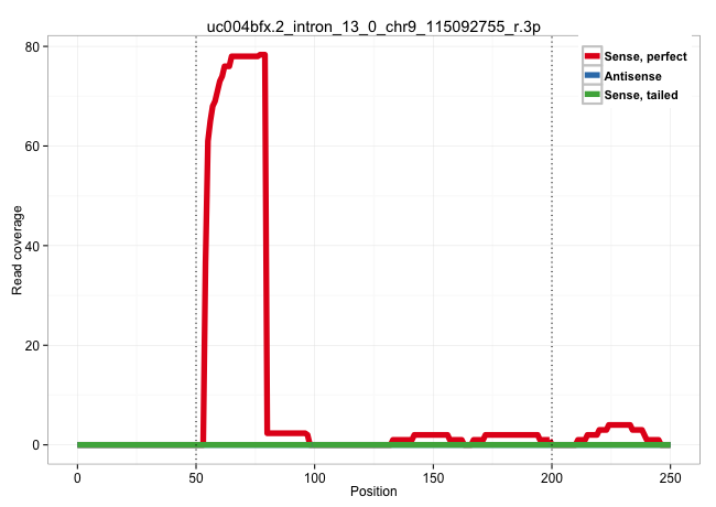 | AAGGATTTGCTTTTGCACTCTGCTGTTGCTAGACTGTCTCATCATTTTTCTTTGTATTAATATTTCACAACTCATCACATTCTTATTTTTATTATTTGTTATTATAATGCTTTTTCCCCTTTATTCTTACTATCTCTGTCTTTTAAAAACTTGTTCTCTAACTTTGTTTTCCATTTTCTCTTTTTACTTTTTCCATACAGTGTTGTTACAGATCTTATAACAGTCGGTTTAAAGGTAGGAATCTTTTACT ...................................................(((((.(((((..................................))))).)))))............................................................................................................................................... ..................................................51.............................................................................................................162...................................................................................... | Size | Perfect hit | Total Norm | Perfect Norm | SRR189775(GSM714635) cell line: HEK293clip variant: CLIPenzymatic . (cell line) | SRR189777(GSM714637) cell line: HEK293clip variant: PAR-CLIPenzyma. (cell line) | SRR189778(GSM714638) cell line: HEK293clip variant: PAR-CLIPenzyma. (cell line) | SRR189776(GSM714636) cell line: HEK293clip variant: CLIPenzymatic . (cell line) | SRR189781(GSM714641) cell line: HEK293clip variant: PAR-CLIPenzyma. (cell line) | SRR094131(GSM651907) small RNA(18-35nt)small RNA deep sequencing o. (uterus) | SRR207115(GSM721077) XRN1&2 knockdown. (XRN1/XRN2 cell line) | SRR189784 | SRR040037(GSM532922) G243T. (cervix) | SRR330904(SRX091742) tissue: normal skindisease state: normal. (skin) | SRR189785 | SRR189780(GSM714640) cell line: HEK293clip variant: PAR-CLIPenzyma. (cell line) | SRR330874(SRX091712) tissue: skin psoriatic involveddisease state:. (skin) | SRR330860(SRX091698) tissue: skin psoriatic involveddisease state:. (skin) | SRR039622(GSM531985) HCV(+) Adjacent Tissue Sample. (liver) | SRR039623(GSM531986) HCV(+) HCC Tissue Sample. (liver) | SRR191430(GSM715540) 167genomic small RNA (size selected RNA from . (breast) |