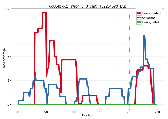 | ACAGGGTCAAAGGAGAGCACAACCATCGCAGTTGGAAGCCCATGGGGCAGGTGAGTCACTGTTGTCACTACTGGGGTCAATTTTTTTTTTTTTCTTTTTGAGACGGAGTCTCGCTCTTTCCCCAGGCTGGAGTGCAGTGGCGCGATCTCGGCTCACTGCAAGCTCCGCCTACCGGGTTCACGCCATTCTCCTGCCTCAGCCTCCCGAGTAGCTGGGACTACAGGCACCCGCAGCCACACCCGGCTAATTA .......................................................................(((((..............((((.....)))).((((.....))))..))))).((.(((((((((((((.((....)))).))))))..))))))).................................................................................. .......................................................................72..............................................................................................168................................................................................  | Size | Perfect hit | Total Norm | Perfect Norm | SRR189779(GSM714639) cell line: HEK293clip variant: PAR-CLIPenzyma. (cell line)  | SRR189780(GSM714640) cell line: HEK293clip variant: PAR-CLIPenzyma. (cell line)  | SRR387910(GSM843862) antibody for ip: Ago2. (ago2 cell line)  | GSM1105749AGO2(GSM1105749) small RNA sequencing data. (ago2 hela)  | SRR189776(GSM714636) cell line: HEK293clip variant: CLIPenzymatic . (cell line)  | DRR000561(DRX000319) Isolation of RNA following immunoprecipitatio. (ago2 cell line)  | DRR000557(DRX000315) "THP-1 whole cell RNA, after 3 day treatment . (cell line)  | SRR189778(GSM714638) cell line: HEK293clip variant: PAR-CLIPenzyma. (cell line)  | SRR207110(GSM721072) Nuclear RNA. (cell line)  | SRR189777(GSM714637) cell line: HEK293clip variant: PAR-CLIPenzyma. (cell line)  | DRR000558(DRX000316) "THP-1 whole cell RNA, after 3 day treatment . (cell line)  | DRR000556(DRX000314) "THP-1 whole cell RNA, after 3 day treatment . (cell line)  | SRR189781(GSM714641) cell line: HEK293clip variant: PAR-CLIPenzyma. (cell line)  | SRR207115(GSM721077) XRN1&2 knockdown. (XRN1/XRN2 cell line)  | DRR000555(DRX000313) "THP-1 whole cell RNA, no treatment". (cell line)  | SRR189775(GSM714635) cell line: HEK293clip variant: CLIPenzymatic . (cell line)  | SRR207116(GSM721078) Nuclear RNA. (cell line)  | DRR001488(DRX001042) "Hela short nuclear cell fraction, LNA(+)". (hela)  | SRR207114(GSM721076) "IP against AGO 1 & 2, RRP40 knockdown". (ago1/2 RRP40 cell line)  | RoviraIPAgo2(Rovira) total RNA. (ago2 breast)  | SRR553573(SRX182779) source: Cerebellum. (Cerebellum)  | SRR207112(GSM721074) RRP40 knockdown. (RRP40 cell line)  | SRR553572(SRX182778) source: Frontal Cortex. (Frontal Cortex)  | SRR189787 | SRR207113(GSM721075) IP against AGO 1 & 2. (ago1/2 cell line)  | SRR189782 | SRR033716(GSM497061) Mentle Cell Lymphoma (MCL114). (B cell)  | SRR330904(SRX091742) tissue: normal skindisease state: normal. (skin)  | SRR330887(SRX091725) tissue: skin psoriatic uninvolveddisease stat. (skin)  | SRR039636(GSM518473) THP1_cyto_sRNAs. (cell line)  | SRR390723(GSM850202) total small RNA. (cell line)  | SRR037940(GSM510478) 293cand5_rep2. (cell line)  | SRR189786 | SRR060168(GSM565978) 5-8F_nucleus. (cell line)  | SRR387909(GSM843861) specific-host: Homo sapienshost cell line: Su. (cell line)  | SRR039619(GSM531982) HBV(+) HCC Tissue Sample 1. (liver)  | SRR330891(SRX091729) tissue: skin psoriatic uninvolveddisease stat. (skin)  | SRR189784 | SRR039621(GSM531984) HBV(+) HCC Tissue Sample 2. (liver)  | SRR191567(GSM715677) 46genomic small RNA (size selected RNA from t. (breast)  | SRR330913(SRX091751) tissue: normal skindisease state: normal. (skin)  | SRR342894(SRX096790) small RNA seq of Right atrial tissue. (heart)  | SRR330906(SRX091744) tissue: normal skindisease state: normal. (skin)  | SRR207111(GSM721073) Whole cell RNA. (cell line)  | SRR330882(SRX091720) tissue: skin psoriatic uninvolveddisease stat. (skin)  | SRR040028(GSM532913) G026N. (cervix)  | SRR029129(GSM416758) SW480. (cell line)  | SRR330910(SRX091748) tissue: normal skindisease state: normal. (skin)  | SRR330890(SRX091728) tissue: skin psoriatic uninvolveddisease stat. (skin)  | SRR094131(GSM651907) small RNA(18-35nt)small RNA deep sequencing o. (uterus)  | SRR033724(GSM497069) L428 cell line (L428). (B cell)  | SRR207118(GSM721080) RRP40 knockdown. (RRP40 cell line)  | TAX577740(Rovira) total RNA. (breast)  | GSM956925PazD5(GSM956925) "cell line: HEK293 cell linepassages: 15-20ip. (cell line)  | SRR015364(GSM380329) Plasma B cells (PC44). (B cell)  | SRR060982(GSM569186) Human centrocyte [09-001]. (cell line)  | SRR040007(GSM532892) G601T. (cervix)  | SRR033727(GSM497072) HIV-positive DL (HIV412). (B cell)  | TAX577741(Rovira) total RNA. (breast)  | SRR330896(SRX091734) tissue: skin psoriatic uninvolveddisease stat. (skin)  | GSM1105751AGO4(GSM1105751) small RNA sequencing data. (ago4 hela)  | GSM956925F181A(GSM956925) "cell line: HEK293 cell linepassages: 15-20ip. (cell line)  | SRR330871(SRX091709) tissue: skin psoriatic involveddisease state:. (skin)  | SRR330901(SRX091739) tissue: skin psoriatic uninvolveddisease stat. (skin)  | SRR039193(GSM494812) HL60 cell line is derived from acute promyelo. (cell line)  | GSM956925Ago2D5(GSM956925) "cell line: HEK293 cell linepassages: 15-20ip. (ago2 cell line)  | SRR553576(SRX182782) source: Testis. (testes)  | GSM1105750AGO3(GSM1105750) small RNA sequencing data. (ago3 hela)  | SRR330877(SRX091715) tissue: skin psoriatic involveddisease state:. (skin)  | SRR330858(SRX091696) tissue: skin psoriatic involveddisease state:. (skin)  | GSM450602(GSM450602) miRNA sequencing raw reads from post-mortem s. (brain)  | SRR037934(GSM510472) 293cand4_rep3. (cell line)  | SRR039622(GSM531985) HCV(+) Adjacent Tissue Sample. (liver)  | SRR330893(SRX091731) tissue: skin psoriatic uninvolveddisease stat. (skin)  | SRR037944(GSM510482) 293DcrTN_cand5. (cell line)  | TAX577745(Rovira) total RNA. (breast)  | GSM450598(GSM450598) miRNA sequencing raw reads from post-mortem s. (brain)  | SRR037933(GSM510471) 293cand4_rep2. (cell line)  | SRR040015(GSM532900) G623T. (cervix)  | SRR029124(GSM416753) HeLa. (hela)  | DRR001489(DRX001043) "Hela short nuclea