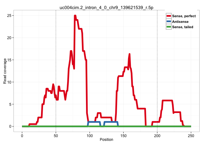 | GGCGCTGCCGGCCCTGCGCGGTTTCCAGCCAGGAAGCTTCGGGAAGCCTGGTGAGAGCTGAGTGCGCGAATTCGGATCTTAGAGAAAGGCACCCCGTTCACCCACGACCCTTCCGCTCCTGCCGCTGCTTCCCTGAGTCGCTCAGGCTGTGGGAAGATGTTTGTCGGCATCTTTGAAAAATTGATTTCTTATGCTGCGTCAGGTGGTTTCCTTGTCACTGTGGCTGCTCAGCGGGAGGCTGTTCTGGCGG ..............................................................................(((((((..((((...((((..(((((.........((....)).........((((((...))))))..)))))..))))..))))....))))))).......................................................................... .........................................................................74...............................................................................................................187............................................................. | Size | Perfect hit | Total Norm | Perfect Norm | SRR207115(GSM721077) XRN1&2 knockdown. (XRN1/XRN2 cell line) | SRR037940(GSM510478) 293cand5_rep2. (cell line) | SRR037939(GSM510477) 293cand5_rep1. (cell line) | SRR207116(GSM721078) Nuclear RNA. (cell line) | SRR039193(GSM494812) HL60 cell line is derived from acute promyelo. (cell line) | SRR330904(SRX091742) tissue: normal skindisease state: normal. (skin) | SRR189779(GSM714639) cell line: HEK293clip variant: PAR-CLIPenzyma. (cell line) | SRR033722(GSM497067) KMS12 cell line (KMS12). (B cell) | SRR015359(GSM380324) Germinal Center B cell (GC136). (B cell) | SRR033717(GSM497062) Mentle Cell Lymphoma (MCL112). (B cell) | DRR000556(DRX000314) "THP-1 whole cell RNA, after 3 day treatment . (cell line) | SRR189782 | SRR015447(SRR015447) nuclear small RNAs. (breast) | DRR001489(DRX001043) "Hela short nuclear cell fraction, control". (hela) | SRR015360(GSM380325) Plasma B cells (PC137). (B cell) | SRR039623(GSM531986) HCV(+) HCC Tissue Sample. (liver) | SRR326282(GSM769512) "Dicer mRNA was knocked down using siDicer, t. (cell line) | RoviraIPAgo2(Rovira) total RNA. (ago2 breast) | SRR342899(SRX096795) small RNA seq of Left atrial tissue. (heart) | SRR033712(GSM497057) Burkitt Lymphoma (BL510). (B cell) | SRR189784 | SRR060983(GSM569187) Human pre-germinal center B cell [09-001]. (cell line) | SRR039191(GSM494810) PBMCs were isolated by ficoll gradient from t. (blood) | SRR444042(SRX128890) Sample 3cDNABarcode: AF-PP-335: ACG CTC TTC C. (skin) | SRR039620(GSM531983) HBV(+) Adjacent Tissue Sample 2. (liver) | SRR039625(GSM531988) HBV(-) HCV(-) HCC Tissue Sample. (liver) | SRR330906(SRX091744) tissue: normal skindisease state: normal. (skin) | GSM359174(GSM359174) hela_5_1. (hela) | SRR326279(GSM769509) cytoplasmic fraction was isolated using PARIS. (cell line) | DRR000558(DRX000316) "THP-1 whole cell RNA, after 3 day treatment . (cell line) | SRR033721(GSM497066) Ly3 cell line (Ly3). (B cell) | SRR038859(GSM458542) MM386. (cell line) | SRR330868(SRX091706) tissue: skin psoriatic involveddisease state:. (skin) | SRR038857(GSM458540) D20. (cell line) | SRR330902(SRX091740) tissue: skin psoriatic uninvolveddisease stat. (skin) | SRR040035(GSM532920) G001T. (cervix) | SRR342896(SRX096792) small RNA seq of Right atrial tissue. (heart) | SRR060981(GSM569185) Human centroblast [09-001]. (cell line) | SRR038852(GSM458535) QF1160MB. (cell line) | SRR039621(GSM531984) HBV(+) HCC Tissue Sample 2. (liver) | SRR094129(GSM651905) small RNA(18-35nt)small RNA deep sequencing o. (uterus) | SRR207110(GSM721072) Nuclear RNA. (cell line) | SRR343333(GSM796036) KSHV (HHV8). (cell line) | GSM956925F181A(GSM956925) "cell line: HEK293 cell linepassages: 15-20ip. (cell line) | GSM956925Paz8D5(GSM956925) "cell line: HEK293 cell linepassages: 15-20ip. (cell line) | SRR330895(SRX091733) tissue: skin psoriatic uninvolveddisease stat. (skin) | SRR553572(SRX182778) source: Frontal Cortex. (Frontal Cortex) |