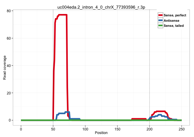| CACCTGTAATCTCAGCACTTCGGGAGGCTGTCGCGGGGAGGCCAGGAGTTTCCTGGGCAACATAGCGAGACCCTGTCTCTACAAAAACCCACAAAATTTATAAACCGTCTACAAATTAGTGGAAAGTTTTATTAAGACAAGTAGCCATAAATATTAAGCTGTCTTCATATGTTTAAGAAAAGATTGTTTTGTTCTTATAGGTTATGTGACTACAATTCTGGATGATGCAAAAATTTATTCGAGCCATGCT .....................................................((((.........(((((...)))))........))))..........((((..(((((......)))))..))))(((.(((((.(((...............)))))))).)))....((((((.(((....))).))))))..................................................... ..................................................51...................................................................................................................................................200................................................ | Size | Perfect hit | Total Norm | Perfect Norm | GSM956925Ago2D5(GSM956925) "cell line: HEK293 cell linepassages: 15-20ip. (ago2 cell line) | SRR189779(GSM714639) cell line: HEK293clip variant: PAR-CLIPenzyma. (cell line) | DRR000556(DRX000314) "THP-1 whole cell RNA, after 3 day treatment . (cell line) | DRR000557(DRX000315) "THP-1 whole cell RNA, after 3 day treatment . (cell line) | DRR000555(DRX000313) "THP-1 whole cell RNA, no treatment". (cell line) | GSM956925F181A(GSM956925) "cell line: HEK293 cell linepassages: 15-20ip. (cell line) | GSM956925Ago2PAZ(GSM956925) "cell line: HEK293 cell linepassages: 15-20ip. (ago2 cell line) | GSM956925PAZD5 | GSM956925AGO2Paz8(GSM956925) "cell line: HEK293 cell linepassages: 15-20ip. (ago2 cell line) | SRR189781(GSM714641) cell line: HEK293clip variant: PAR-CLIPenzyma. (cell line) | GSM956925Ago2(GSM956925) "cell line: HEK293 cell linepassages: 15-20ip. (ago2 cell line) | DRR000558(DRX000316) "THP-1 whole cell RNA, after 3 day treatment . (cell line) | SRR189782 | SRR189780(GSM714640) cell line: HEK293clip variant: PAR-CLIPenzyma. (cell line) | GSM956925Paz8D5(GSM956925) "cell line: HEK293 cell linepassages: 15-20ip. (cell line) | SRR039623(GSM531986) HCV(+) HCC Tissue Sample. (liver) | SRR342899(SRX096795) small RNA seq of Left atrial tissue. (heart) | DRR000561(DRX000319) Isolation of RNA following immunoprecipitatio. (ago2 cell line) | SRR330907(SRX091745) tissue: normal skindisease state: normal. (skin) | SRR039622(GSM531985) HCV(+) Adjacent Tissue Sample. (liver) | SRR390724(GSM850203) small rna immunoprecipitated. (cell line) | SRR330905(SRX091743) tissue: normal skindisease state: normal. (skin) | SRR040028(GSM532913) G026N. (cervix) | SRR094131(GSM651907) small RNA(18-35nt)small RNA deep sequencing o. (uterus) | GSM416733(GSM416733) HEK293. (cell line) | SRR037931(GSM510469) 293GFP. (cell line) | SRR040039(GSM532924) G531T. (cervix) | SRR015447(SRR015447) nuclear small RNAs. (breast) | SRR390723(GSM850202) total small RNA. (cell line) | DRR000559(DRX000317) "THP-1 whole cell RNA, no treatment". (cell line) | SRR207115(GSM721077) XRN1&2 knockdown. (XRN1/XRN2 cell line) | SRR330868(SRX091706) tissue: skin psoriatic involveddisease state:. (skin) | SRR191585(GSM715695) 196genomic small RNA (size selected RNA from . (breast) | GSM450605(GSM450605) miRNA sequencing raw reads from post-mortem s. (brain) | SRR330866(SRX091704) tissue: skin psoriatic involveddisease state:. (skin) | TAX577580(Rovira) total RNA. (breast) | SRR330890(SRX091728) tissue: skin psoriatic uninvolveddisease stat. (skin) | SRR342896(SRX096792) small RNA seq of Right atrial tissue. (heart) | SRR326281(GSM769511) "Dicer mRNA was knocked down using siDicer, c. (cell line) |