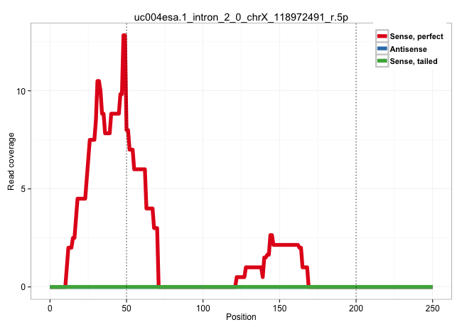 | TAGACAGAATTCCAGAAAGGGACAAATTAAAGGATGAACCAAAGATTAAGGTATAAGAATGTTGAAACTGACTGCATGTTGCTAAAAATTGCACGTATCTACTTCTTTAAATATGCATGCGTCTTGTGTTGGTGTAAATGAATTTTTTGTTTTGTTTTTGTTCTCTTTTGGGGGGAAGTGATCCAATAAAAATCTTTCCTGTAATAGTATTAGTTTTTAAATTTAAGATCATTTAAAAGGATAAAGTAGT ..................................................................................(((((((...(((.......(((((((.....((((.......)))).....)))).))).....)))...))))))).......................................................................................... .................................................................................82......................................................................................170.............................................................................. | Size | Perfect hit | Total Norm | Perfect Norm | SRR189782 | SRR189780(GSM714640) cell line: HEK293clip variant: PAR-CLIPenzyma. (cell line) | SRR189779(GSM714639) cell line: HEK293clip variant: PAR-CLIPenzyma. (cell line) | SRR037937(GSM510475) 293cand2. (cell line) | SRR039623(GSM531986) HCV(+) HCC Tissue Sample. (liver) | SRR189786 | SRR553576(SRX182782) source: Testis. (testes) | SRR037939(GSM510477) 293cand5_rep1. (cell line) | SRR189784 | SRR207111(GSM721073) Whole cell RNA. (cell line) | SRR330910(SRX091748) tissue: normal skindisease state: normal. (skin) | SRR553573(SRX182779) source: Cerebellum. (Cerebellum) | SRR330911(SRX091749) tissue: normal skindisease state: normal. (skin) | SRR033721(GSM497066) Ly3 cell line (Ly3). (B cell) | SRR191406(GSM715516) 67genomic small RNA (size selected RNA from t. (breast) | DRR001489(DRX001043) "Hela short nuclear cell fraction, control". (hela) | SRR039622(GSM531985) HCV(+) Adjacent Tissue Sample. (liver) | SRR330878(SRX091716) tissue: skin psoriatic involveddisease state:. (skin) | SRR342896(SRX096792) small RNA seq of Right atrial tissue. (heart) | SRR330859(SRX091697) tissue: skin psoriatic involveddisease state:. (skin) | SRR189777(GSM714637) cell line: HEK293clip variant: PAR-CLIPenzyma. (cell line) | SRR189781(GSM714641) cell line: HEK293clip variant: PAR-CLIPenzyma. (cell line) | SRR330880(SRX091718) tissue: skin psoriatic involveddisease state:. (skin) | SRR330908(SRX091746) tissue: normal skindisease state: normal. (skin) | SRR342901(SRX096797) small RNA seq of Left atrial tissue. (heart) | SRR040020(GSM532905) G699N_2. (cervix) | DRR000557(DRX000315) "THP-1 whole cell RNA, after 3 day treatment . (cell line) |