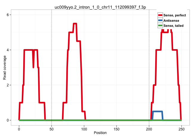 | ACAGGTAGAAGGGCTATACAATGAAAAGGATGCTTGAAGTACATGGTGCTTCCATGCTGAGGTCAATGATTATCTCTGGGATGAAGGCAAATGTGCAAATGTGGGCACAGTCTCTGCACATTGTACTGCCTTTAATAATTTGCCAGCCGTTTAATATGGAGAGCCTATCACAGTAATATTCACCTTTGTTTATTCTTTAGATTGACCCTGCTACGGGAATGGTTATGAATCTGGCTGATCTCAAAAAATA .....................................................................(((((.....))))).((((((((((((..(((....))).....))))))))....))))........................................................................................................................ .....................................................................70...........................................................131..................................................................................................................... | Size | Perfect hit | Total Norm | Perfect Norm | SRR094129(GSM651905) small RNA(18-35nt)small RNA deep sequencing o. (uterus) | SRR094130(GSM651906) small RNA(18-35nt)small RNA deep sequencing o. (uterus) | SRR094131(GSM651907) small RNA(18-35nt)small RNA deep sequencing o. (uterus) | SRR094132(GSM651908) small RNA(18-35nt)small RNA deep sequencing o. (uterus) | SRR039622(GSM531985) HCV(+) Adjacent Tissue Sample. (liver) | TAX577588(Rovira) total RNA. (breast) | SRR038854(GSM458537) MM653. (cell line) | TAX577580(Rovira) total RNA. (breast) | SRR039617(GSM531980) HBV(+) Adjacent Tissue Sample 1. (liver) | SRR039623(GSM531986) HCV(+) HCC Tissue Sample. (liver) | SRR107297(GSM677704) 18-30nt fraction of small RNA. (cell line) | TAX577740(Rovira) total RNA. (breast) | TAX577739(Rovira) total RNA. (breast) | TAX577741(Rovira) total RNA. (breast) | TAX577742(Rovira) total RNA. (breast) | SRR039616(GSM531979) HBV(+) Distal Tissue Sample 1. (liver) | SRR189784 | SRR037936(GSM510474) 293cand1. (cell line) | SRR039191(GSM494810) PBMCs were isolated by ficoll gradient from t. (blood) | DRR000555(DRX000313) "THP-1 whole cell RNA, no treatment". (cell line) | SRR039620(GSM531983) HBV(+) Adjacent Tissue Sample 2. (liver) | TAX577746(Rovira) total RNA. (breast) | SRR330906(SRX091744) tissue: normal skindisease state: normal. (skin) | SRR189787 | GSM1105753INPUT(GSM1105753) small RNA sequencing data. (hela) | SRR037876(GSM522374) fibroblasts_cell_culture. (fibroblast) | SRR039192(GSM494811) K562 cell line is derived from a CML patient . (cell line) | SRR033721(GSM497066) Ly3 cell line (Ly3). (B cell) | SRR330887(SRX091725) tissue: skin psoriatic uninvolveddisease stat. (skin) | SRR033727(GSM497072) HIV-positive DL (HIV412). (B cell) | SRR189779(GSM714639) cell line: HEK293clip variant: PAR-CLIPenzyma. (cell line) | TAX577590(Rovira) total RNA. (breast) | SRR553576(SRX182782) source: Testis. (testes) | TAX577579(Rovira) total RNA. (breast) | SRR189786 | SRR107296(GSM677703) 18-30nt fraction of small RNA. (cell line) | TAX577453(Rovira) total RNA. (breast) | SRR033723(GSM497068) L1236 cell line (L1236). (B cell) | GSM450597(GSM450597) miRNA sequencing raw reads from post-mortem s. (brain) | SRR040035(GSM532920) G001T. (cervix) | SRR037932(GSM510470) 293cand4_rep1. (cell line) | SRR330919(SRX091757) tissue: normal skindisease state: normal. (skin) |