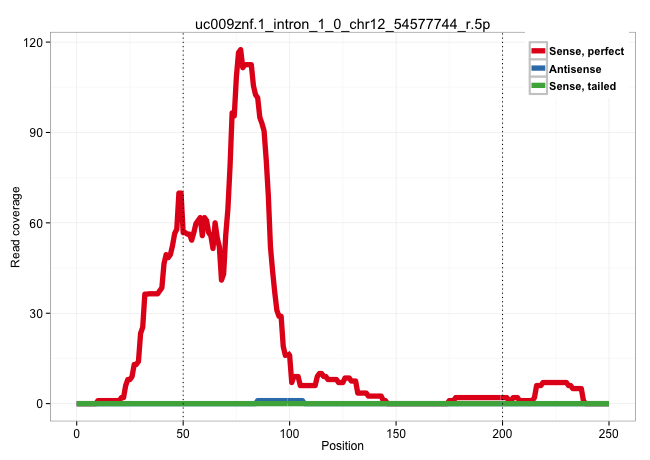 | GGTTTGGGGTGGGGGAAAGGAACCGGAAACGGGATGGGGAGCTGGACCAGGTGAGGAAGTAGGGGGCTGGGAATCCGGGACTGTGGGGGCAAGTTGACGGCTCCCAGGGTCGTCGGGGCTGAGCCGAGAGGGTGGTTAGAATTTCTATATTTTGGGGTCCCTCCCTCCGTATGGGGTAAGACTCAGTGCAGGGAGAGCCCAGCCTATGAAACCGCCTGGGAGGTCTGCAGGATCAAGGCTTTCCAGTCGG ...........................................................((.((..((((....))))..)).))..................................................................................................................................................................... ..................................................51..........................................95.......................................................................................................................................................... | Size | Perfect hit | Total Norm | Perfect Norm | SRR207110(GSM721072) Nuclear RNA. (cell line) | SRR207116(GSM721078) Nuclear RNA. (cell line) | SRR207115(GSM721077) XRN1&2 knockdown. (XRN1/XRN2 cell line) | SRR189779(GSM714639) cell line: HEK293clip variant: PAR-CLIPenzyma. (cell line) | SRR326280(GSM769510) total cell content of unperturbed cells was s. (cell line) | SRR033729(GSM497074) splenic MZL (Splenic414). (B cell) | SRR033727(GSM497072) HIV-positive DL (HIV412). (B cell) | DRR001489(DRX001043) "Hela short nuclear cell fraction, control". (hela) | DRR001488(DRX001042) "Hela short nuclear cell fraction, LNA(+)". (hela) | SRR033712(GSM497057) Burkitt Lymphoma (BL510). (B cell) | SRR189780(GSM714640) cell line: HEK293clip variant: PAR-CLIPenzyma. (cell line) | SRR033728(GSM497073) MALT (MALT413). (B cell) | SRR330878(SRX091716) tissue: skin psoriatic involveddisease state:. (skin) | SRR387909(GSM843861) specific-host: Homo sapienshost cell line: Su. (cell line) | DRR000557(DRX000315) "THP-1 whole cell RNA, after 3 day treatment . (cell line) | SRR207112(GSM721074) RRP40 knockdown. (RRP40 cell line) | DRR000556(DRX000314) "THP-1 whole cell RNA, after 3 day treatment . (cell line) | DRR000558(DRX000316) "THP-1 whole cell RNA, after 3 day treatment . (cell line) | SRR330901(SRX091739) tissue: skin psoriatic uninvolveddisease stat. (skin) | SRR039635(GSM518472) THP1_nuc_sRNAs. (cell line) | GSM339996(GSM339996) hues6Neuron. (cell line) | SRR039613(GSM531976) Human Normal Liver Tissue Sample 3. (liver) | SRR326282(GSM769512) "Dicer mRNA was knocked down using siDicer, t. (cell line) | SRR033730(GSM497075) Lymphoblastic (ALL411). (B cell) | SRR553573(SRX182779) source: Cerebellum. (Cerebellum) | SRR039616(GSM531979) HBV(+) Distal Tissue Sample 1. (liver) | TAX577580(Rovira) total RNA. (breast) | SRR033722(GSM497067) KMS12 cell line (KMS12). (B cell) | SRR039615(GSM531978) Severe Chronic Hepatitis B Liver Tissue. (liver) | SRR094132(GSM651908) small RNA(18-35nt)small RNA deep sequencing o. (uterus) | GSM339994(GSM339994) hues6. (cell line) | SRR039619(GSM531982) HBV(+) HCC Tissue Sample 1. (liver) | SRR033719(GSM497064) 6hr Activated B cell line (ABC158). (B cell) | SRR029054(GSM402329) MCF7_smallRNAseq. (cell line) | SRR094129(GSM651905) small RNA(18-35nt)small RNA deep sequencing o. (uterus) | SRR015359(GSM380324) Germinal Center B cell (GC136). (B cell) | SRR039614(GSM531977) HBV-infected Liver Tissue. (liver) | SRR039625(GSM531988) HBV(-) HCV(-) HCC Tissue Sample. (liver) | SRR207113(GSM721075) IP against AGO 1 & 2. (ago1/2 cell line) | GSM339995(GSM339995) hues6NP. (cell line) | SRR033710(GSM497055) GCB DLBCL (GCB385). (B cell) | SRR330897(SRX091735) tissue: skin psoriatic uninvolveddisease stat. (skin) | SRR040031(GSM532916) G013T. (cervix) | SRR033726(GSM497071) Mututated CLL (CLLM633). (B cell) | SRR040007(GSM532892) G601T. (cervix) | SRR040039(GSM532924) G531T. (cervix) | SRR330917(SRX091755) tissue: normal skindisease state: normal. (skin) | TAX577742(Rovira) total RNA. (breast) | SRR033720(GSM497065) EBV activated B cell line (EBV159). (B cell) | SRR033713(GSM497058) Burkitt Lymphoma (BL115). (B cell) | SRR330902(SRX091740) tissue: skin psoriatic uninvolveddisease stat. (skin) | GSM450602(GSM450602) miRNA sequencing raw reads from post-mortem s. (brain) | TAX577744(Rovira) total RNA. (breast) | SRR039623(GSM531986) HCV(+) HCC Tissue Sample. (liver) | SRR038852(GSM458535) QF1160MB. (cell line) | SRR553572(SRX182778) source: Frontal Cortex. (Frontal Cortex) | SRR553575(SRX182781) source: Kidney. (Kidney) | DRR000555(DRX000313) "THP-1 whole cell RNA, no treatment". (cell line) | SRR191605(GSM715715) 76genomic small RNA (size selected RNA from t. (breast) | SRR039621(GSM531984) HBV(+) HCC Tissue Sample 2. (liver) | SRR330905(SRX091743) tissue: normal skindisease state: normal. (skin) | SRR330900(SRX091738) tissue: skin psoriatic uninvolveddisease stat. (skin) | TAX577588(Rovira) total RNA. (breast) | TAX577746(Rovira) total RNA. (breast) | SRR040019(GSM532904) G701T. (cervix) | GSM450607(GSM450607) miRNA sequencing raw reads from post-mortem s. (brain) | SRR330906(SRX091744) tissue: normal skindisease state: normal. (skin) | SRR191633(GSM715743) 85genomic small RNA (size selected RNA from t. (breast) | SRR039190(GSM494809) PBMCs were isolated by ficoll gradient from t. (blood) | GSM450604(GSM450604) miRNA sequencing raw reads from post-mortem s. (brain) | GSM450601(GSM450601) miRNA sequencing raw reads from post-mortem s. (brain) | SRR343332(GSM796035) "KSHV (HHV8), EBV (HHV-4)". (cell line) | SRR040028(GSM532913) G026N. (cervix) | SRR330922(SRX091760) tissue: normal skindisease state: normal. (skin) | SRR330890(SRX091728) tissue: skin psoriatic uninvolveddisease stat. (skin) | SRR330898(SRX091736) tissue: skin psoriatic uninvolveddisease stat. (skin) | SRR330903(SRX091741) tissue: skin psoriatic uninvolveddisease stat. (skin) | SRR191630(GSM715740) 70genomic small RNA (size selected RNA from t. (breast) | SRR191405(GSM715515) 55genomic small RNA (size selected RNA from t. (breast) | SRR330864(SRX091702) tissue: skin psoriatic involveddisease state:. (skin) | GSM532874(GSM532874) G699T. (cervix) | SRR343333(GSM796036) KSHV (HHV8). (cell li
