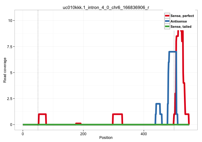 | GCGTGGCCCTGGTCCGTCTCCCCAACGAGTTGCTGCACCCAGGACAGCAGGTGCCTGATCTGTGCTGCTCACTGGTGCTGCTCCAACACCTCACAGTGCATGGGGGTGGGCACACAGGGAGTAGTTATTGAATGAATATCATCTTTAAAATGCTTTTCATTCCTATCTCCAGAGCTCACCACATTTCCTTTTATGTGACAGCTCCAGTAAGCTGCGGCCTCAACTTGGAGAGGTGCTCACTTATTTACTCAAATATTCATTCACTGTAAAAGCAGGTGACACCAGGAGCTCAGAAGTGAGTGACCACCACAGGAGAATGGGAGAAGGTGGGGGGCCCTCTGGAGAAGACAGCAGCTGTTGACACTGTTGGCCTGTTGCCTGCTTGCAGGACCTGCTAGGAAGACAGTTCCCAAATGCACCCTCCCCTCCAAATGCACCTGCCCTCCCTCTCCTGCTCAGTCCTCAGCCCCCAAGTAGGCACTGTGCCTTCTGTCTTGCAGGTTGTTCATCGAGACCTGAAGCCGAGTAACATCCTGTACAGGGATGAGTC ..........................................................((...(((((((.(((((((((((((..(((......)))....))))))).))).))).)))))))....))................................................................................................................................................................................................................................................................................................................................................................................................................................... ..................................................51.................................................................................................150.............................................................................................................................................................................................................................................................................................................................................................................................................. | Size | Perfect hit | Total Norm | Perfect Norm | SRR029125(GSM416754) U2OS. (cell line) | SRR029129(GSM416758) SW480. (cell line) | SRR553576(SRX182782) source: Testis. (testes) | SRR029126(GSM416755) 143B. (cell line) | SRR189784 | SRR029128(GSM416757) H520. (cell line) | SRR189780(GSM714640) cell line: HEK293clip variant: PAR-CLIPenzyma. (cell line) | SRR029132(GSM416761) MB-MDA231. (cell line) | SRR330916(SRX091754) tissue: normal skindisease state: normal. (skin) | SRR553572(SRX182778) source: Frontal Cortex. (Frontal Cortex) | SRR029130(GSM416759) DLD2. (cell line) | SRR037939(GSM510477) 293cand5_rep1. (cell line) | SRR342899(SRX096795) small RNA seq of Left atrial tissue. (heart) | SRR342894(SRX096790) small RNA seq of Right atrial tissue. (heart) | SRR342896(SRX096792) small RNA seq of Right atrial tissue. (heart) | SRR039616(GSM531979) HBV(+) Distal Tissue Sample 1. (liver) | SRR330912(SRX091750) tissue: normal skindisease state: normal. (skin) | DRR000555(DRX000313) "THP-1 whole cell RNA, no treatment". (cell line) | GSM532876(GSM532876) G547T. (cervix) | SRR040029(GSM532914) G026T. (cervix) | SRR191590(GSM715700) 48genomic small RNA (size selected RNA from t. (breast) | SRR330890(SRX091728) tissue: skin psoriatic uninvolveddisease stat. (skin) | SRR326279(GSM769509) cytoplasmic fraction was isolated using PARIS. (cell line) | SRR189782 | SRR330904(SRX091742) tissue: normal skindisease state: normal. (skin) | SRR387910(GSM843862) antibody for ip: Ago2. (ago2 cell line) | SRR189779(GSM714639) cell line: HEK293clip variant: PAR-CLIPenzyma. (cell line) | SRR191548(GSM715658) 101genomic small RNA (size selected RNA from . (breast) | SRR330868(SRX091706) tissue: skin psoriatic involveddisease state:. (skin) | SRR039622(GSM531985) HCV(+) Adjacent Tissue Sample. (liver) | SRR330869(SRX091707) tissue: skin psoriatic involveddisease state:. (skin) | GSM450597(GSM450597) miRNA sequencing raw reads from post-mortem s. (brain) | SRR015361(GSM380326) Memory B cells (MM55). (B cell) | SRR037933(GSM510471) 293cand4_rep2. (cell line) | SRR191479(GSM715589) 31genomic small RNA (size selected RNA from t. (breast) | SRR189777(GSM714637) cell line: HEK293clip variant: PAR-CLIPenzyma. (cell line) |