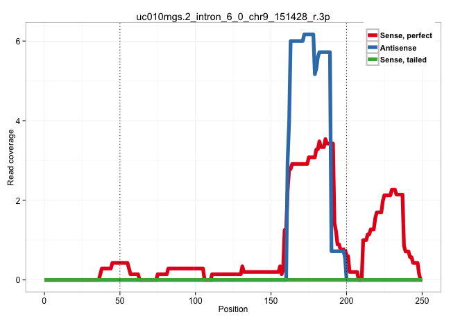 | TTGAAGTTCCTGACAAATTCTTTTATTAAATTTTGACTTTCATTTTCTCTAGGTTCTGTTCCTAAAACATCTGTGAAGTGTATTTCTGTAGATTAAATTCTGTTTTCCATTGAATGTTATCTTAATTTCAGAAAATTTCTGTGCAGGGTTATTTTATTAAGCTCATTTTTTTTTTTTTTTTTTTTTTTTTGGTGAGAAAGGCTCAGCAGCTAATAGACTCAGCAACAGGCAGCCAGGAGCTCTGAGGCTC ..................................................................................((((((.(((((((((..(((((......)))))..)).)))))))))))))...........(((((.........)))))...................................................................................... .............................................................................78...............................................................................................................191......................................................... | Size | Perfect hit | Total Norm | Perfect Norm | SRR189775(GSM714635) cell line: HEK293clip variant: CLIPenzymatic . (cell line) | SRR189776(GSM714636) cell line: HEK293clip variant: CLIPenzymatic . (cell line) | SRR189777(GSM714637) cell line: HEK293clip variant: PAR-CLIPenzyma. (cell line) | SRR189780(GSM714640) cell line: HEK293clip variant: PAR-CLIPenzyma. (cell line) | SRR189778(GSM714638) cell line: HEK293clip variant: PAR-CLIPenzyma. (cell line) | SRR189781(GSM714641) cell line: HEK293clip variant: PAR-CLIPenzyma. (cell line) | SRR189779(GSM714639) cell line: HEK293clip variant: PAR-CLIPenzyma. (cell line) | SRR390725(GSM850204) small rna immunoprecipitated. (cell line) | SRR324841(SRX087285) "Total RNA, no rRNA depletion". (cell line) | SRR189787 | DRR001488(DRX001042) "Hela short nuclear cell fraction, LNA(+)". (hela) | SRR189784 | SRR037935(GSM510473) 293cand3. (cell line) | SRR039614(GSM531977) HBV-infected Liver Tissue. (liver) | SRR444055(SRX128903) Sample 27_2cDNABarcode: AF-PP-343: ACG CTC TT. (skin) | SRR191589(GSM715699) 69genomic small RNA (size selected RNA from t. (breast) | SRR037937(GSM510475) 293cand2. (cell line) | SRR330909(SRX091747) tissue: normal skindisease state: normal. (skin) | GSM956925F181A(GSM956925) "cell line: HEK293 cell linepassages: 15-20ip. (cell line) | SRR390723(GSM850202) total small RNA. (cell line) | SRR029126(GSM416755) 143B. (cell line) | SRR330902(SRX091740) tissue: skin psoriatic uninvolveddisease stat. (skin) | SRR029131(GSM416760) MCF7. (cell line) | SRR037933(GSM510471) 293cand4_rep2. (cell line) | RoviraIPAgo2(Rovira) total RNA. (ago2 breast) | SRR342894(SRX096790) small RNA seq of Right atrial tissue. (heart) | SRR330869(SRX091707) tissue: skin psoriatic involveddisease state:. (skin) | SRR330889(SRX091727) tissue: skin psoriatic uninvolveddisease stat. (skin) | SRR330922(SRX091760) tissue: normal skindisease state: normal. (skin) | SRR330864(SRX091702) tissue: skin psoriatic involveddisease state:. (skin) | SRR191556(GSM715666) 45genomic small RNA (size selected RNA from t. (breast) | GSM416733(GSM416733) HEK293. (cell line) | SRR039192(GSM494811) K562 cell line is derived from a CML patient . (cell line) | SRR037931(GSM510469) 293GFP. (cell line) | TAX577741(Rovira) total RNA. (breast) | SRR330901(SRX091739) tissue: skin psoriatic uninvolveddisease stat. (skin) | SRR039622(GSM531985) HCV(+) Adjacent Tissue Sample. (liver) | SRR094129(GSM651905) small RNA(18-35nt)small RNA deep sequencing o. (uterus) | SRR029124(GSM416753) HeLa. (hela) |