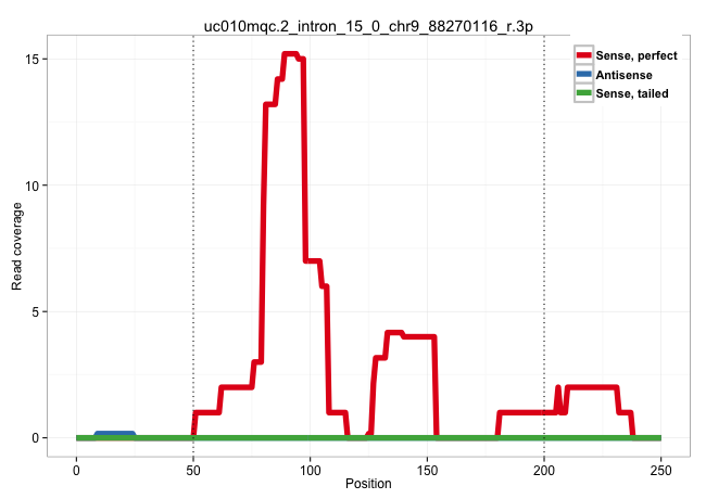 | GACACTTTTTGAACTAAAGTAAAATTGGTTCAGTTATTCATCAAAAACATTCTTTTTCTTTTTCTTTTTTTAAAAAACAGGAATGTCTGGCAGTCAGGACTCTGGATCCTCTTGTCAATACCTCCAGTCTGATAATGAGGAAGTGTTTCCCAAAAAATCGACTGCCACTCCCAACAATTAAAAGTTCTTTTCATTTCCAGTTGCCTGTTATTCCTGTGACTGGTCCTGTGGCTCAGCTCTACAGCTTACC ..............................................((((((((.((.(((..........))).)).))))))))(((.....)))......................................................................................................................................................... ............................................45.......................................................102.................................................................................................................................................. | Size | Perfect hit | Total Norm | Perfect Norm | SRR189780(GSM714640) cell line: HEK293clip variant: PAR-CLIPenzyma. (cell line) | SRR189779(GSM714639) cell line: HEK293clip variant: PAR-CLIPenzyma. (cell line) | SRR189778(GSM714638) cell line: HEK293clip variant: PAR-CLIPenzyma. (cell line) | SRR207110(GSM721072) Nuclear RNA. (cell line) | SRR189776(GSM714636) cell line: HEK293clip variant: CLIPenzymatic . (cell line) | SRR189777(GSM714637) cell line: HEK293clip variant: PAR-CLIPenzyma. (cell line) | SRR207116(GSM721078) Nuclear RNA. (cell line) | SRR189781(GSM714641) cell line: HEK293clip variant: PAR-CLIPenzyma. (cell line) | SRR189775(GSM714635) cell line: HEK293clip variant: CLIPenzymatic . (cell line) | SRR330901(SRX091739) tissue: skin psoriatic uninvolveddisease stat. (skin) | SRR330902(SRX091740) tissue: skin psoriatic uninvolveddisease stat. (skin) | SRR330893(SRX091731) tissue: skin psoriatic uninvolveddisease stat. (skin) | SRR330874(SRX091712) tissue: skin psoriatic involveddisease state:. (skin) | SRR342899(SRX096795) small RNA seq of Left atrial tissue. (heart) | SRR330865(SRX091703) tissue: skin psoriatic involveddisease state:. (skin) | SRR033722(GSM497067) KMS12 cell line (KMS12). (B cell) | SRR040010(GSM532895) G529N. (cervix) | SRR330888(SRX091726) tissue: skin psoriatic uninvolveddisease stat. (skin) | SRR342894(SRX096790) small RNA seq of Right atrial tissue. (heart) | SRR553572(SRX182778) source: Frontal Cortex. (Frontal Cortex) | DRR000556(DRX000314) "THP-1 whole cell RNA, after 3 day treatment . (cell line) | SRR330922(SRX091760) tissue: normal skindisease state: normal. (skin) | SRR189785 | SRR330897(SRX091735) tissue: skin psoriatic uninvolveddisease stat. (skin) | SRR038855(GSM458538) D10. (cell line) | SRR033726(GSM497071) Mututated CLL (CLLM633). (B cell) | SRR330875(SRX091713) tissue: skin psoriatic involveddisease state:. (skin) | SRR207114(GSM721076) "IP against AGO 1 & 2, RRP40 knockdown". (ago1/2 RRP40 cell line) | SRR330919(SRX091757) tissue: normal skindisease state: normal. (skin) | SRR342900(SRX096796) small RNA seq of Right atrial tissue. (heart) | SRR553576(SRX182782) source: Testis. (testes) | SRR039622(GSM531985) HCV(+) Adjacent Tissue Sample. (liver) | SRR330869(SRX091707) tissue: skin psoriatic involveddisease state:. (skin) | SRR342897(SRX096793) small RNA seq of Left atrial tissue. (heart) | SRR330895(SRX091733) tissue: skin psoriatic uninvolveddisease stat. (skin) | SRR330859(SRX091697) tissue: skin psoriatic involveddisease state:. (skin) | SRR330921(SRX091759) tissue: normal skindisease state: normal. (skin) |